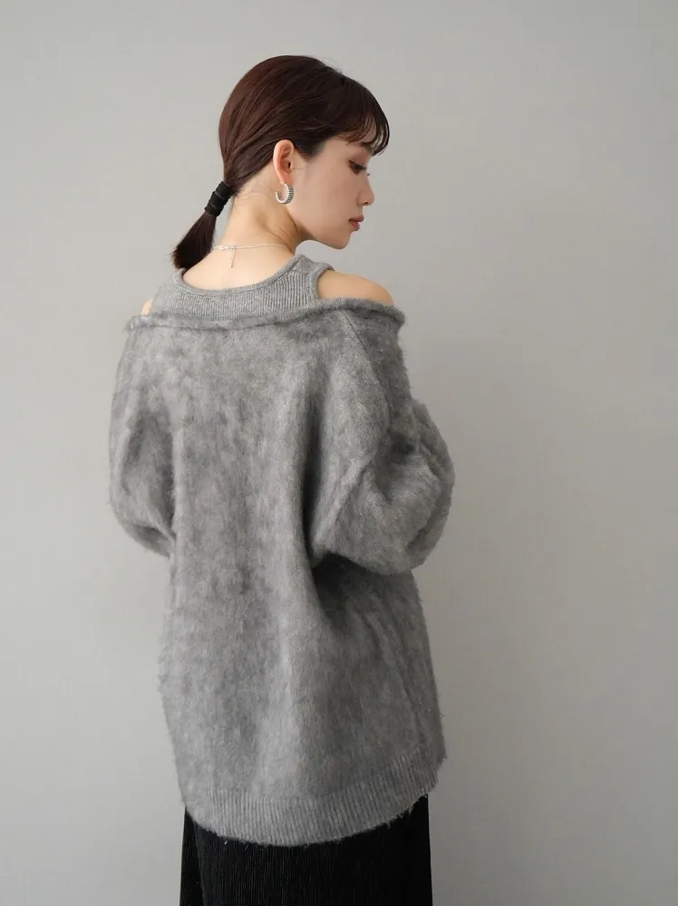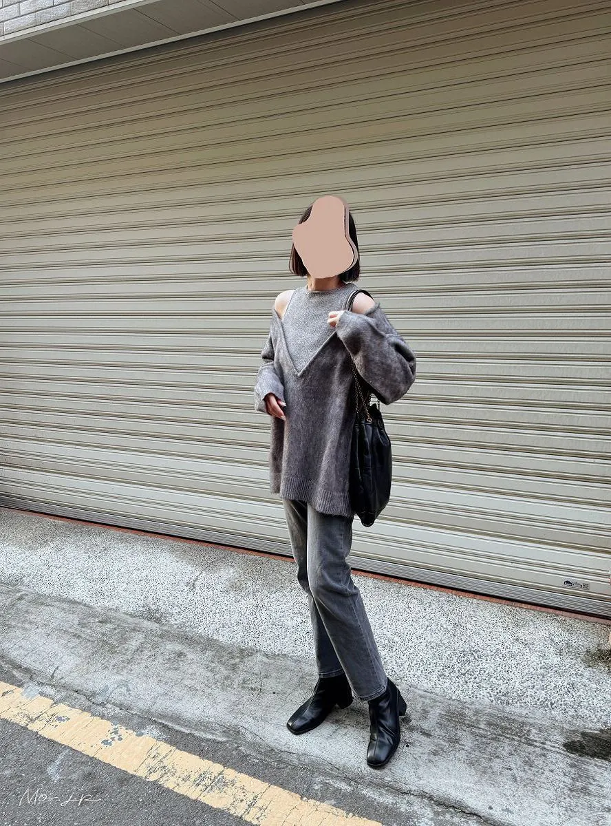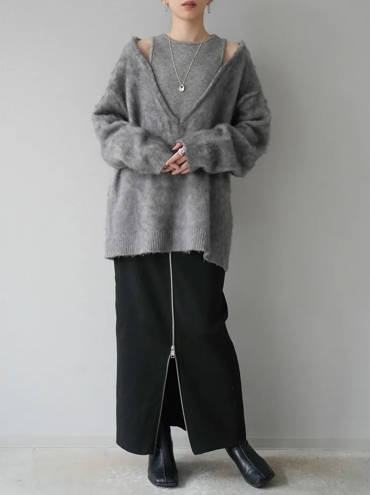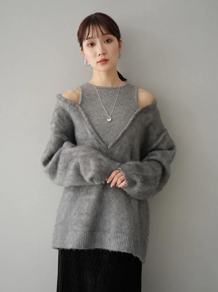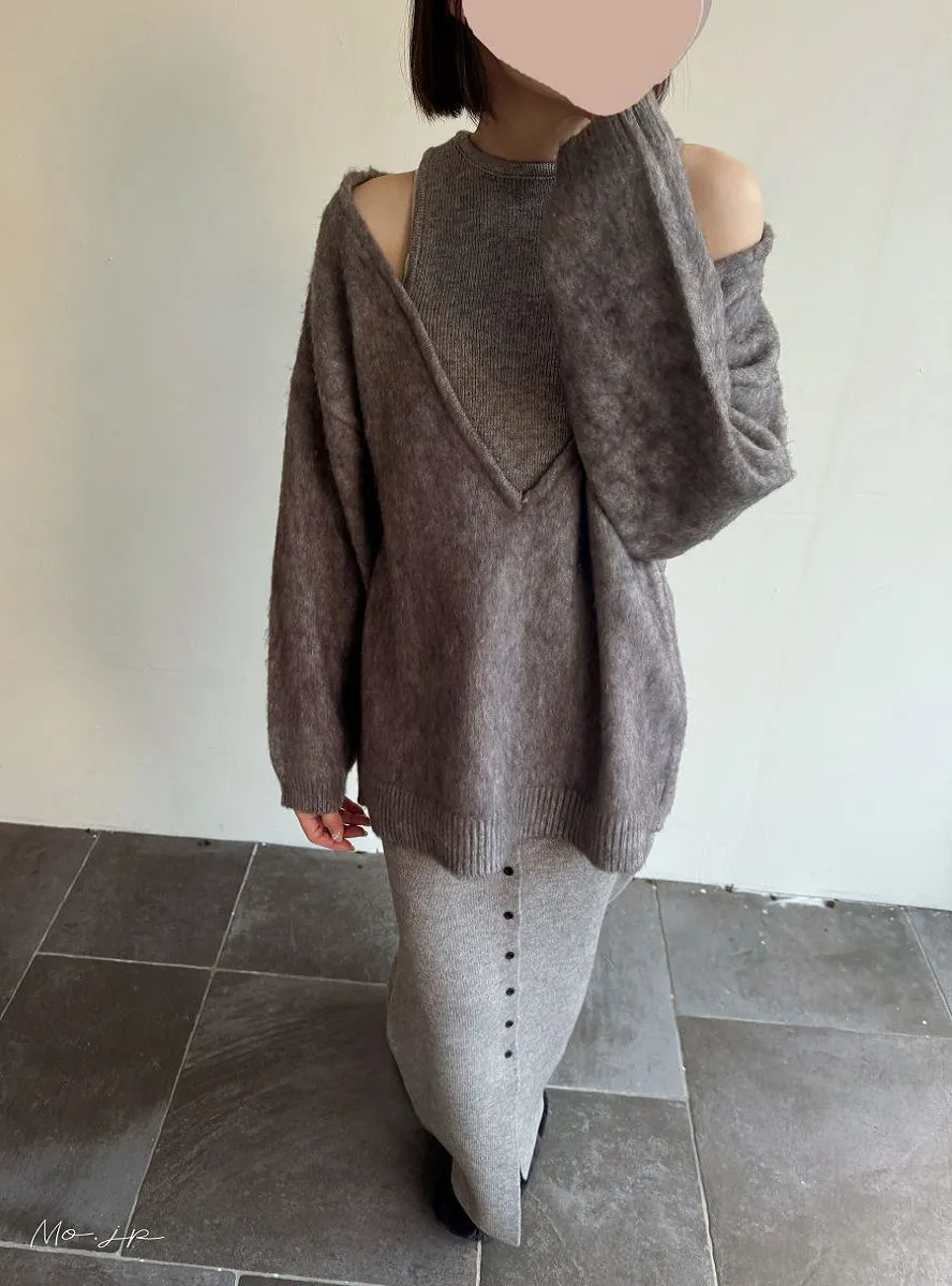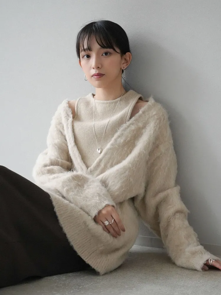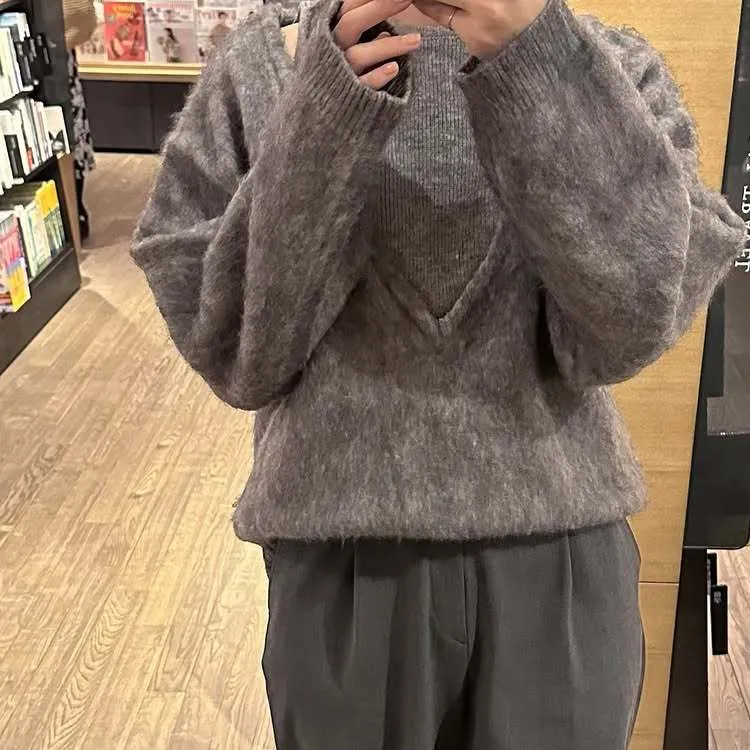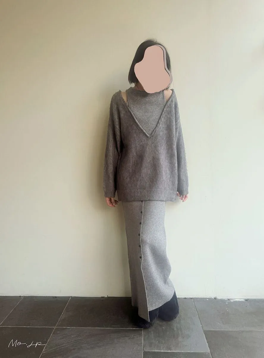 背心處是彈性螺紋針織~外拼接毛海毛衣