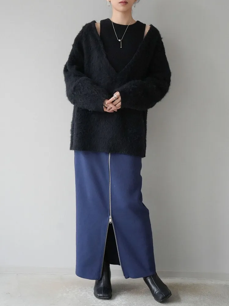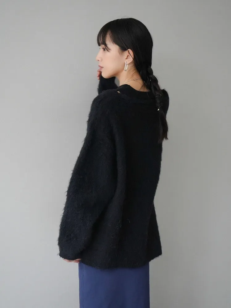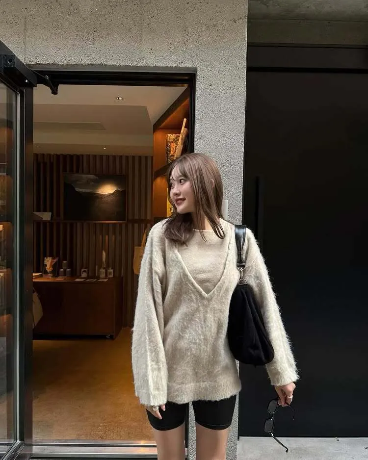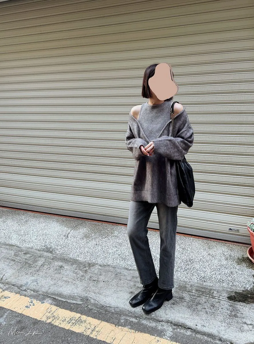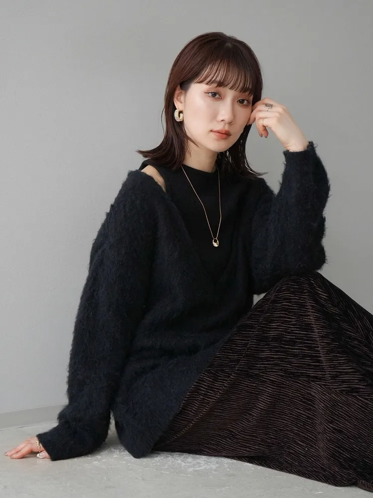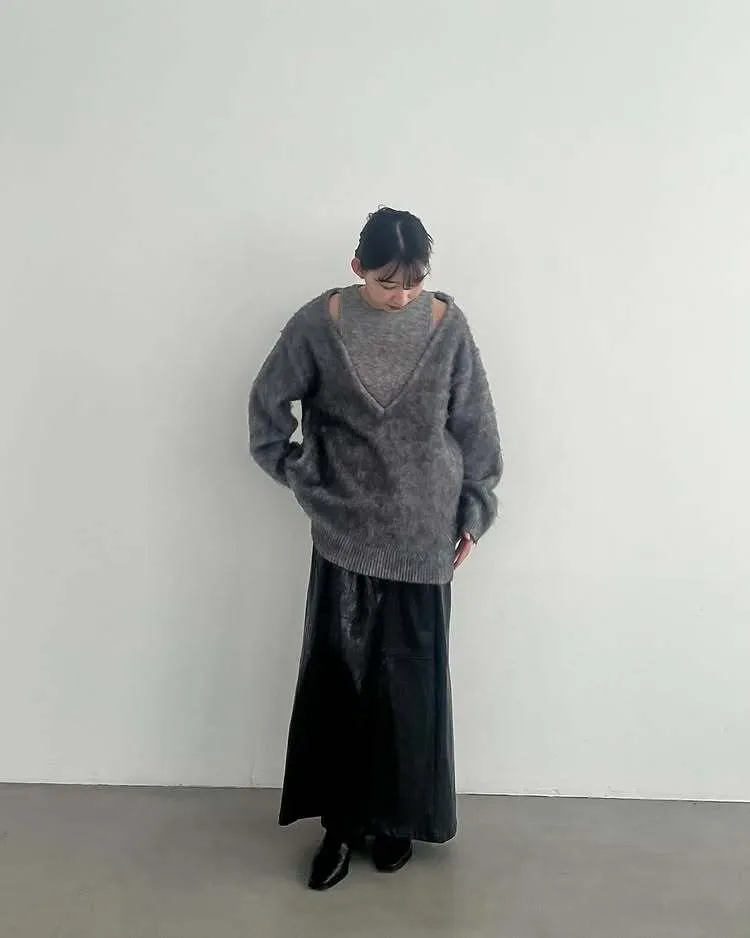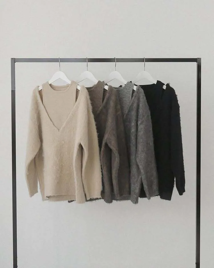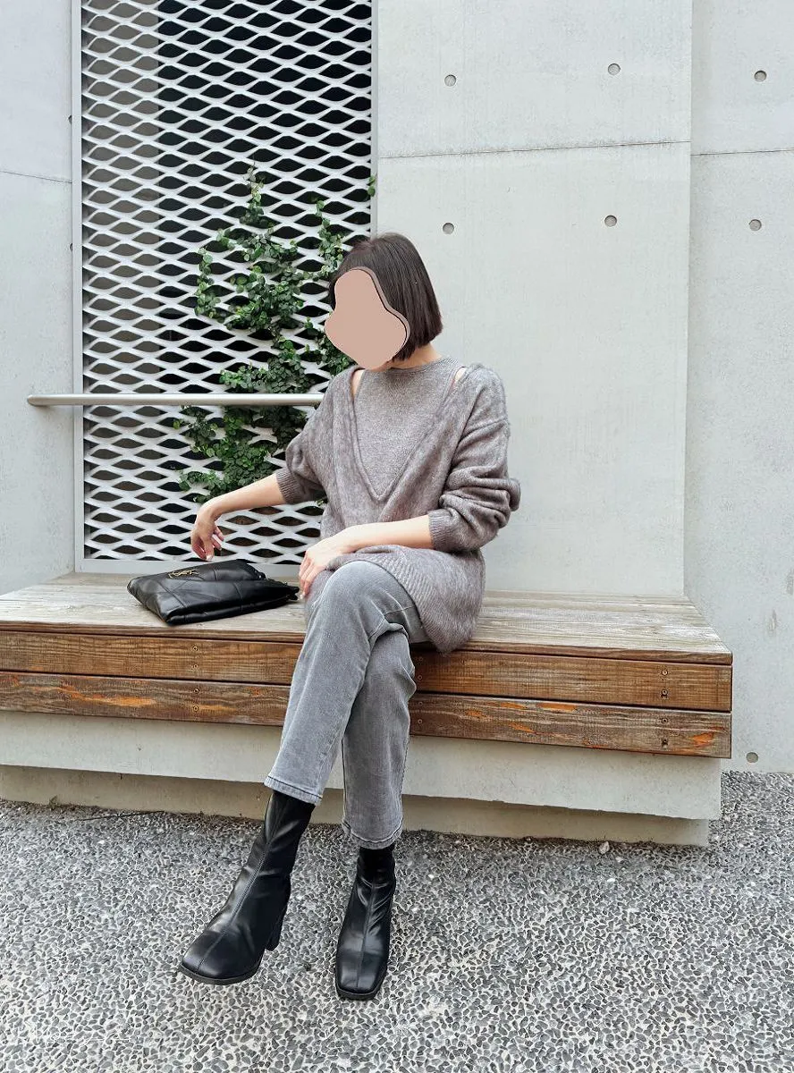 背心處是彈性螺紋針織~外拼接毛海毛衣