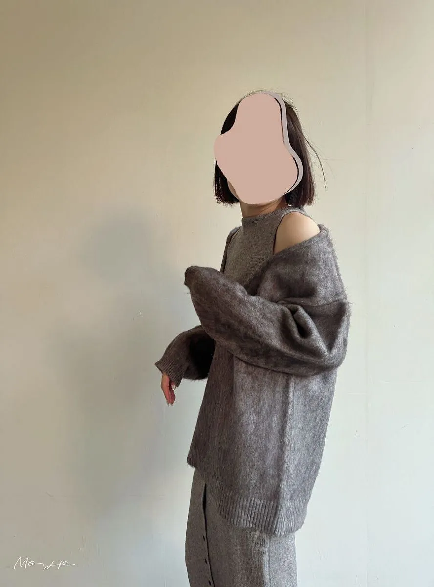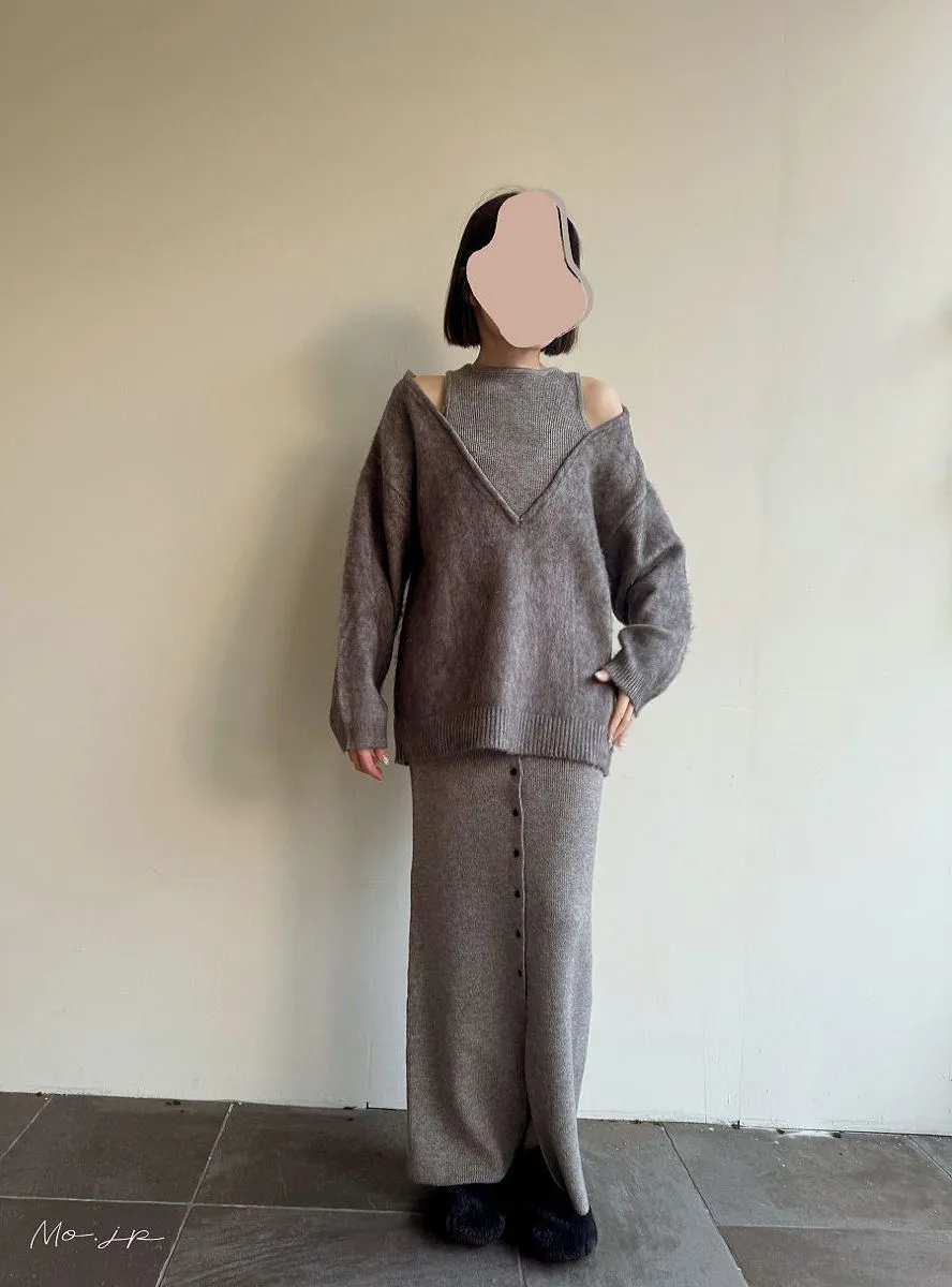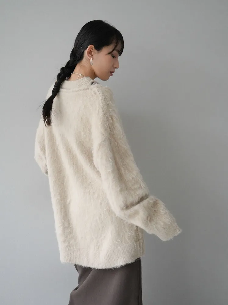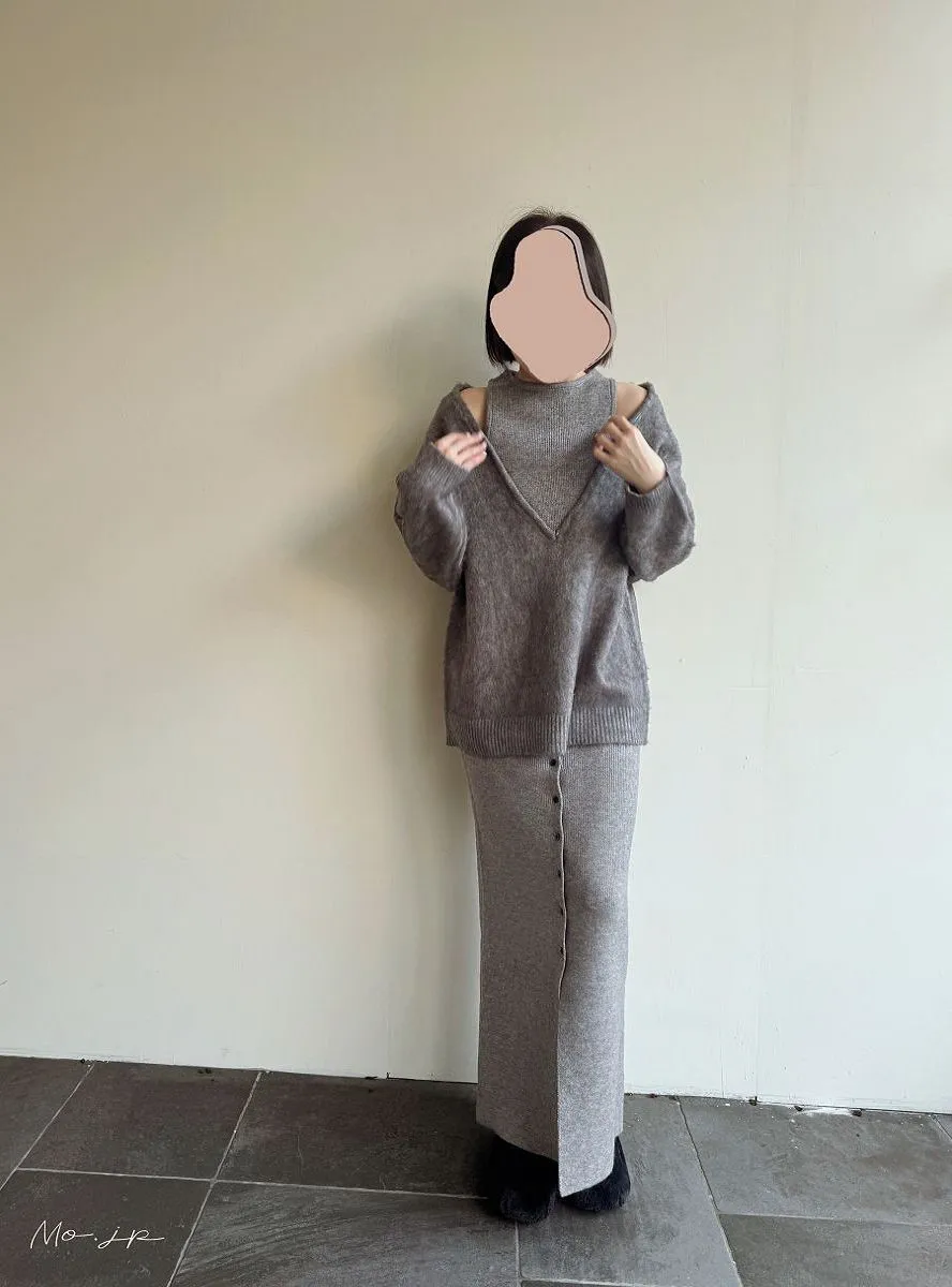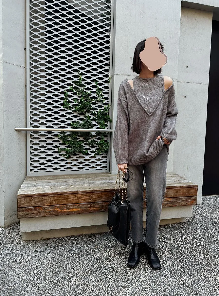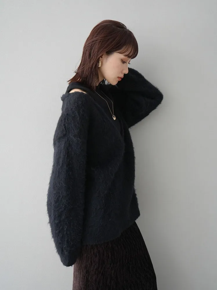 背心處是彈性螺紋針織~外拼接毛海毛衣