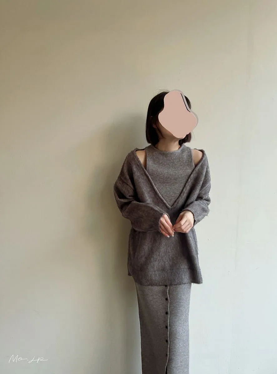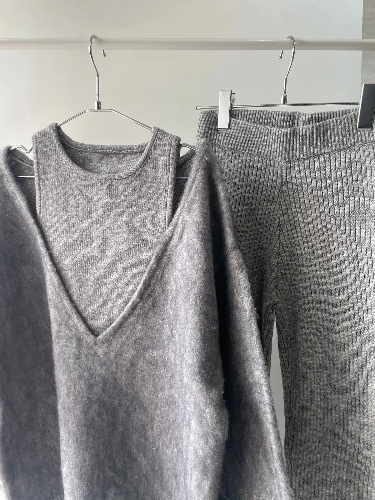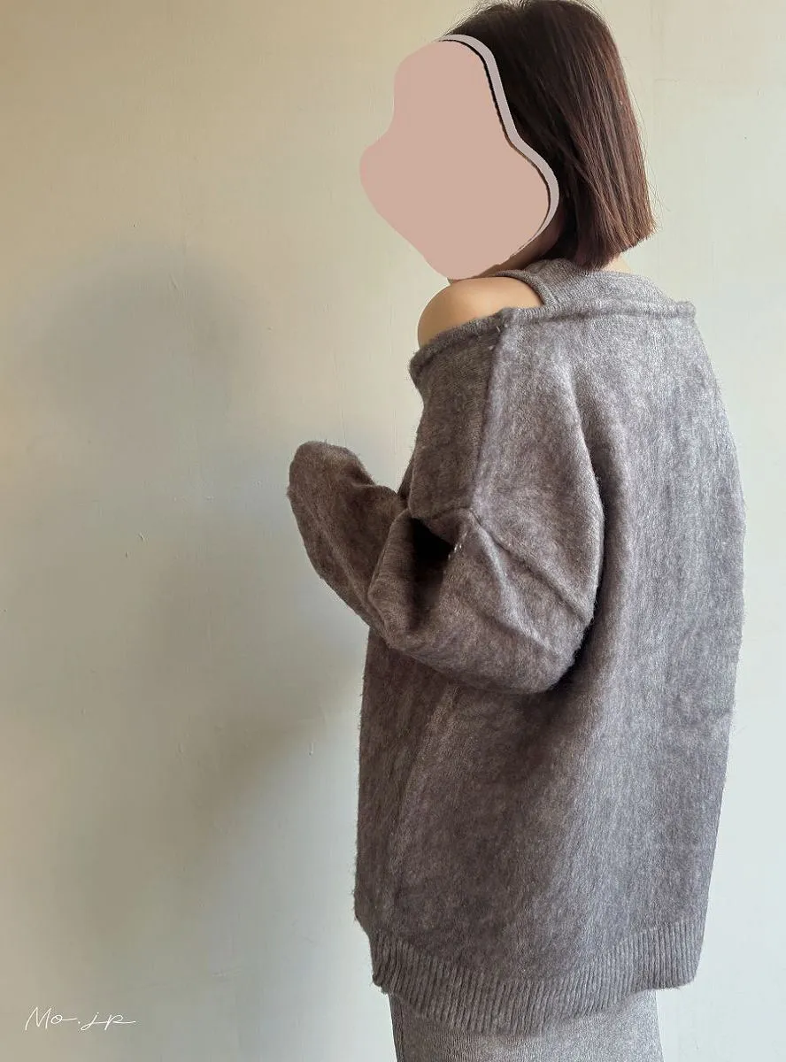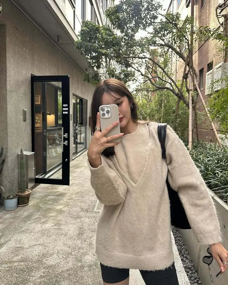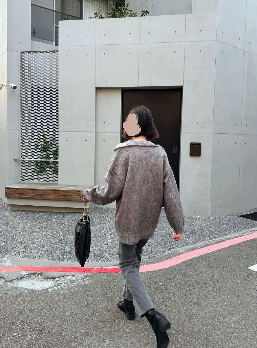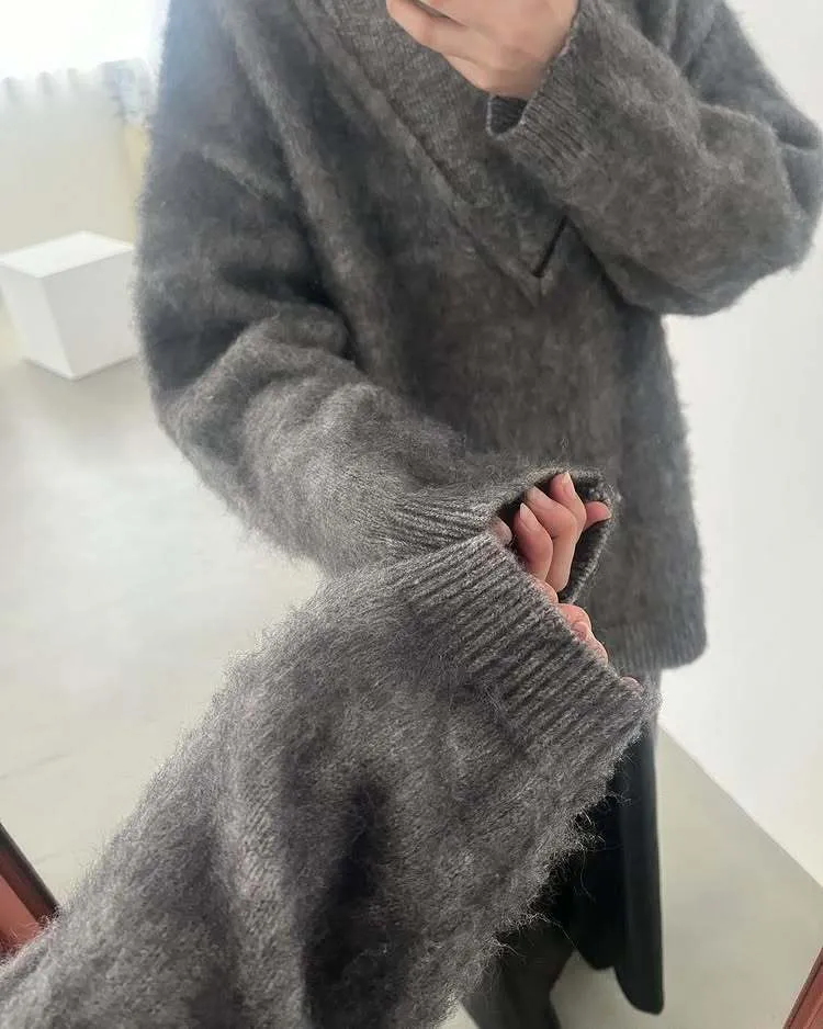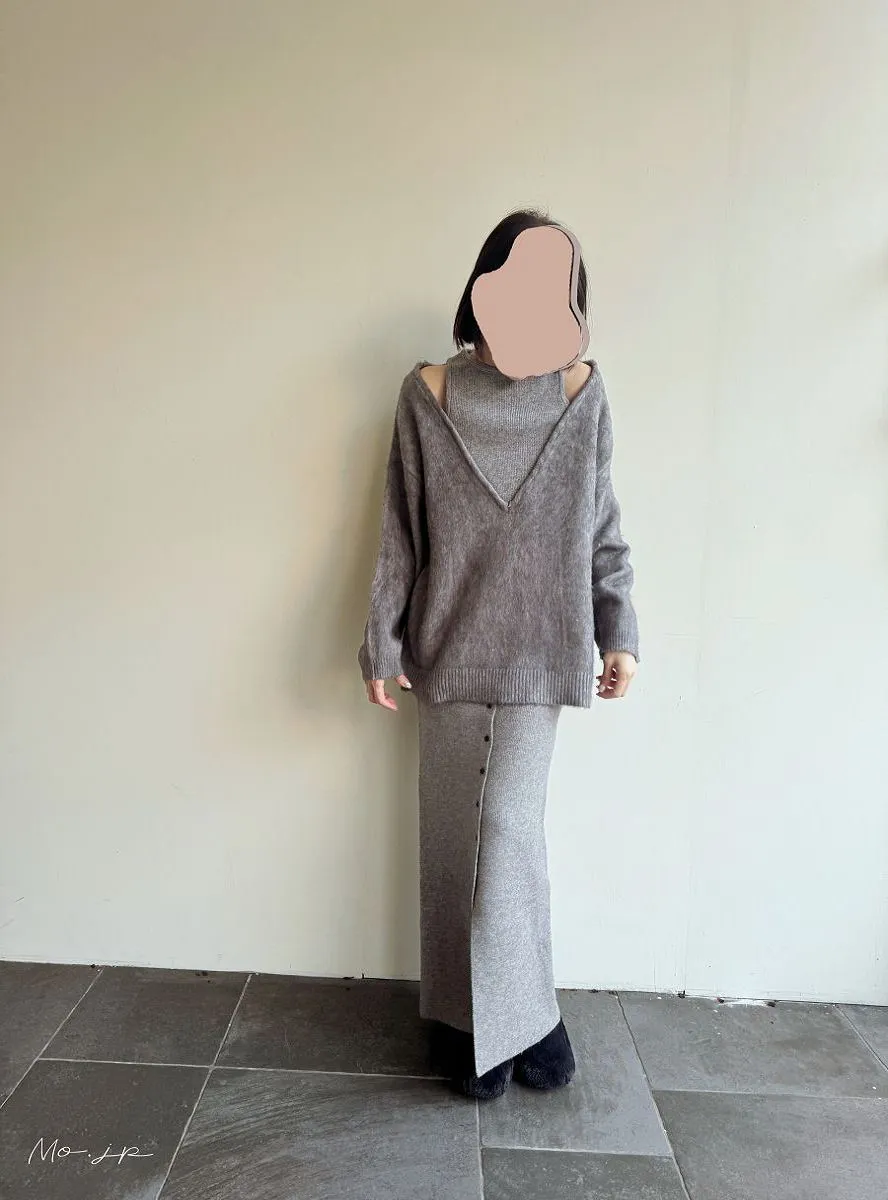 背心處是彈性螺紋針織~外拼接毛海毛衣