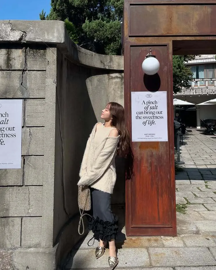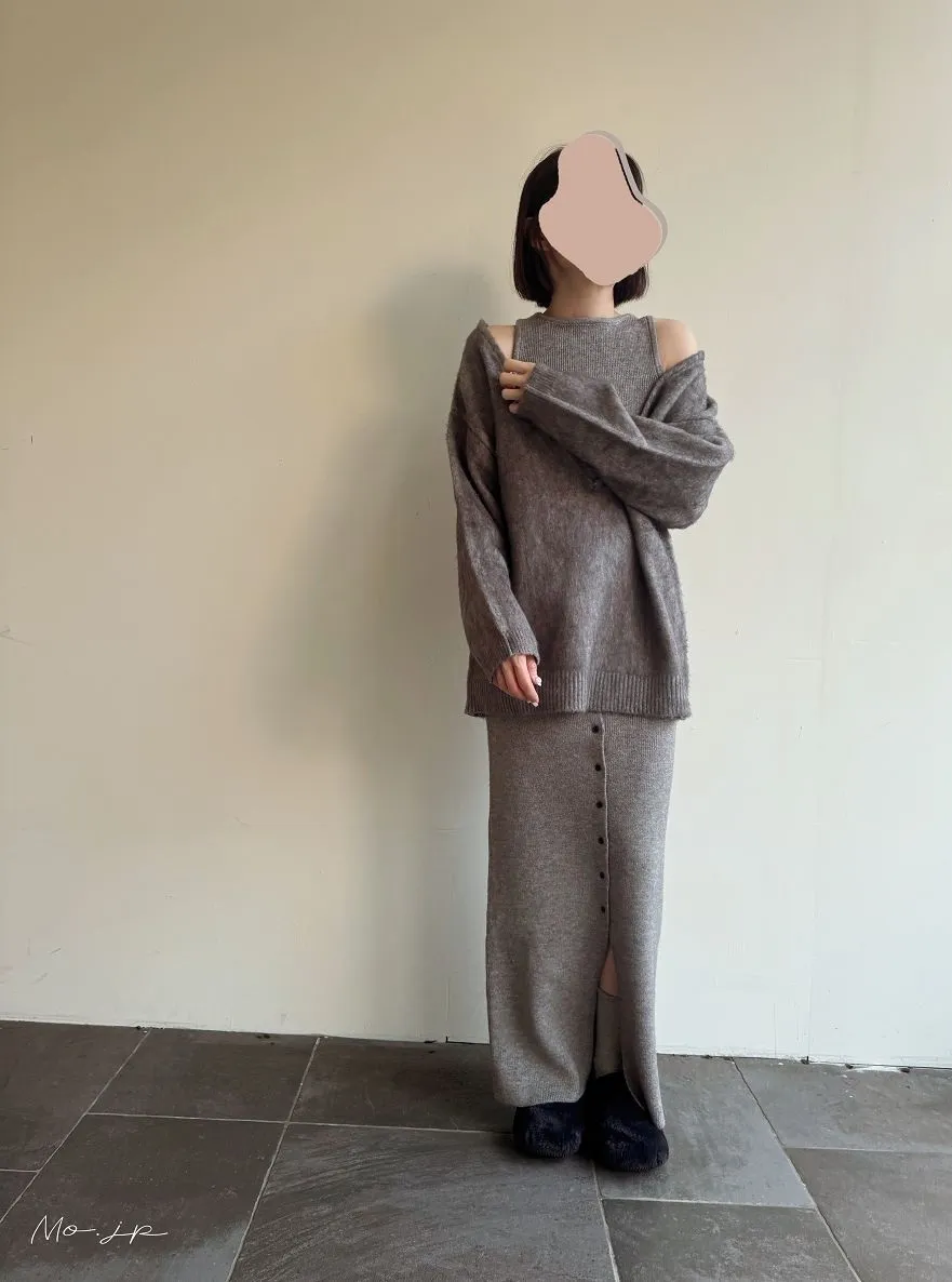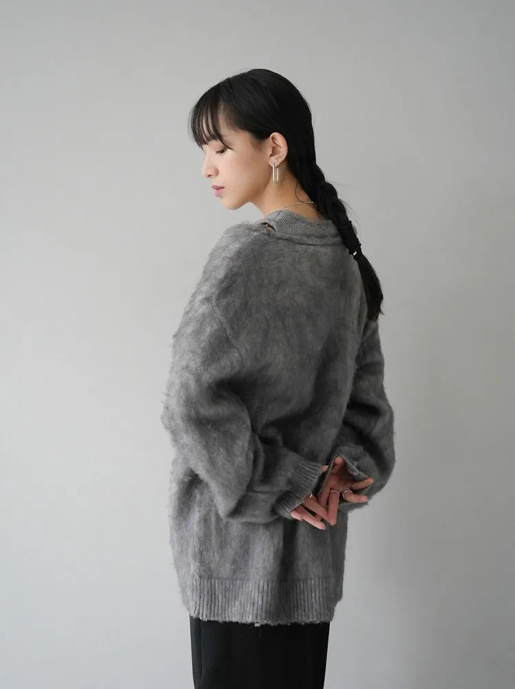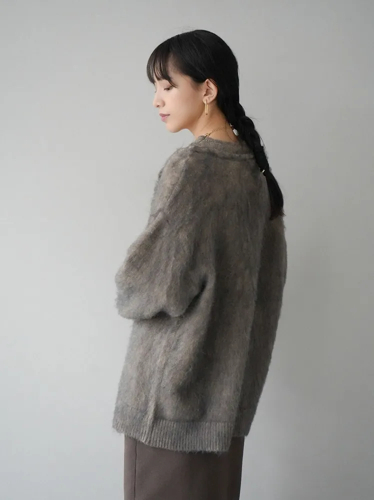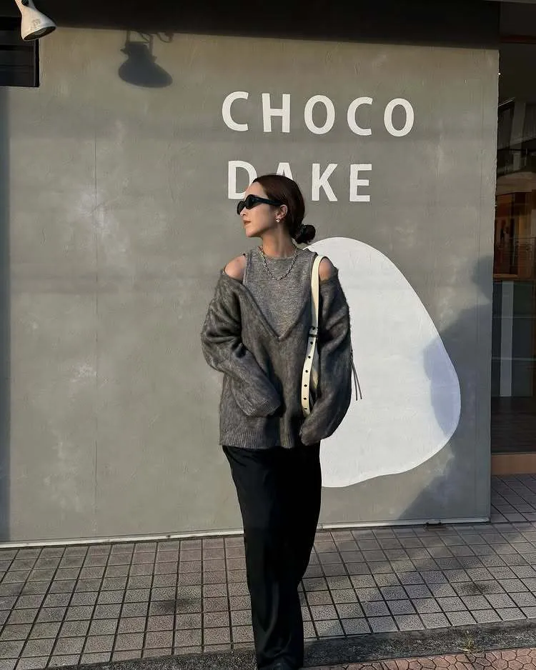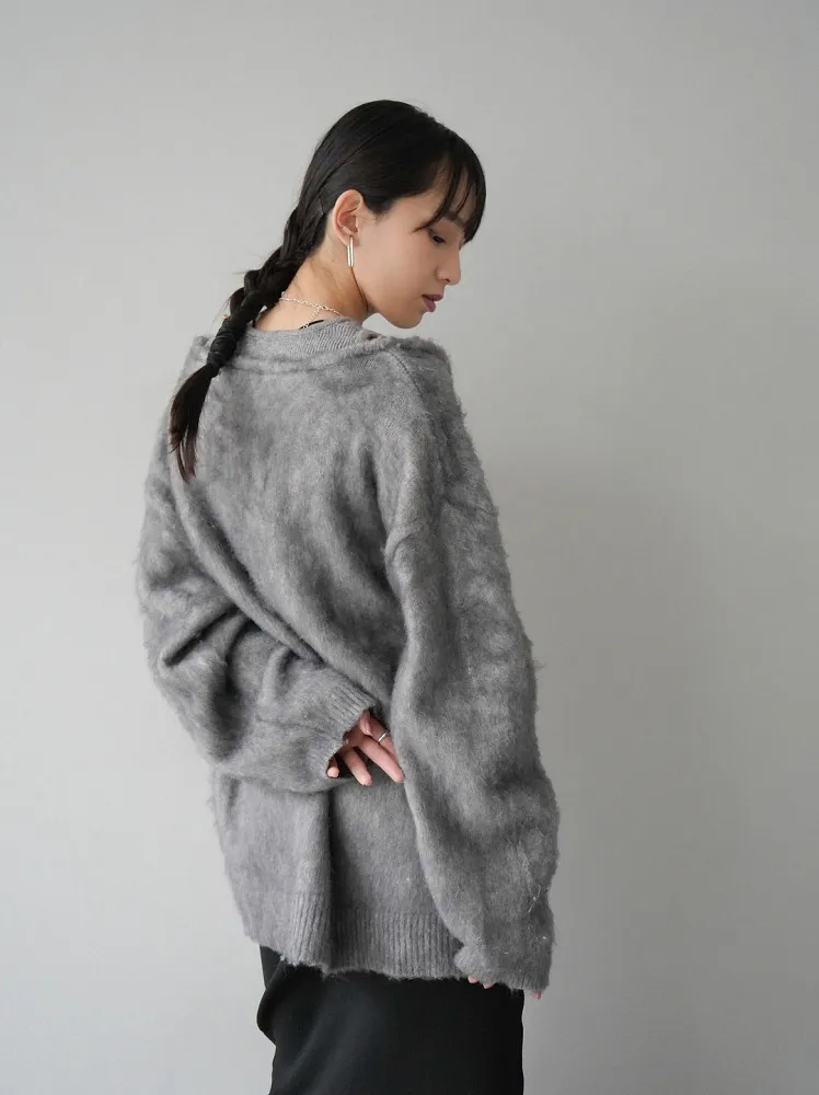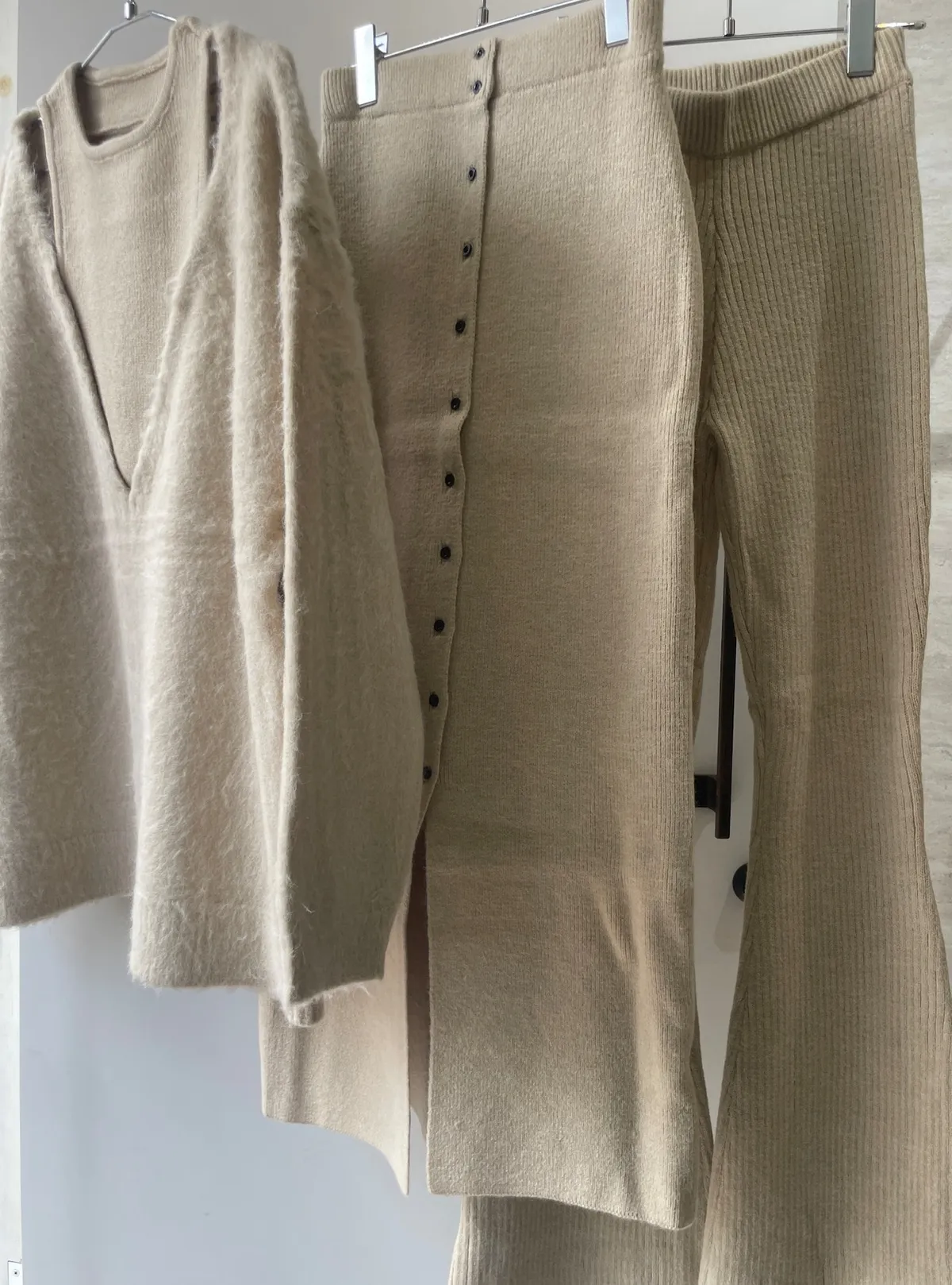 背心處是彈性螺紋針織~外拼接毛海毛衣
