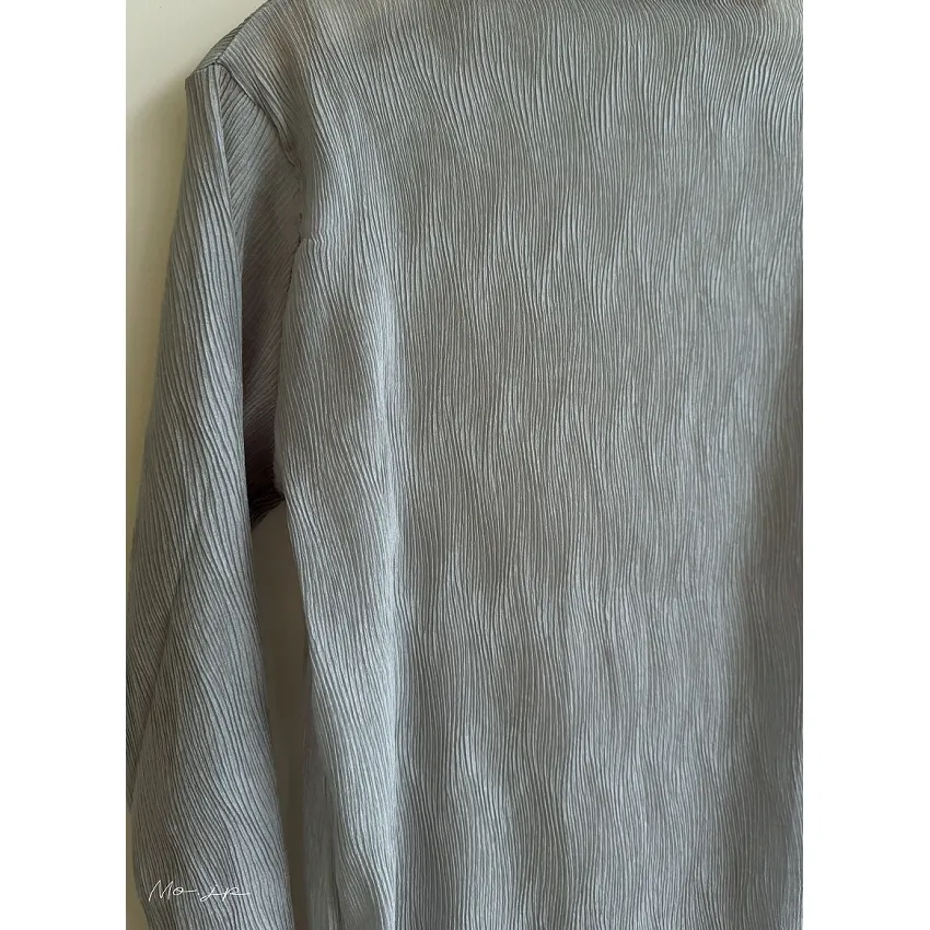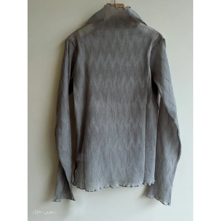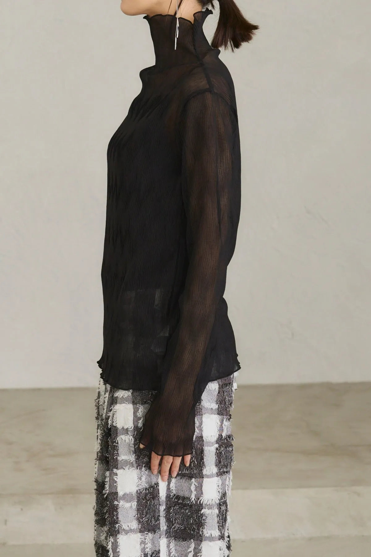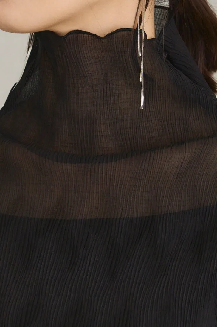 斷貨款~透膚雪紡波浪皺摺紋路立體高領上衣