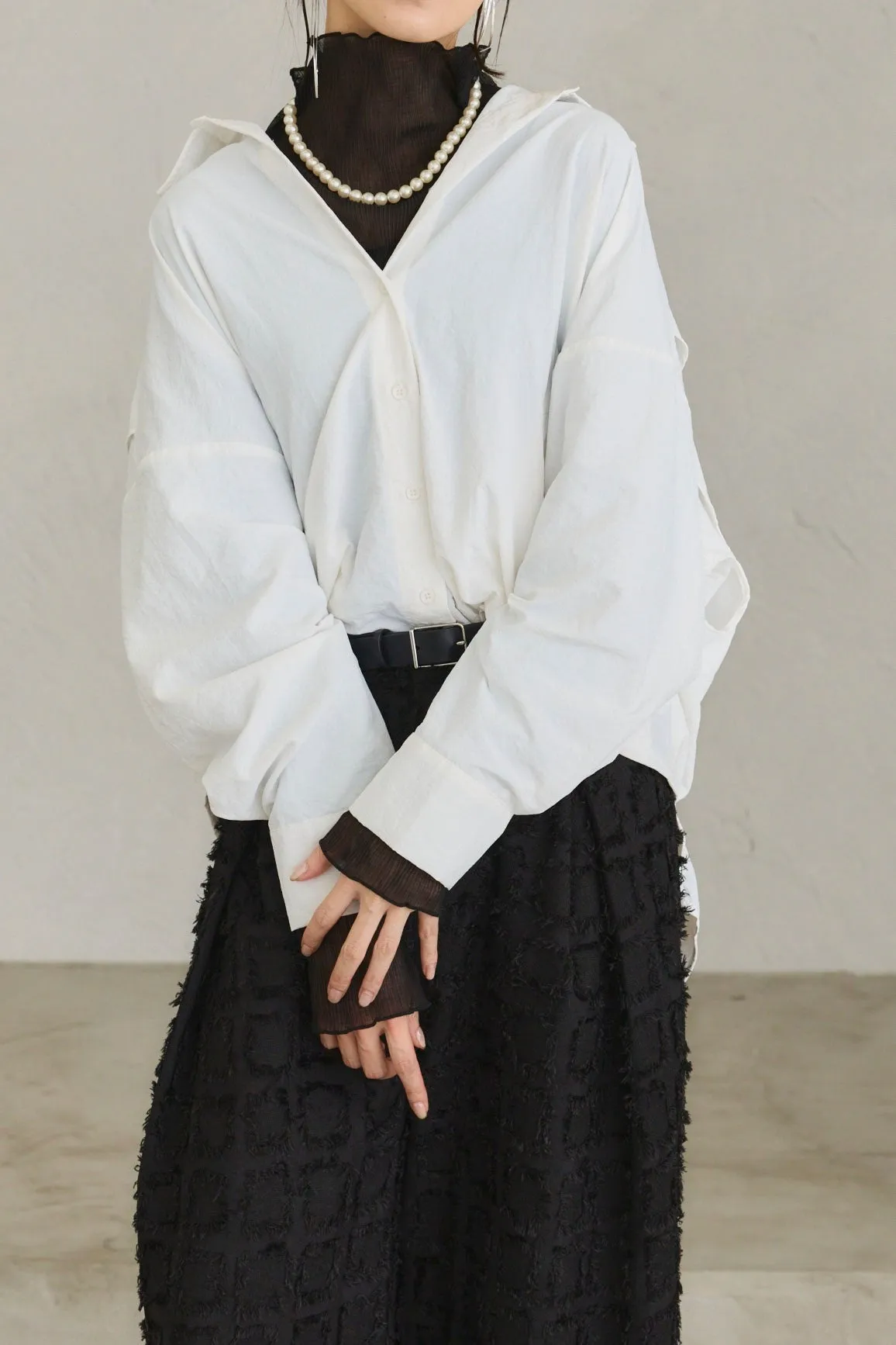 透膚雪紡高領上衣