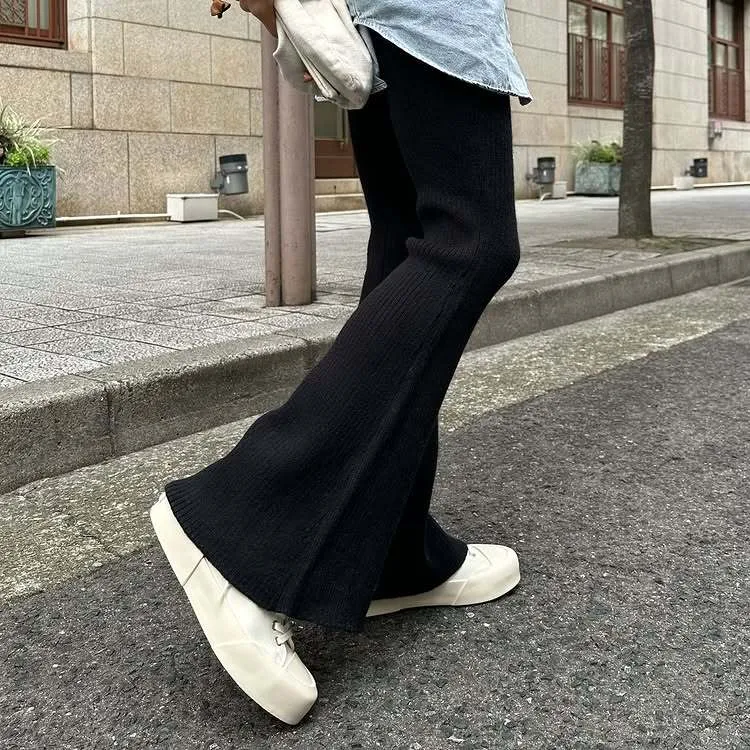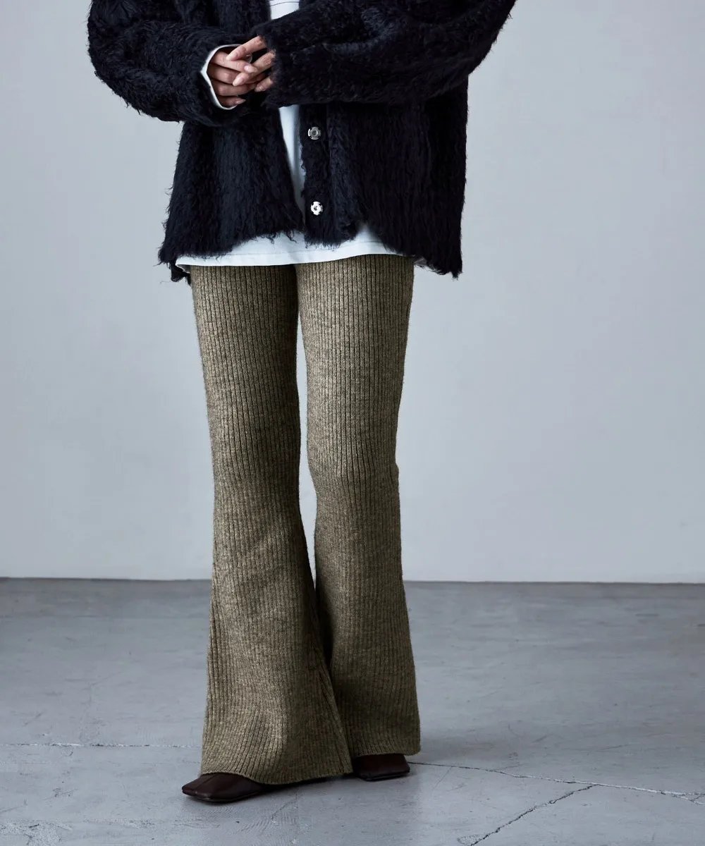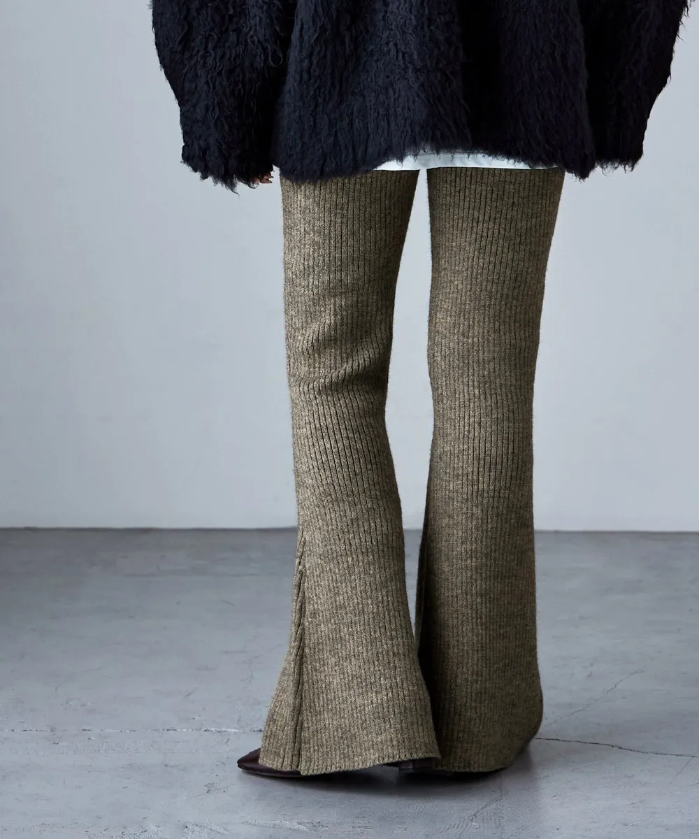 斷貨款~有暖~羅紋細腳喇叭垂墜針織褲