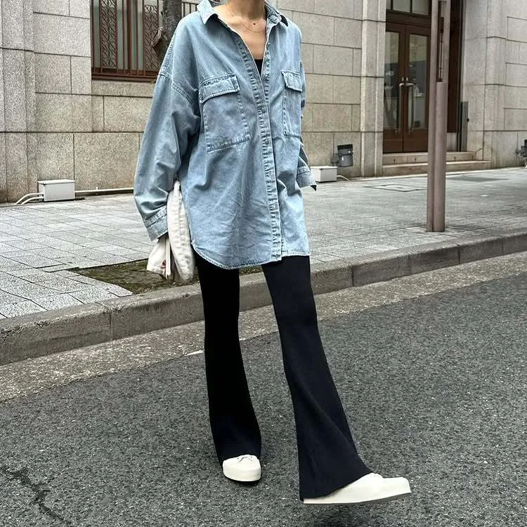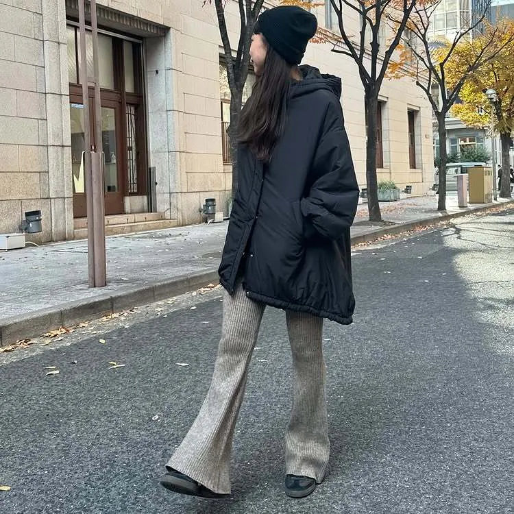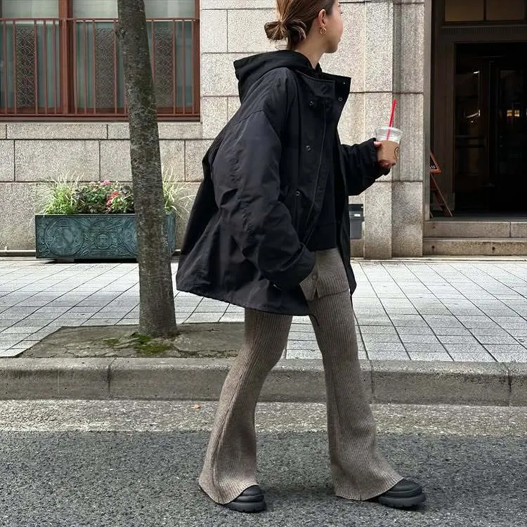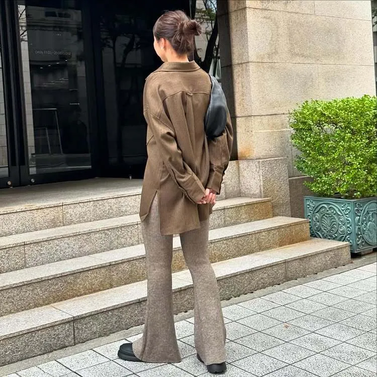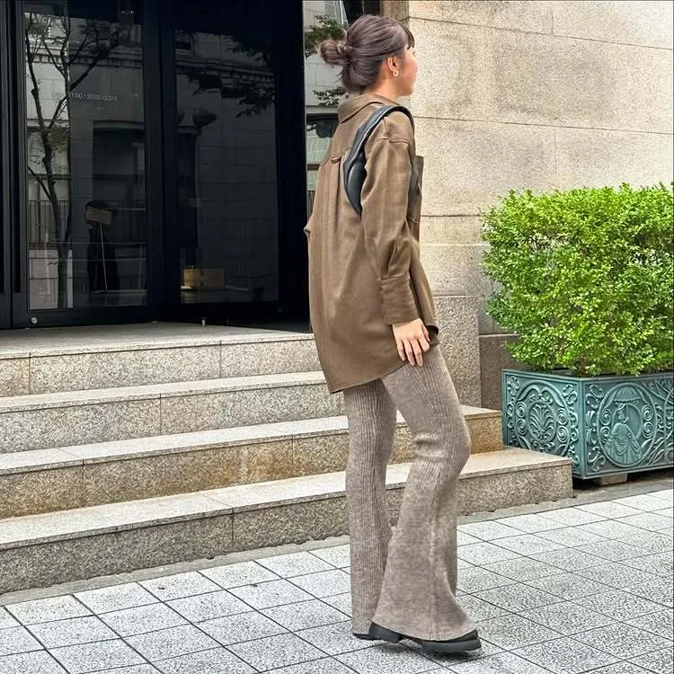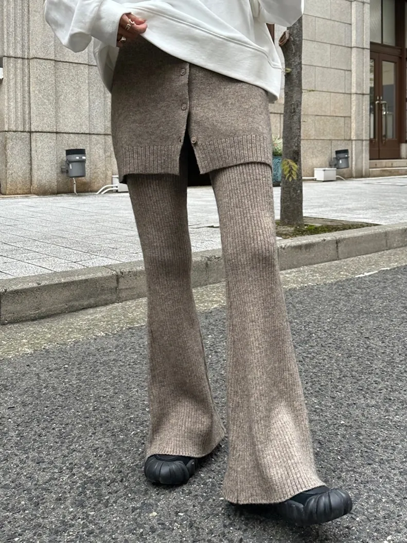 斷貨款~有暖~羅紋細腳喇叭垂墜針織褲