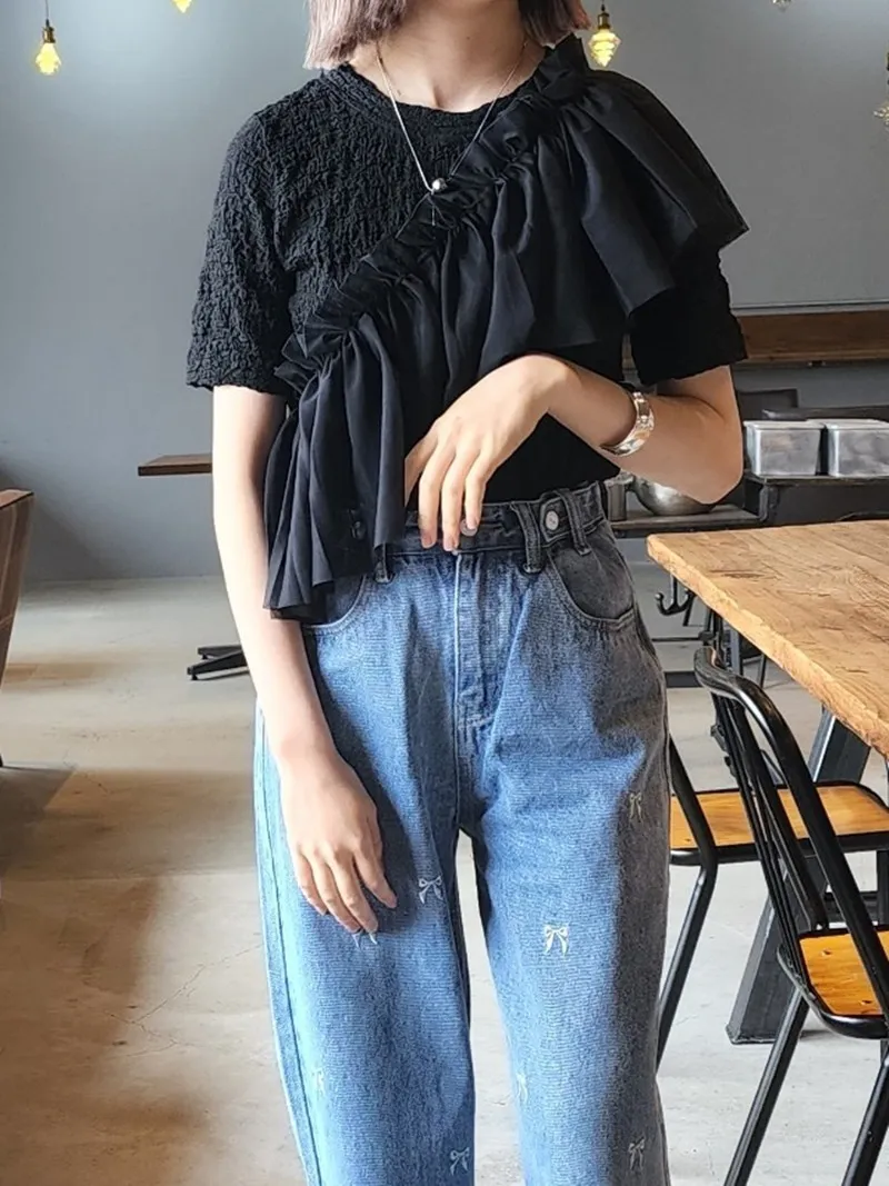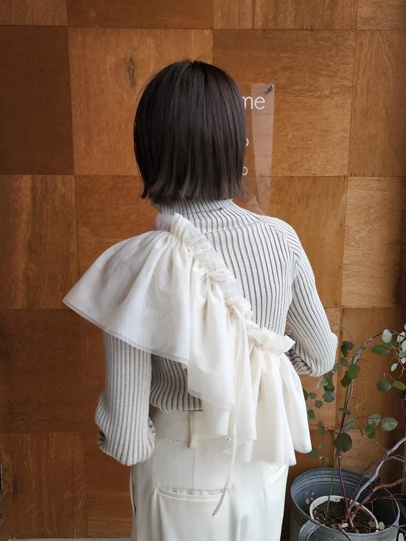 透過細緻的抽皺與波浪形狀展現立體感。