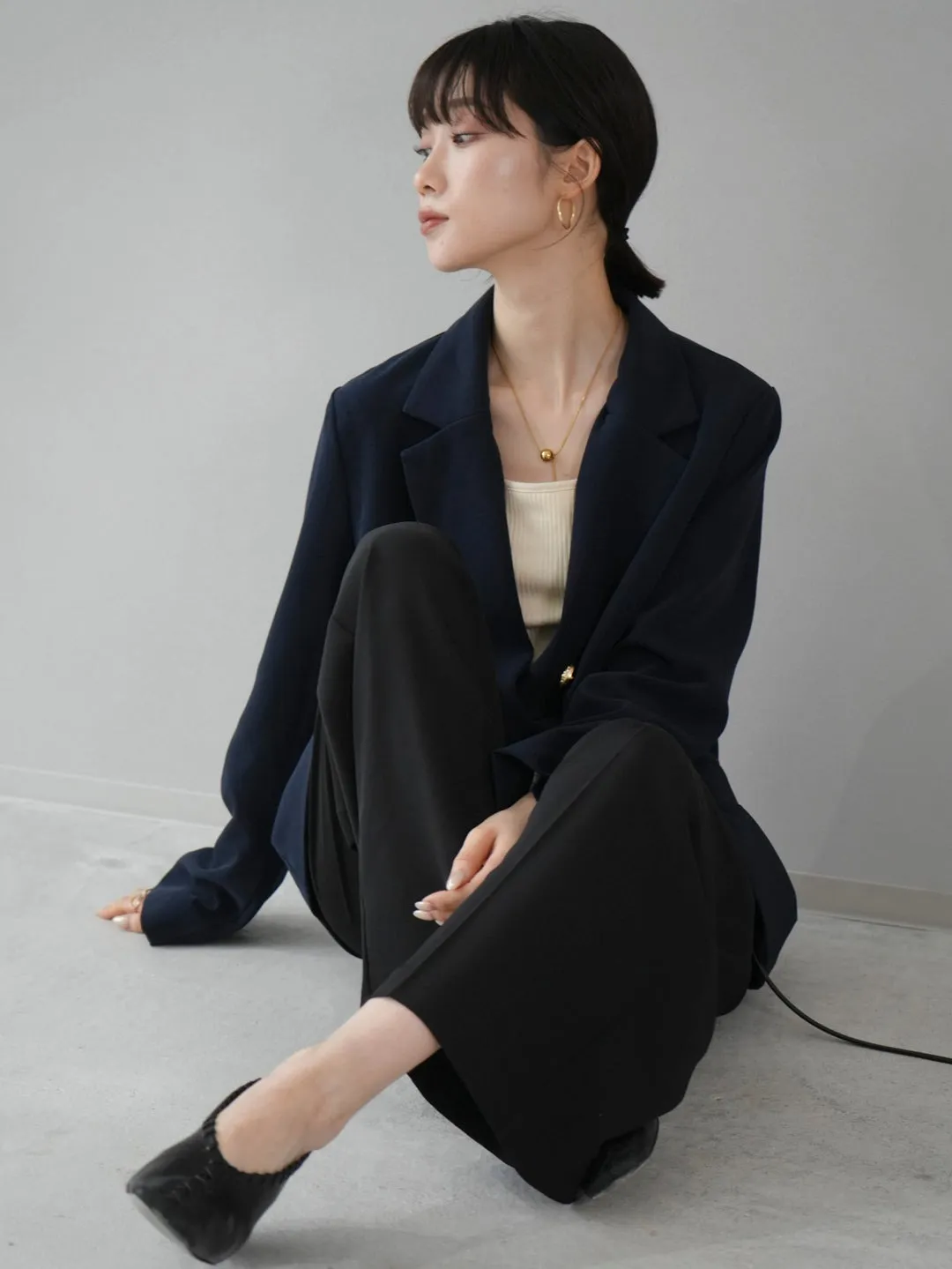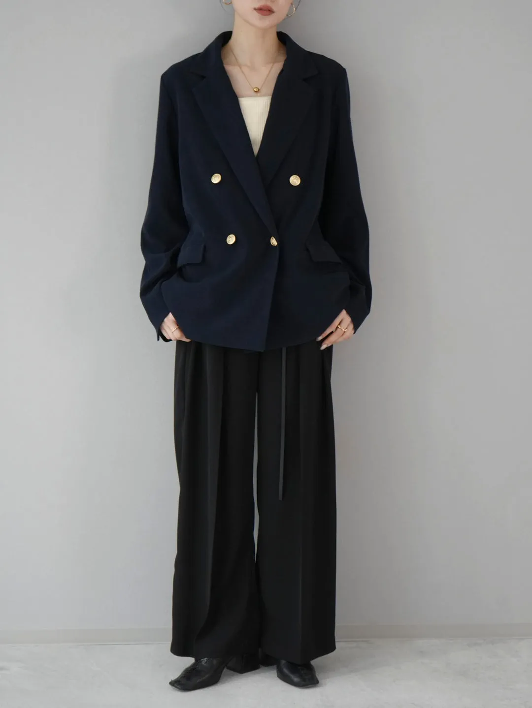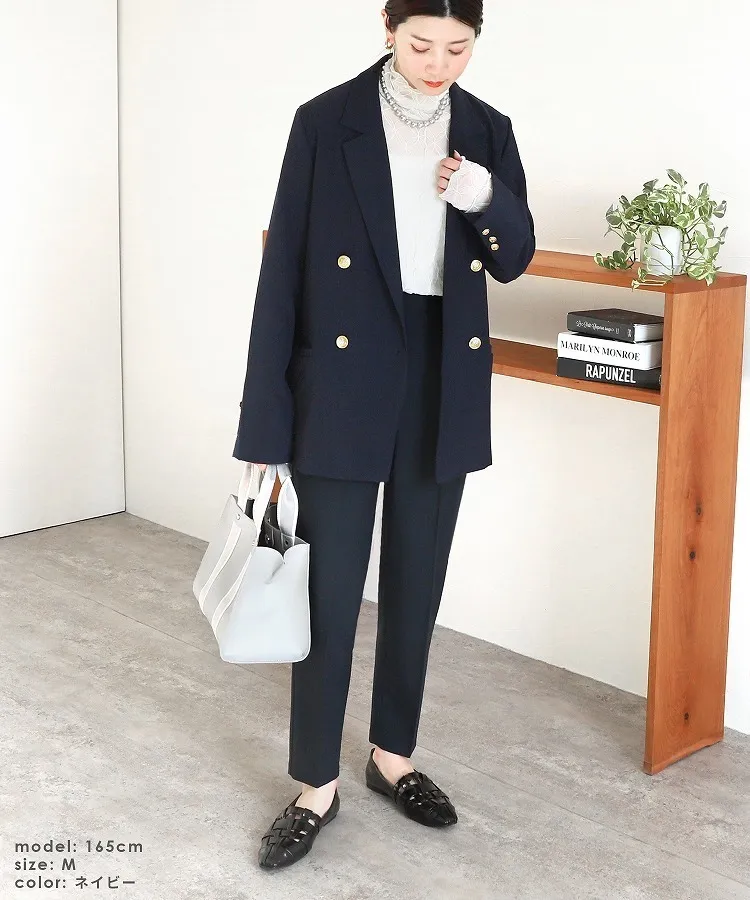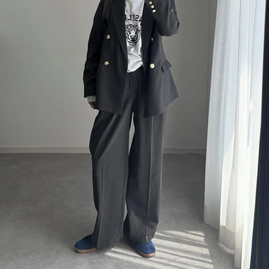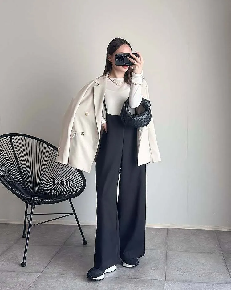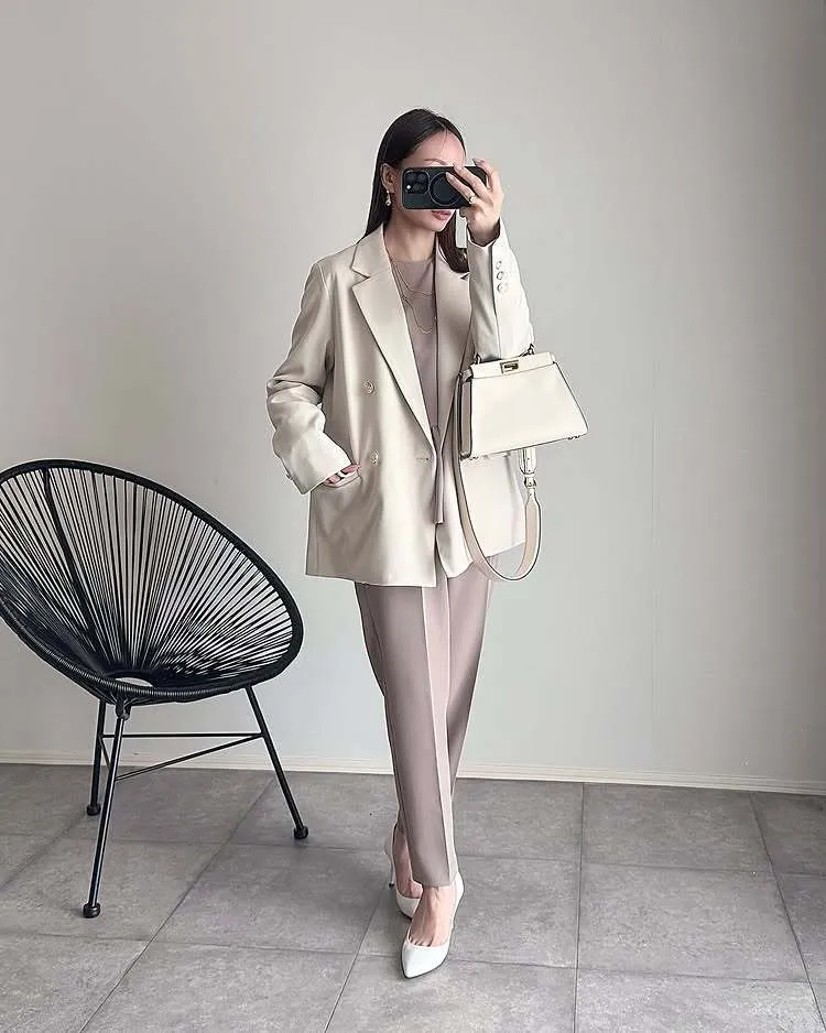優雅風:內搭米白色背心+西褲,輕鬆打造極簡時尚感。