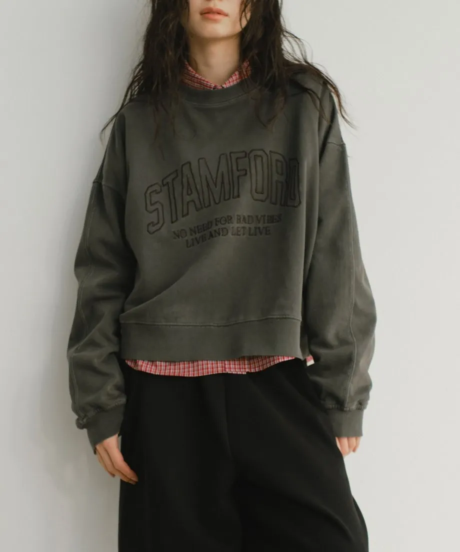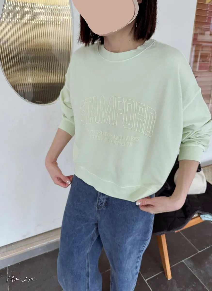 STAMFORD 短版字母刺繡運動大學Tshirt