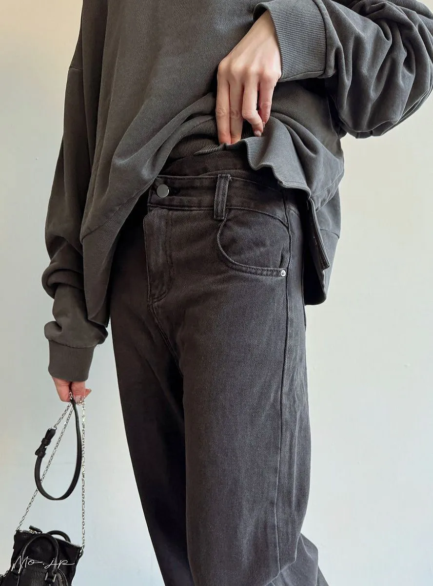 寬度嘟嘟好~腰部小幫自己穿起來卡在髖骨~好喜歡這種隨性感~不會過寬鬆但也不會太合身~完全是命定款!!