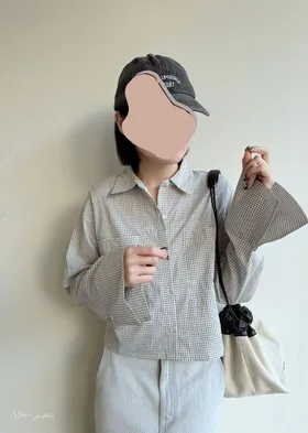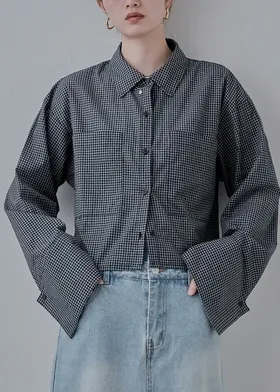 <季末特價!>短版剪裁男孩感小格寬袖造型襯衫
