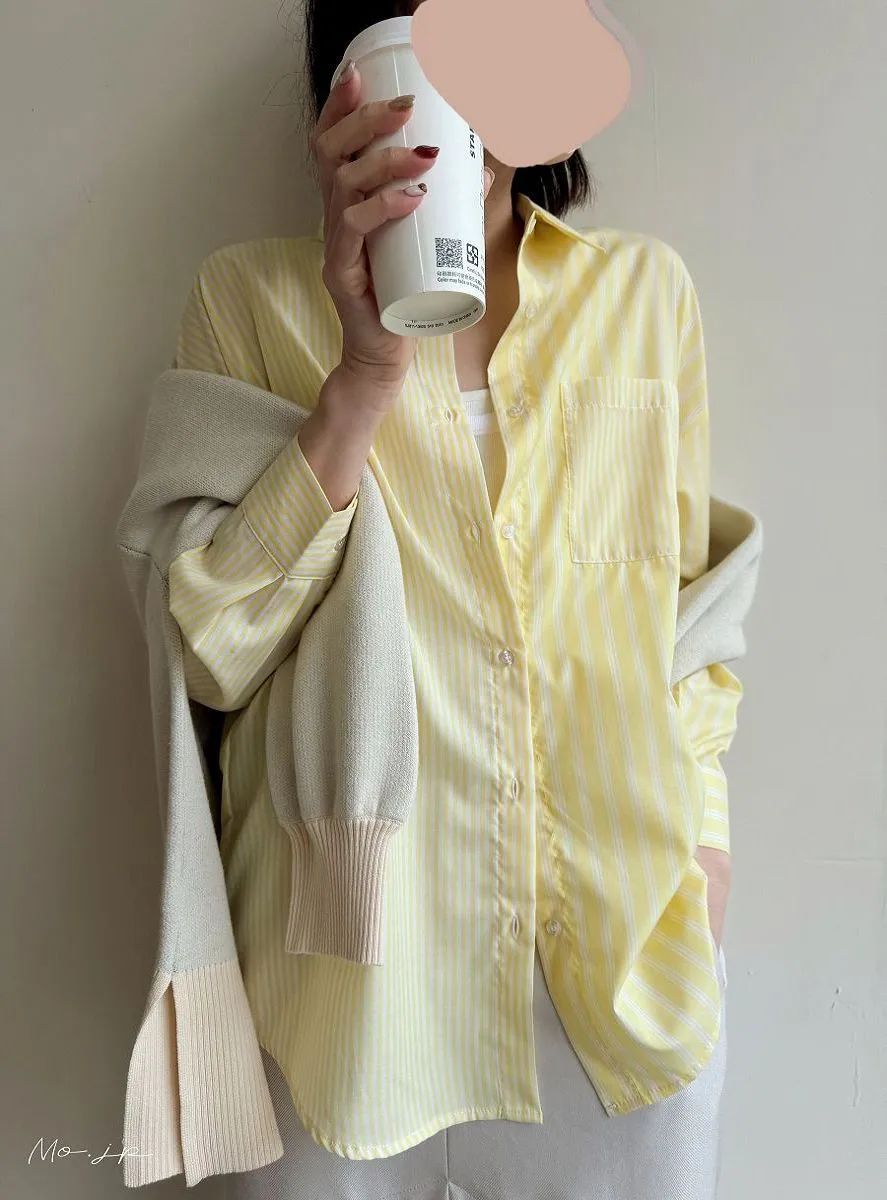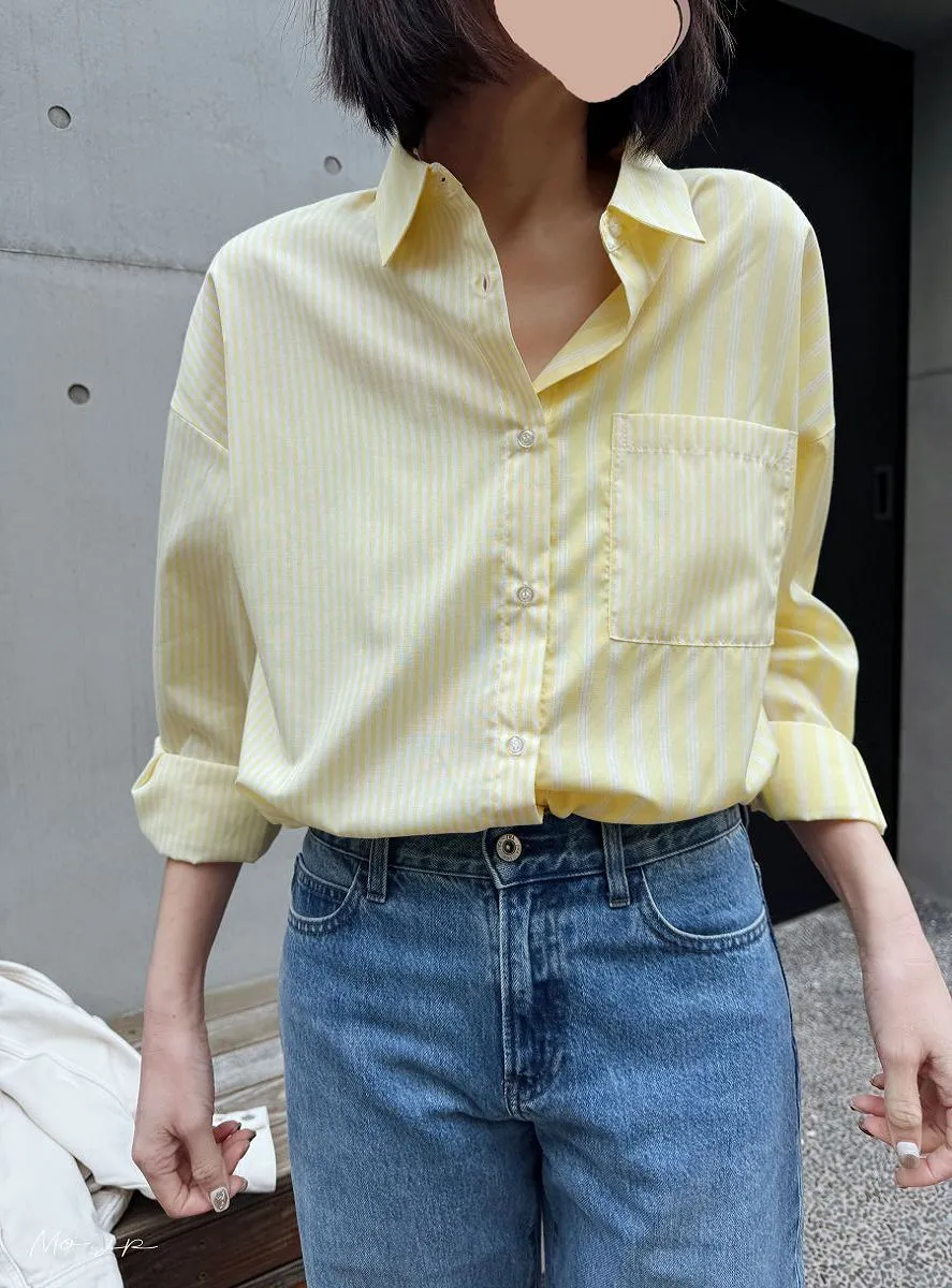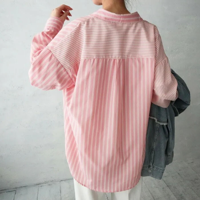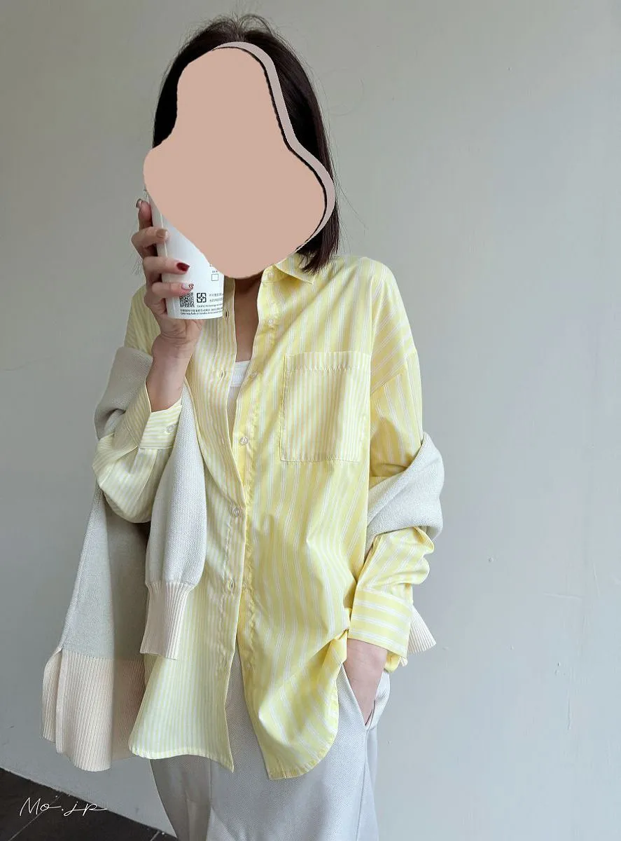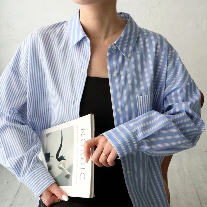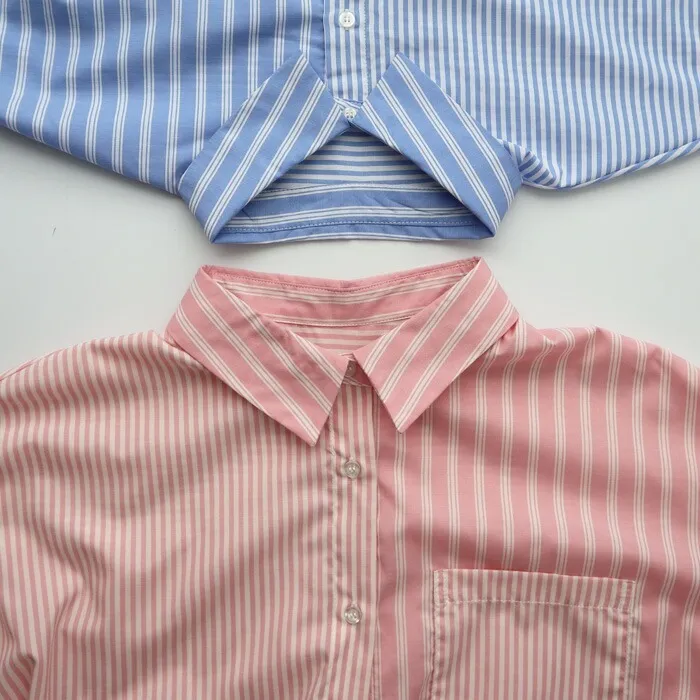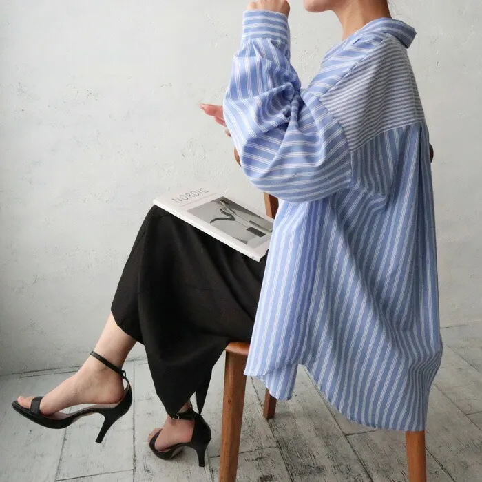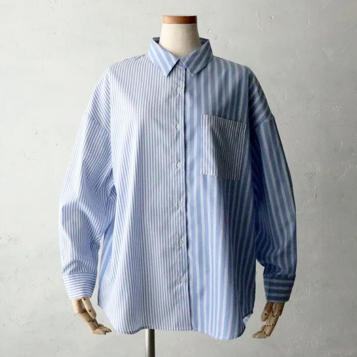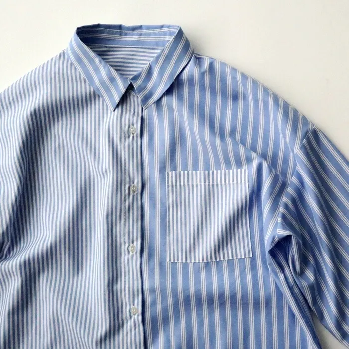 直條橫條拼接條紋襯衫
