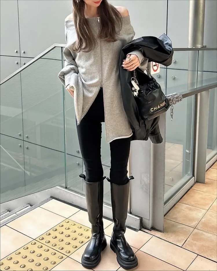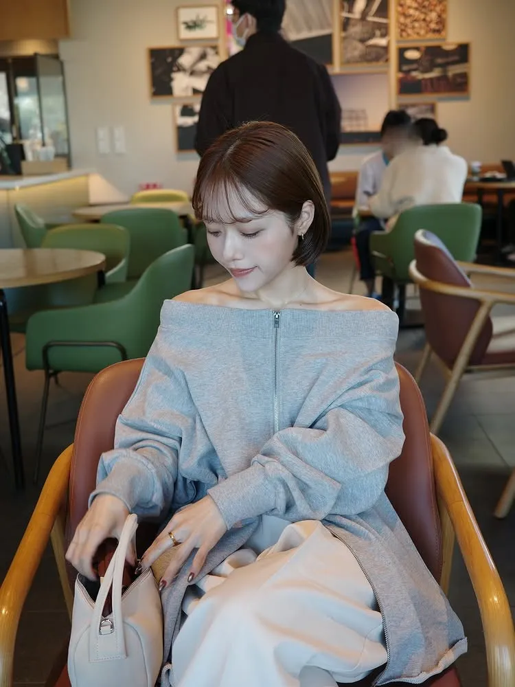 ✔ 雙穿設計 – 拉上拉鍊是 立領運動風,拉開變 微露肩慵懶風,一件兩穿超實用!