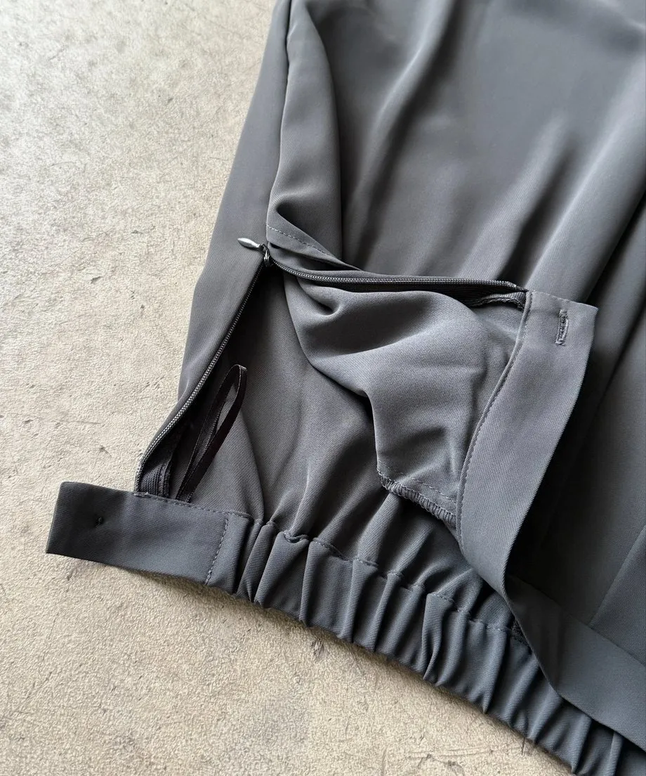 側邊設計有拉鍊+釦釦~除了好穿脫外~內扎時或搭配短版單品讓褲子看起來更有造型