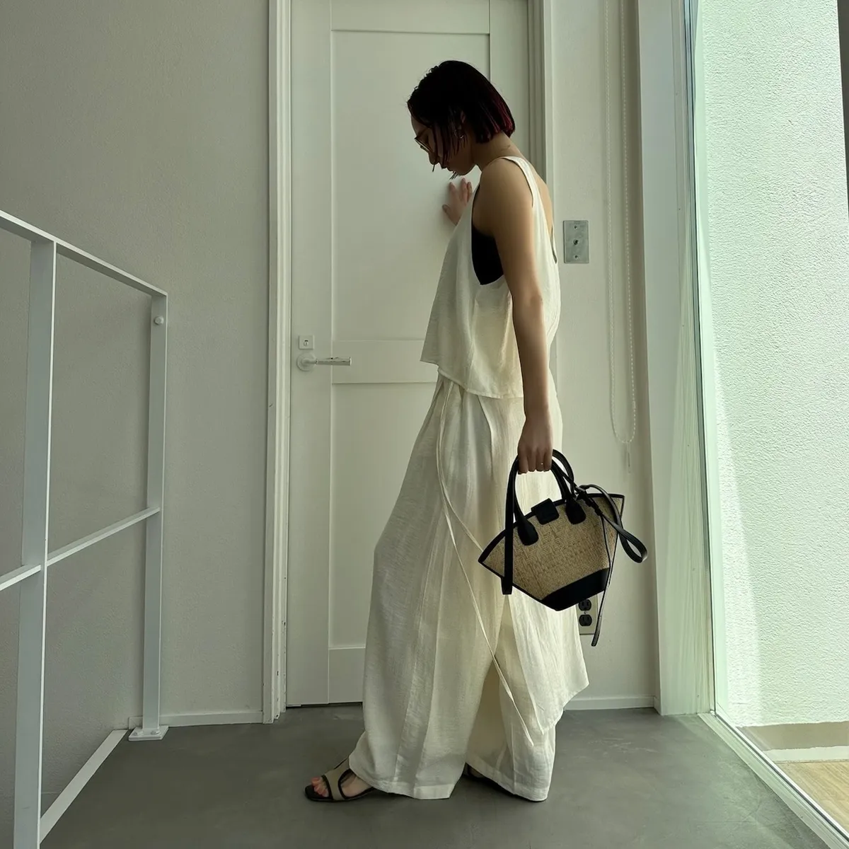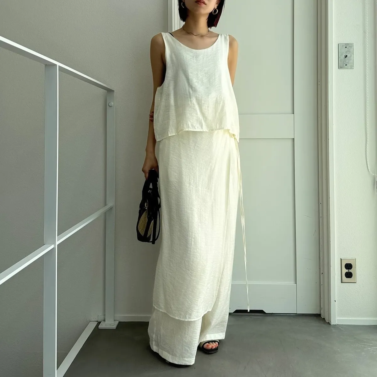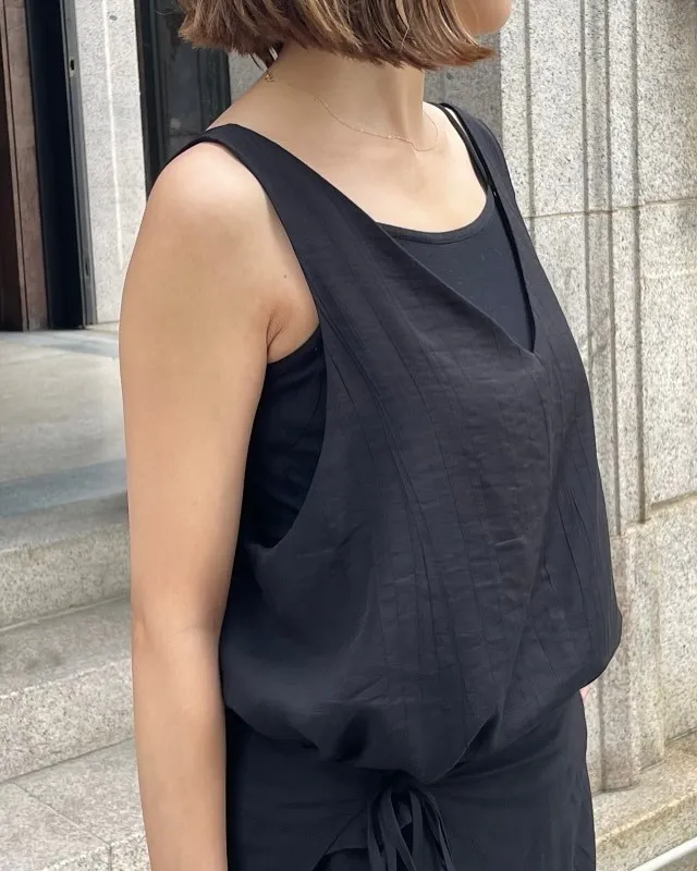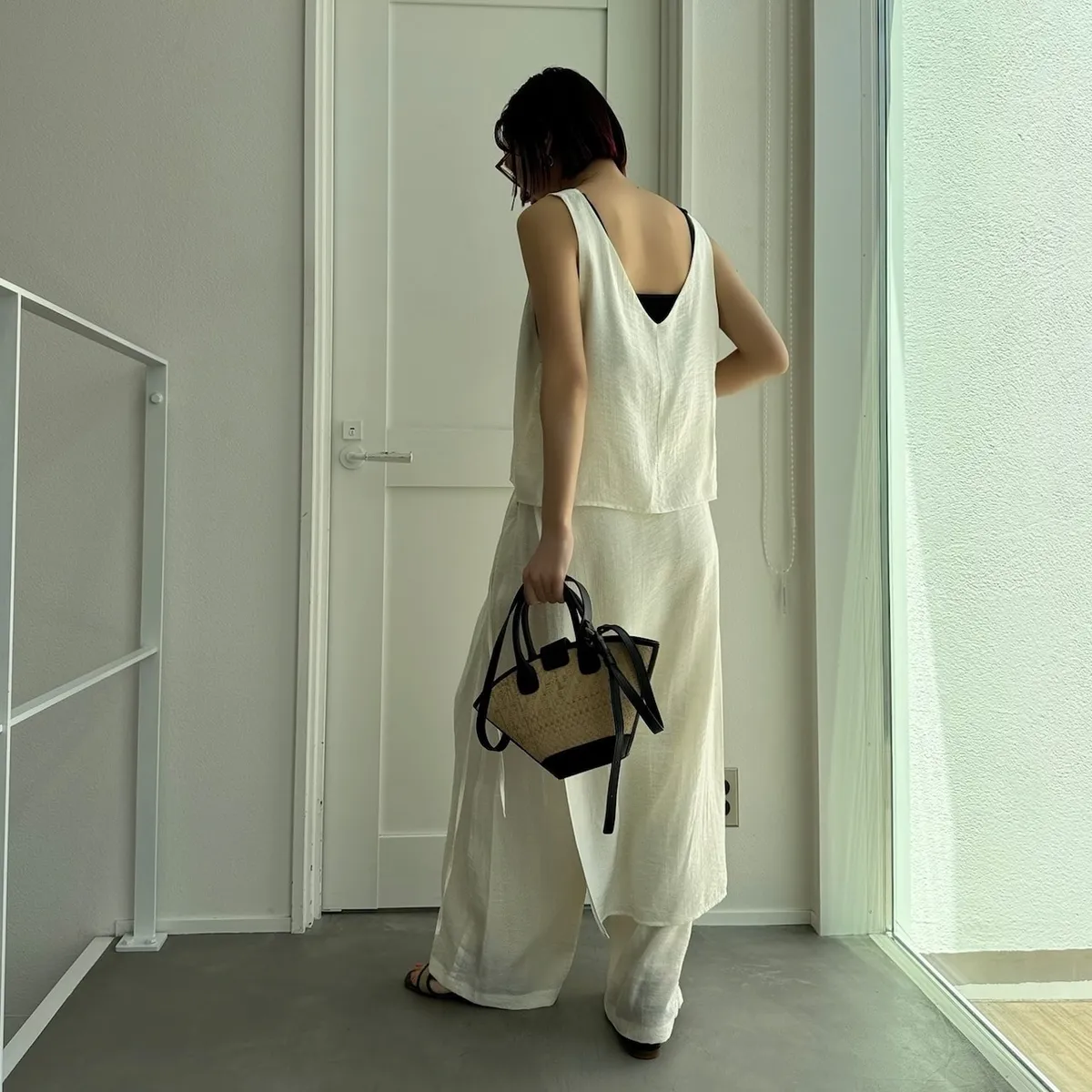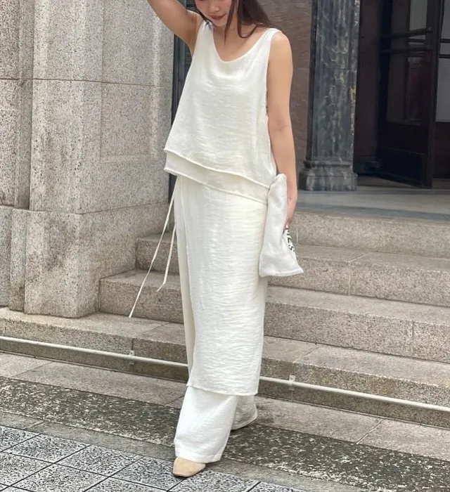 品牌夏日絲感涼涼飄飄背心前後U領V領,可以前後變化穿搭夏日度假感氛圍,混縲縈面料光澤絲感同款面料有褲裙組,搭配成套超級好看整件版型鬆鬆舒適感,接觸冷感材質,夏日悶熱感掰掰異素材雙層造型內層材質有透度整體呈現簡單又設計感可以選擇內紮內層,調整整體上身比例3色
