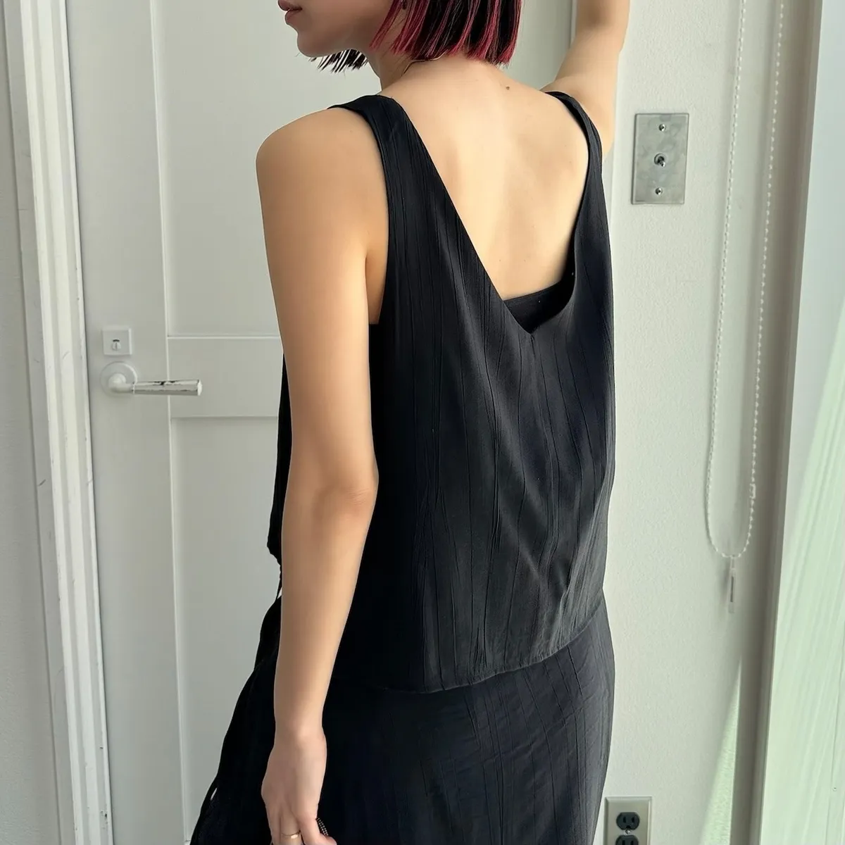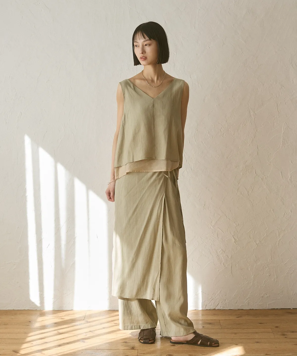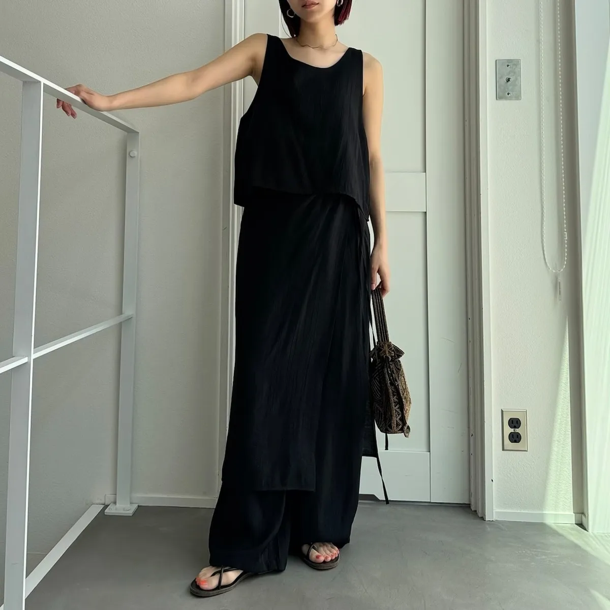 品牌夏日絲感涼涼飄飄背心前後U領V領,可以前後變化穿搭夏日度假感氛圍,混縲縈面料光澤絲感同款面料有褲裙組,搭配成套超級好看整件版型鬆鬆舒適感,接觸冷感材質,夏日悶熱感掰掰異素材雙層造型內層材質有透度整體呈現簡單又設計感可以選擇內紮內層,調整整體上身比例3色