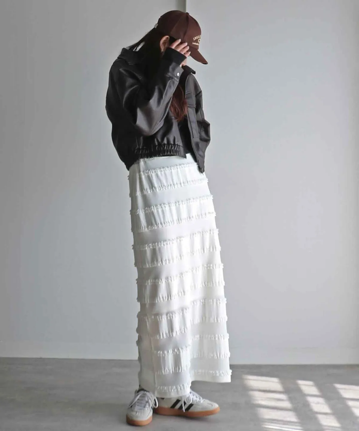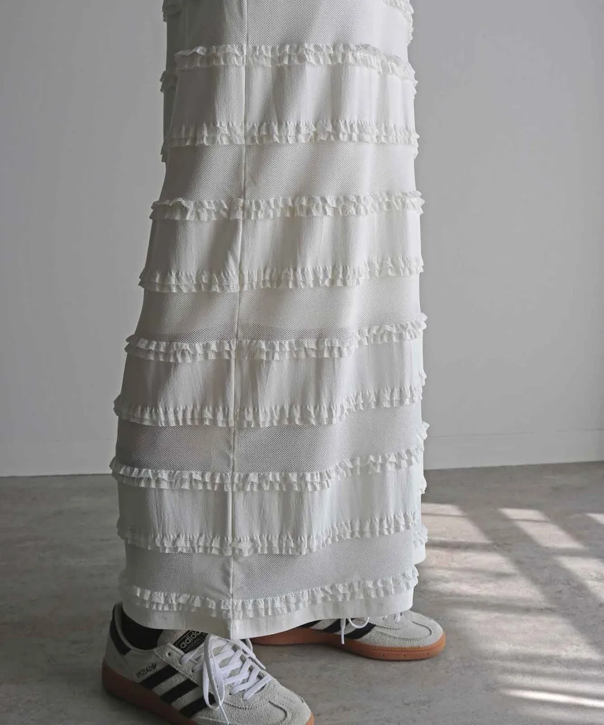 下擺利用內裡的落差長度呈現透視感設計