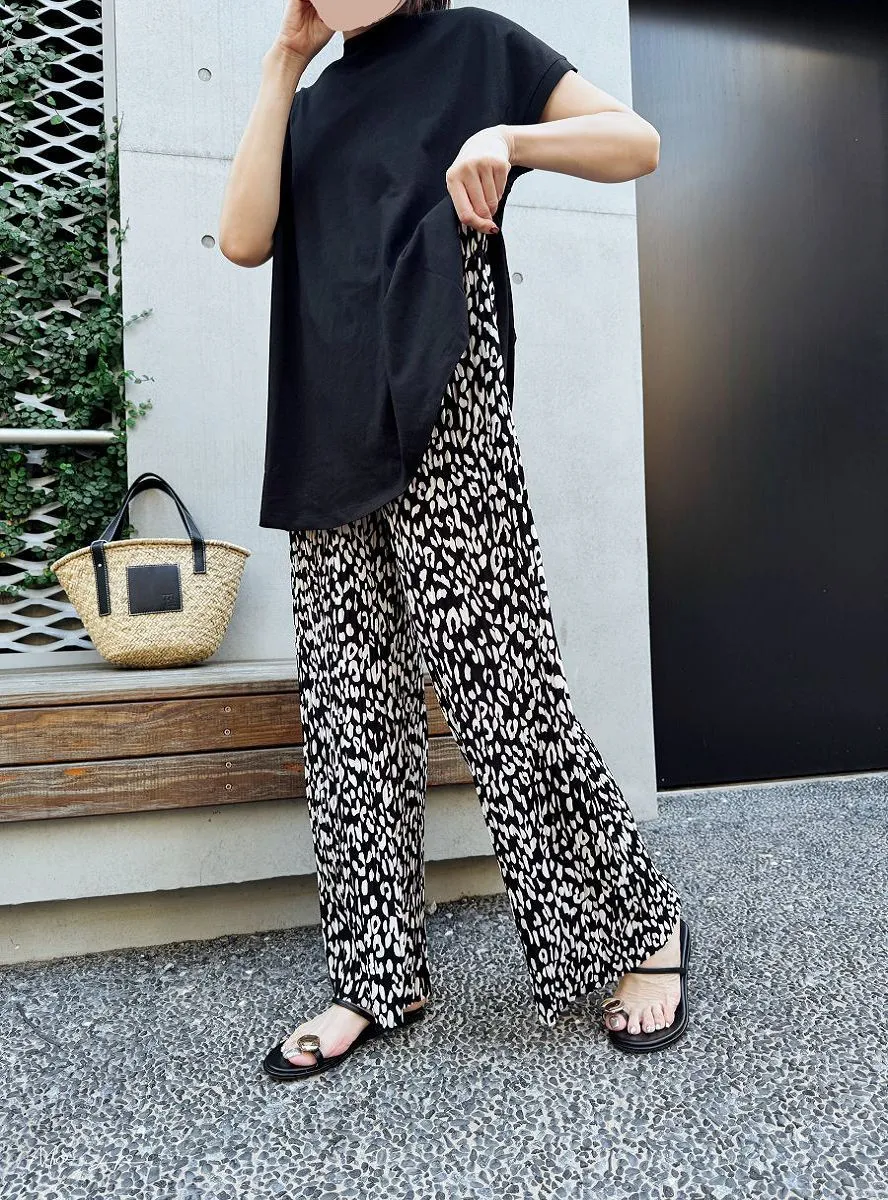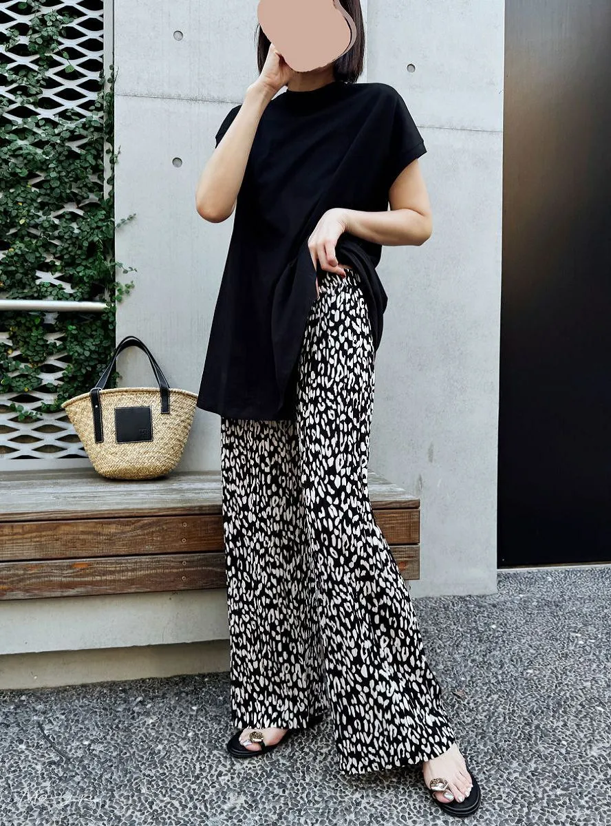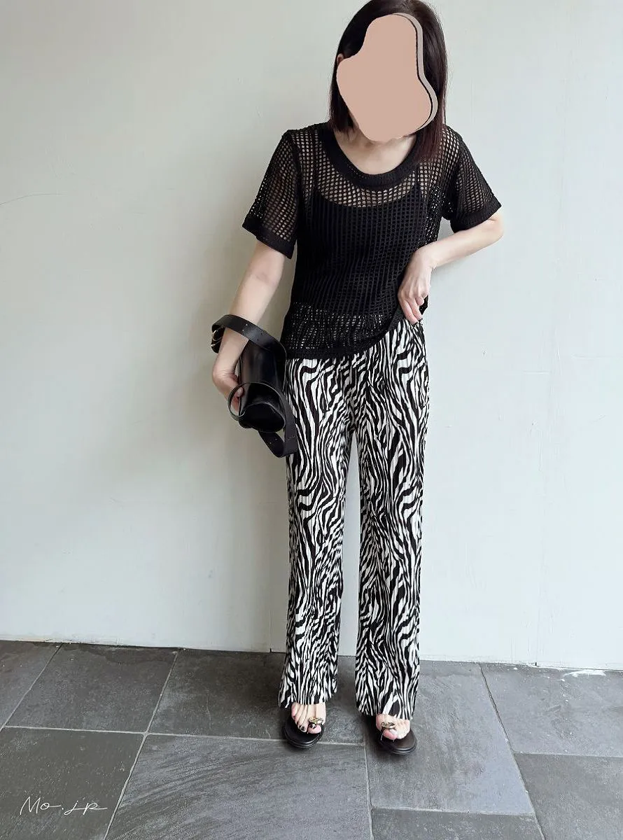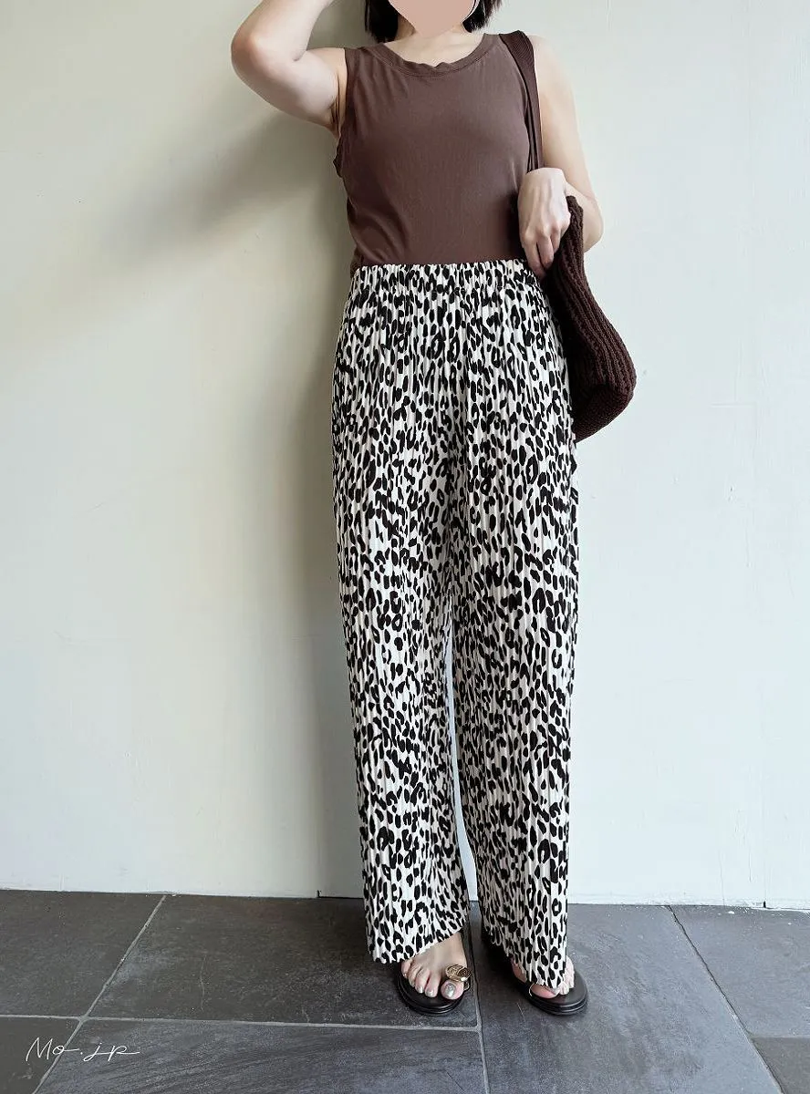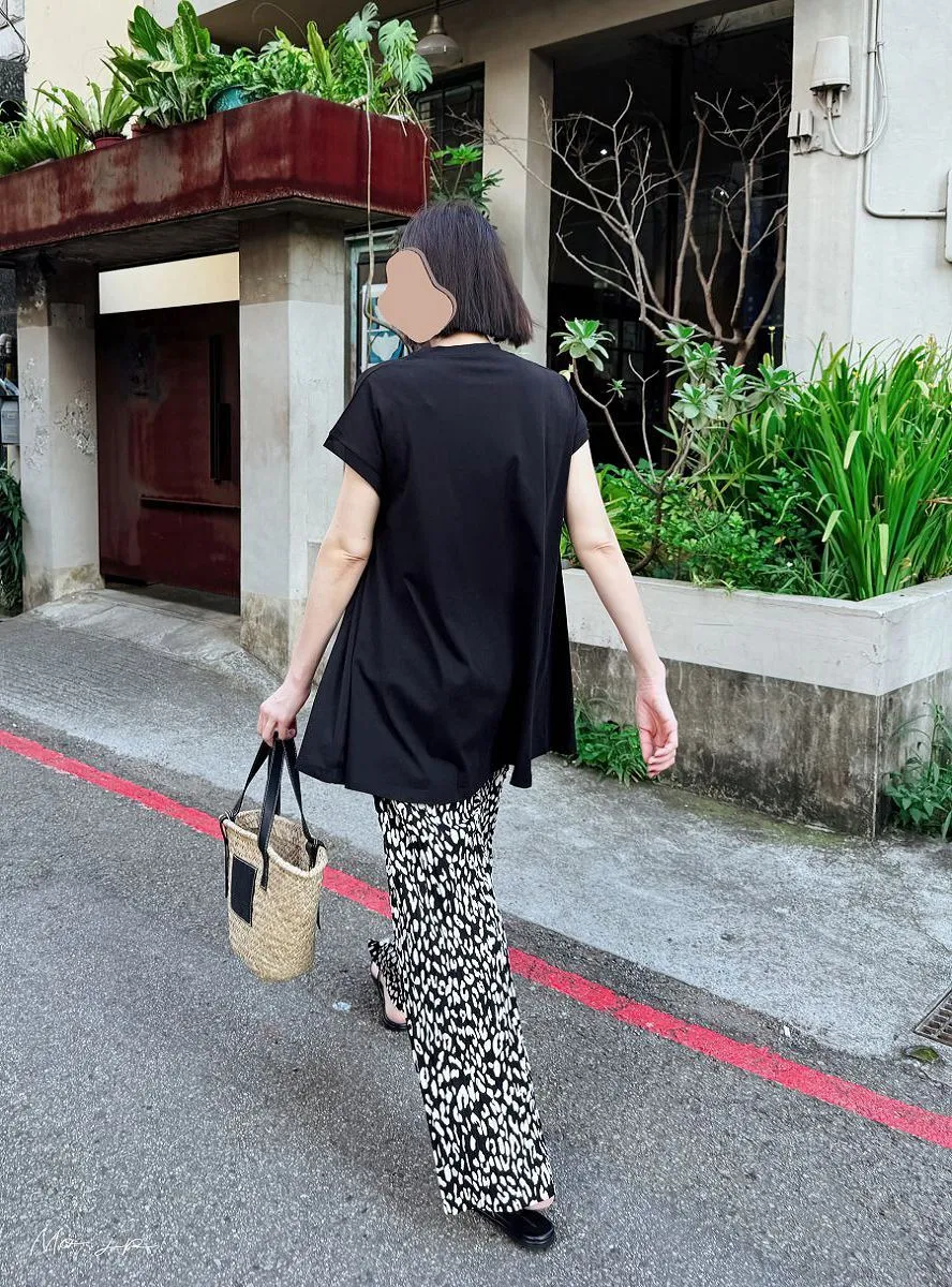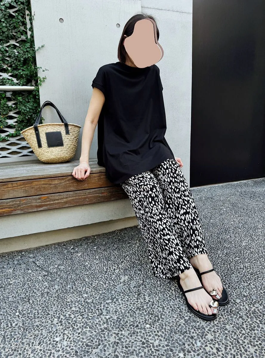 是很順身的寬褲喔~這款的面料很神奇~不會貼在腿上喔