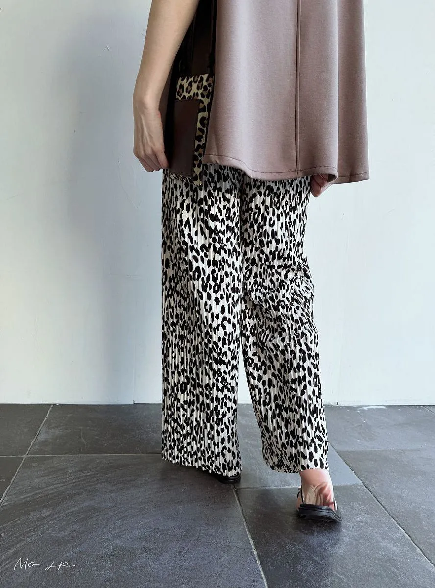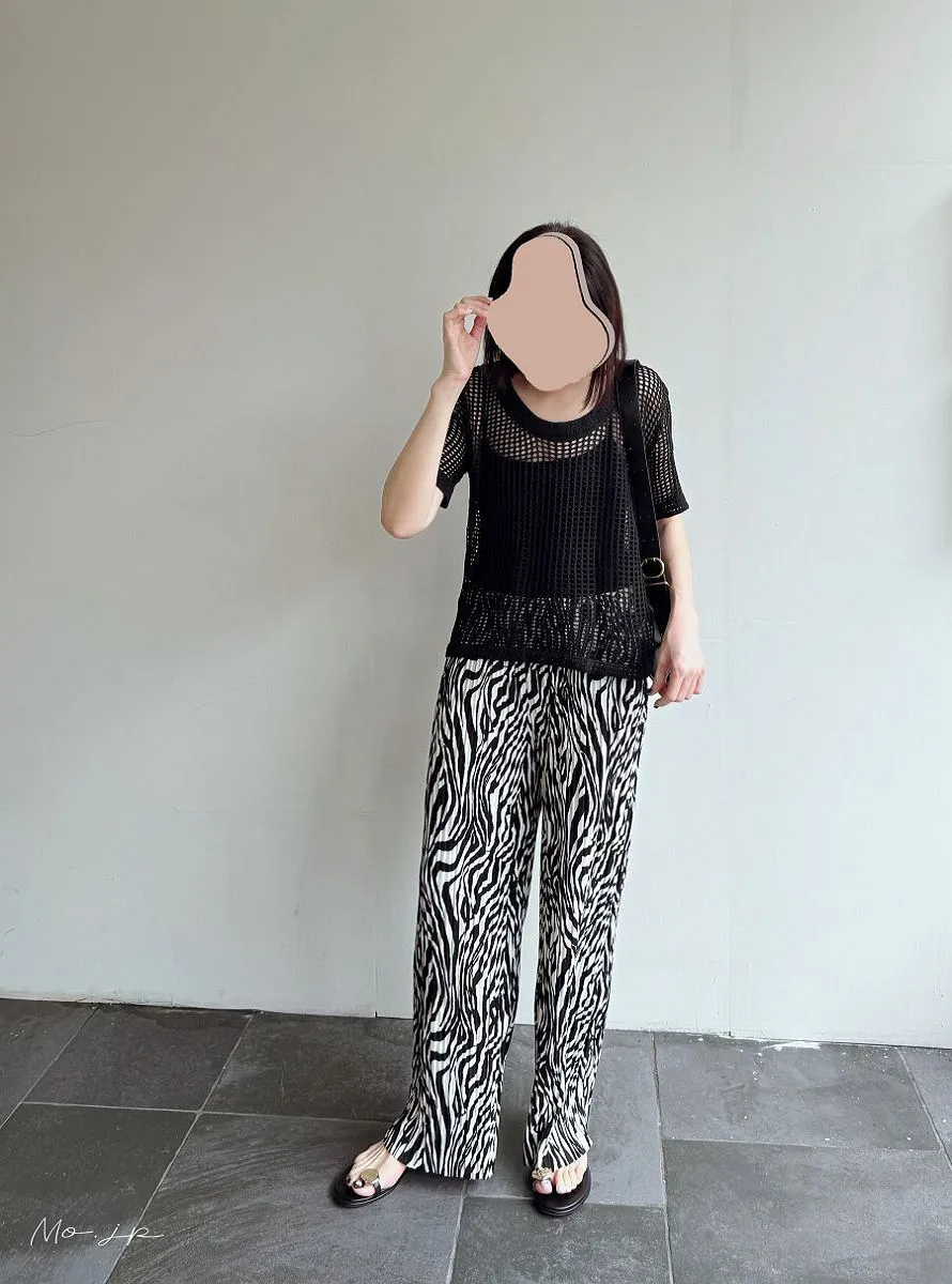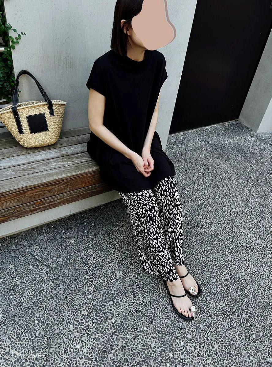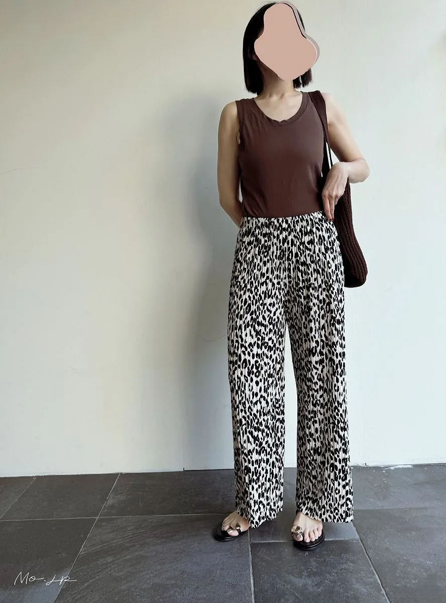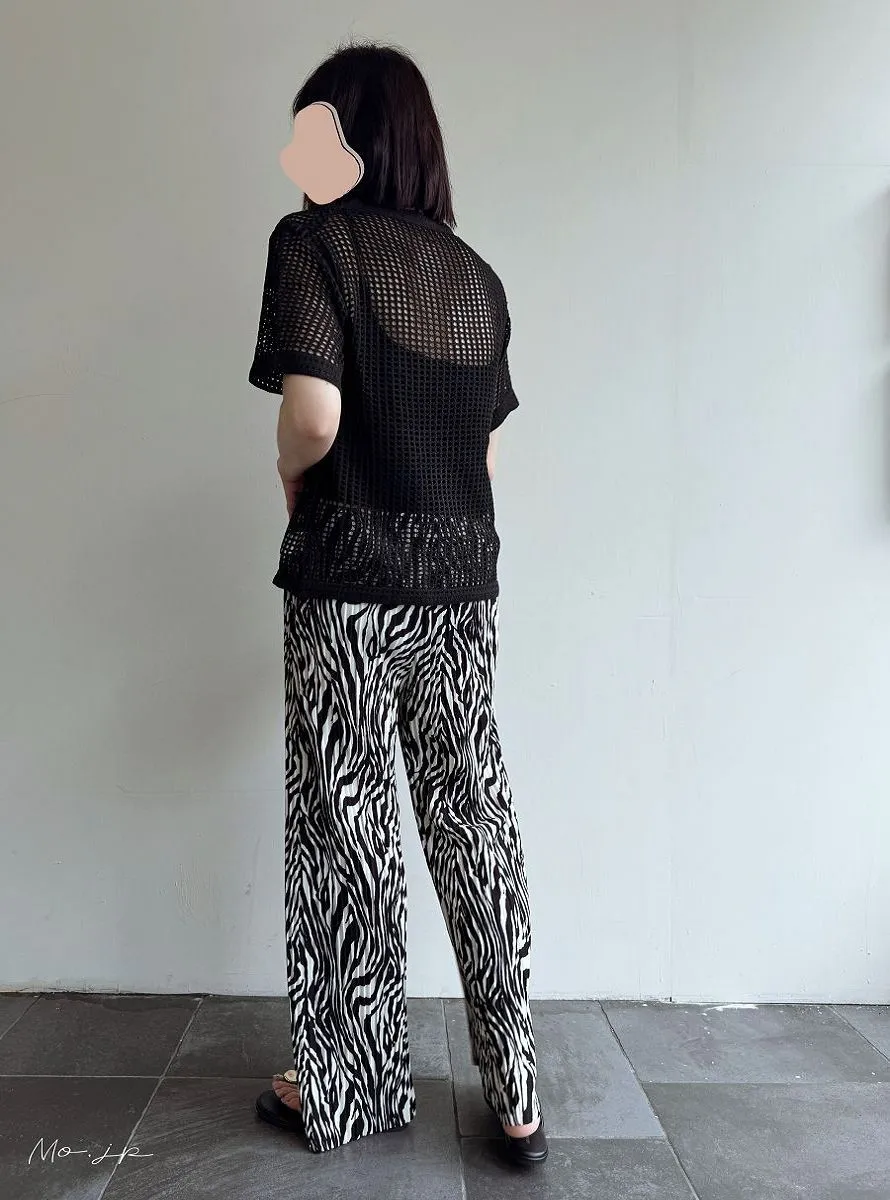 是很順身的寬褲喔~這款的面料很神奇~不會貼在腿上喔
