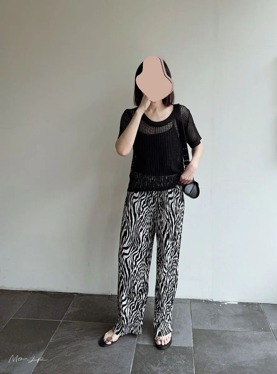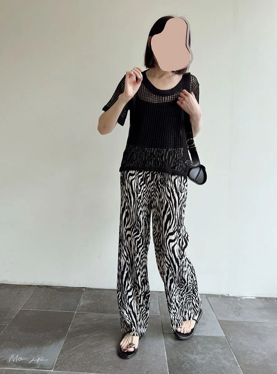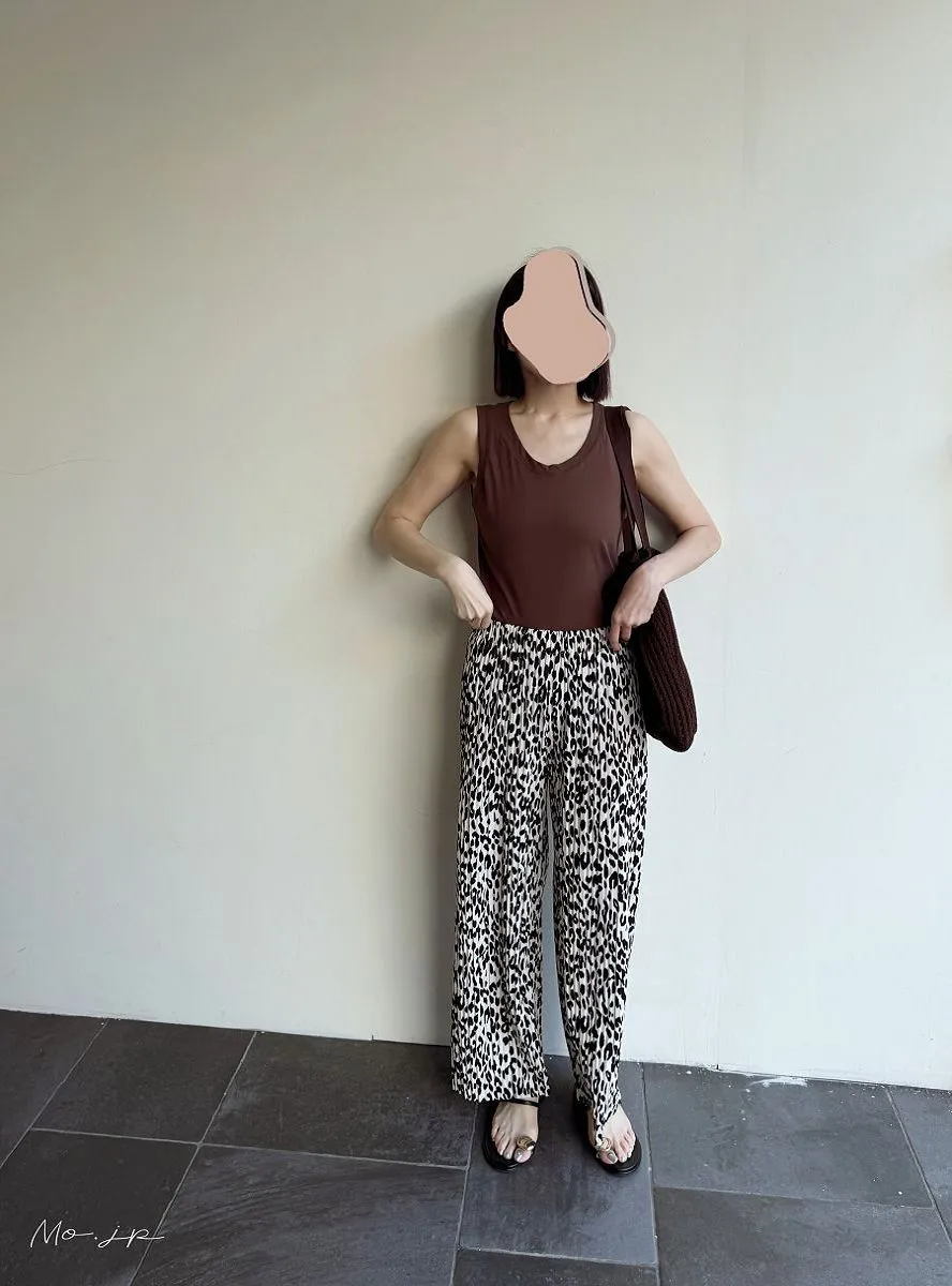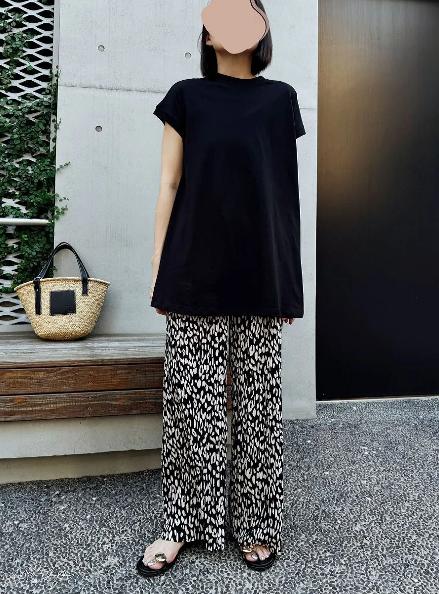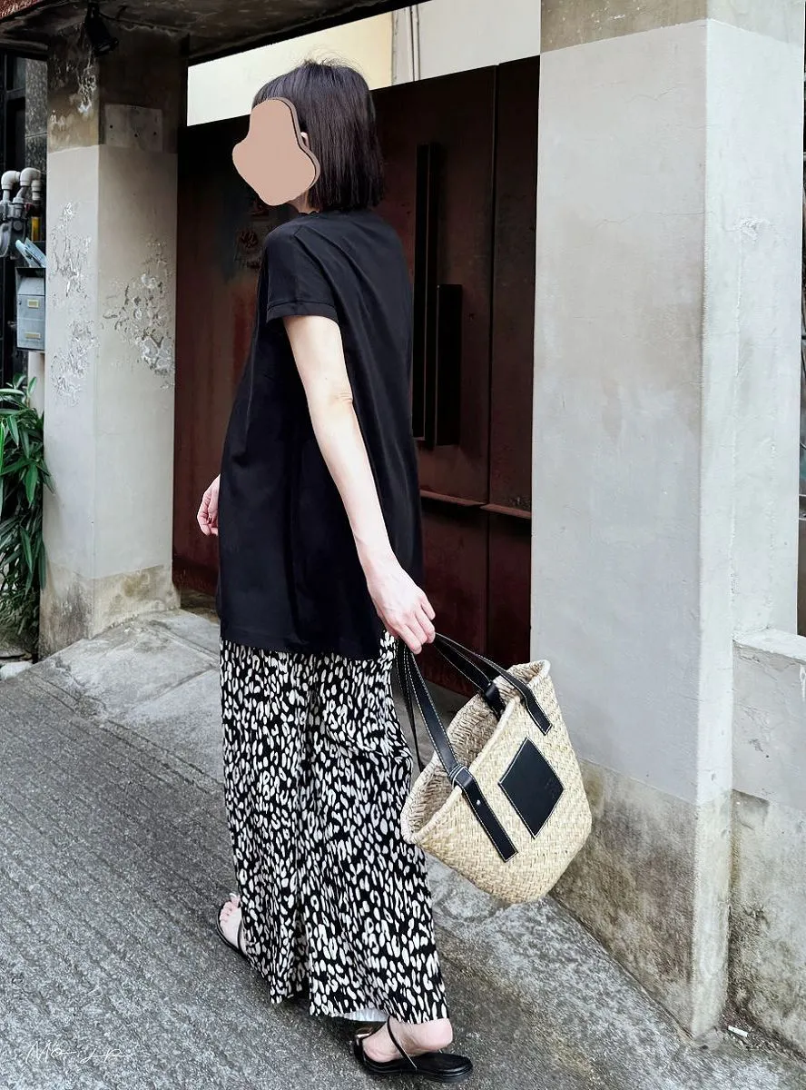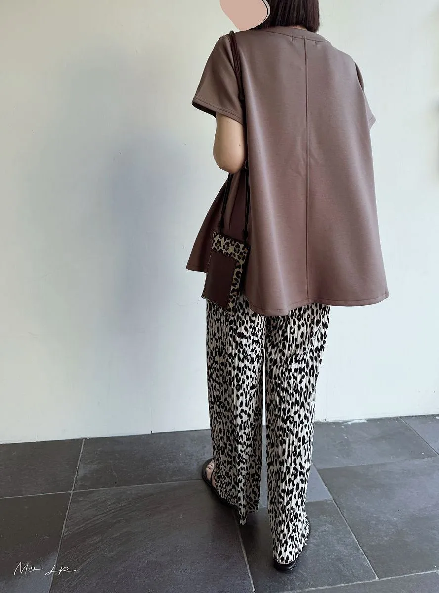 是很順身的寬褲喔~這款的面料很神奇~不會貼在腿上喔