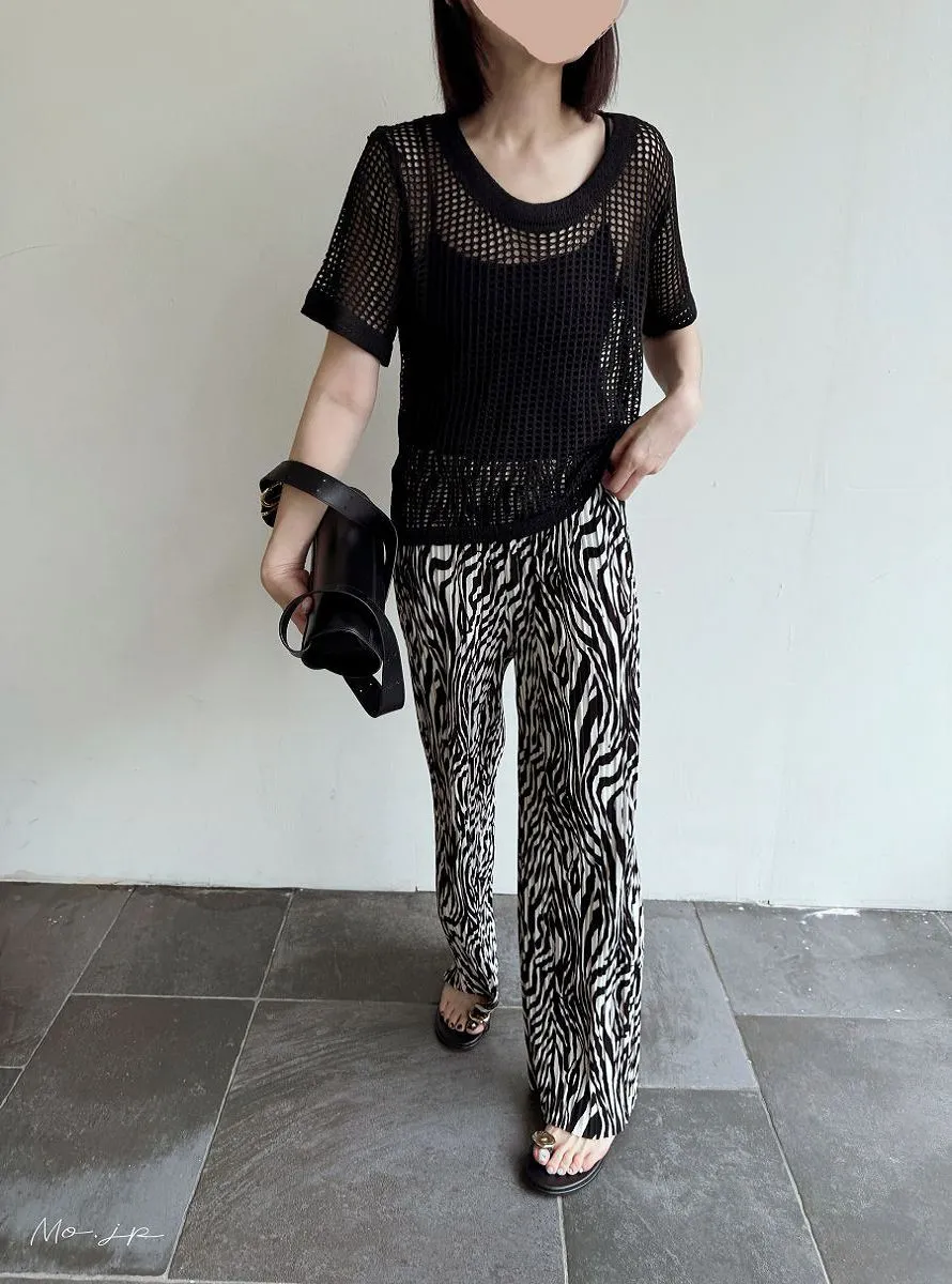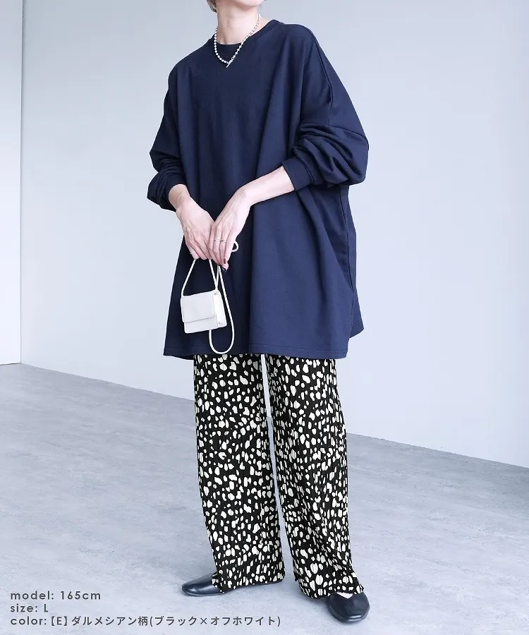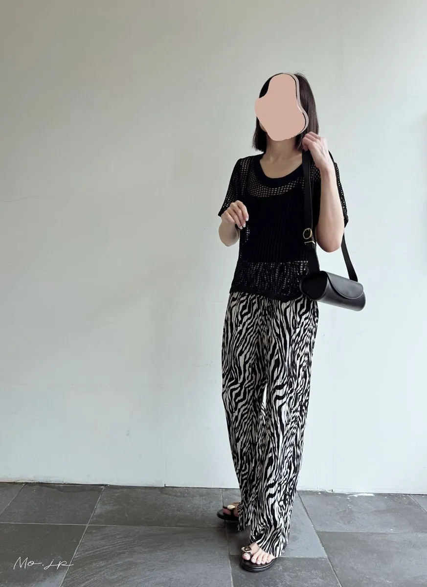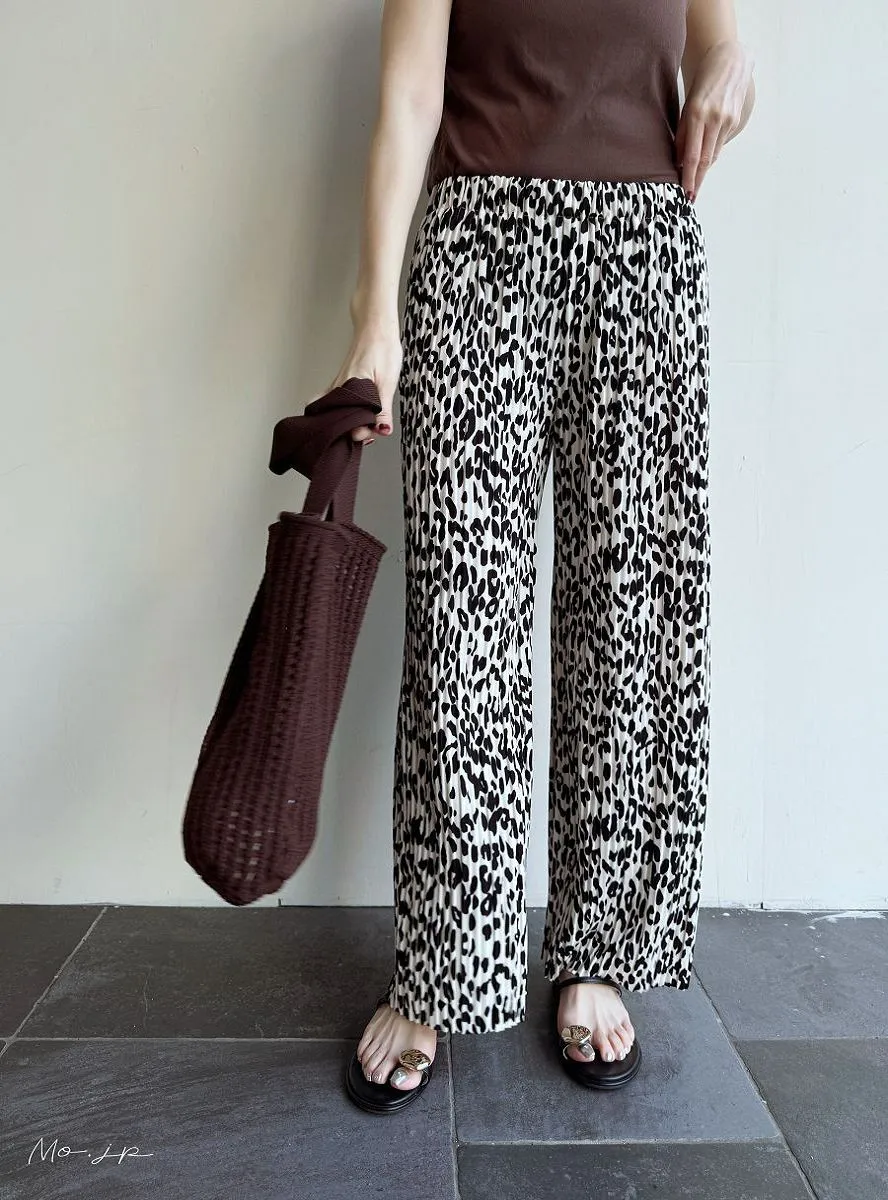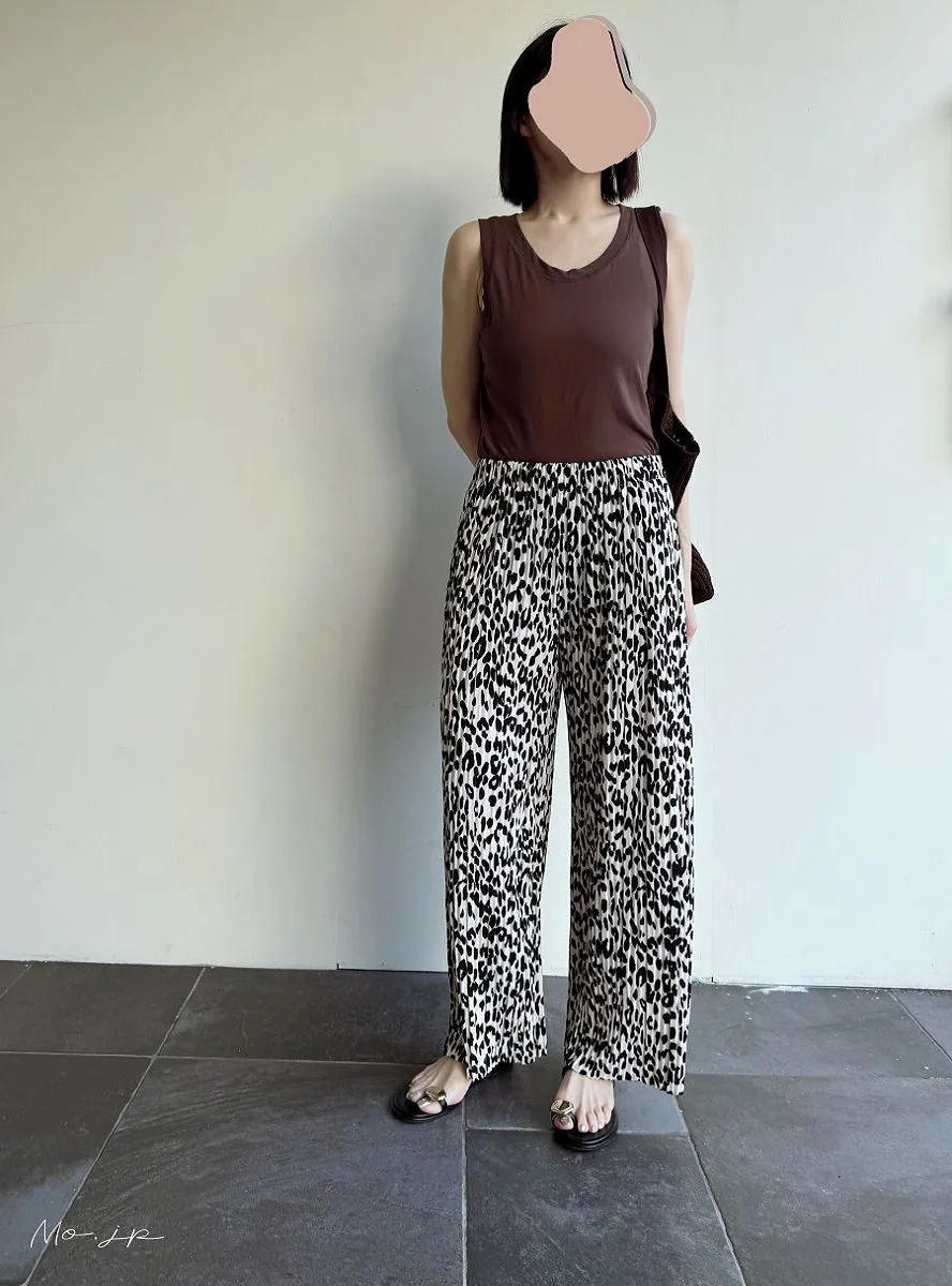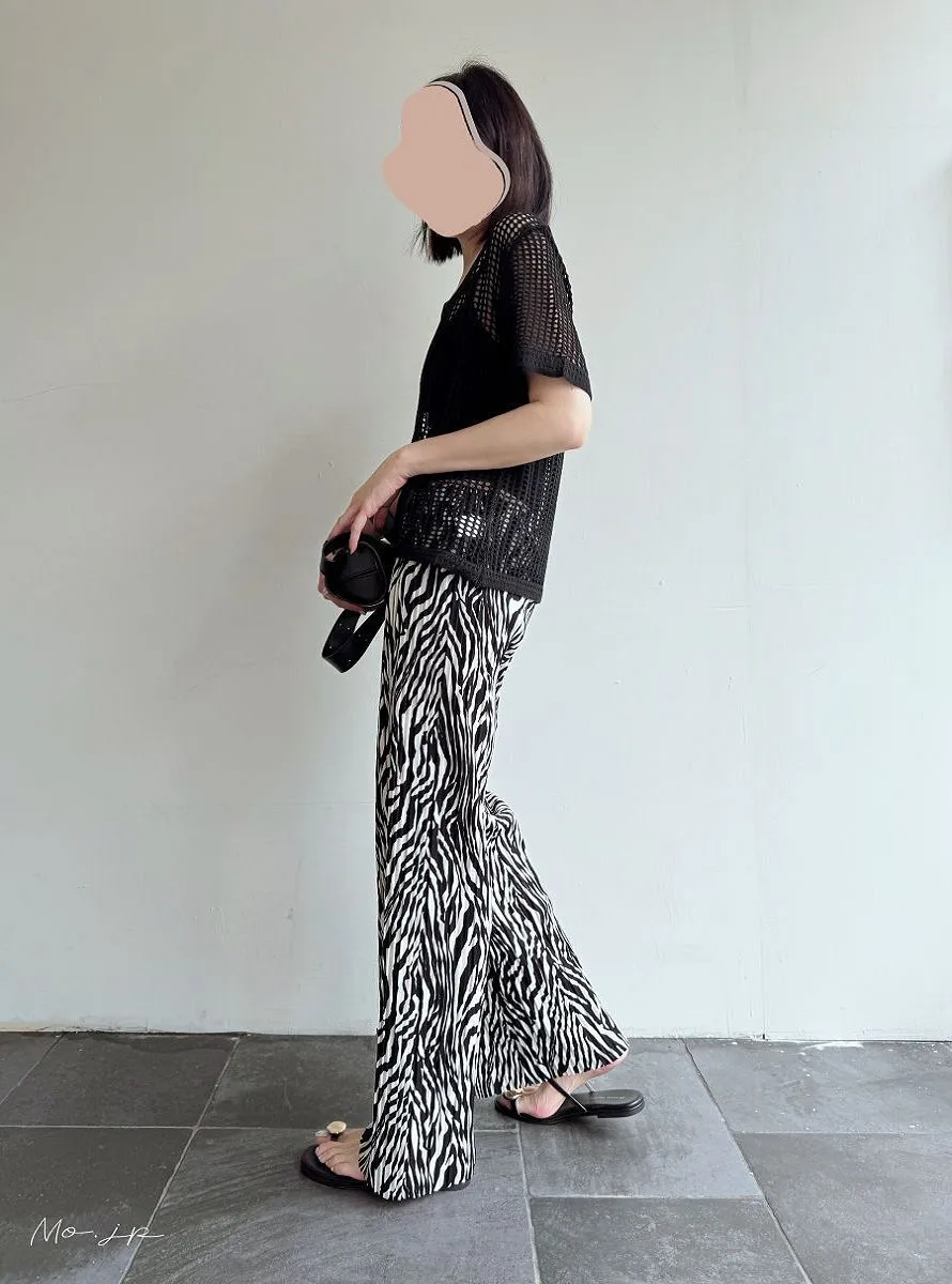 是很順身的寬褲喔~這款的面料很神奇~不會貼在腿上喔