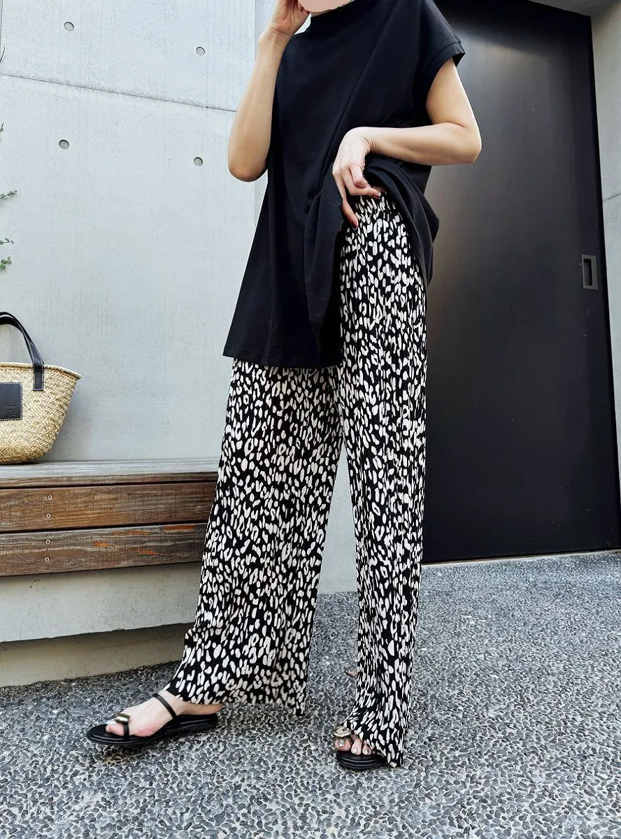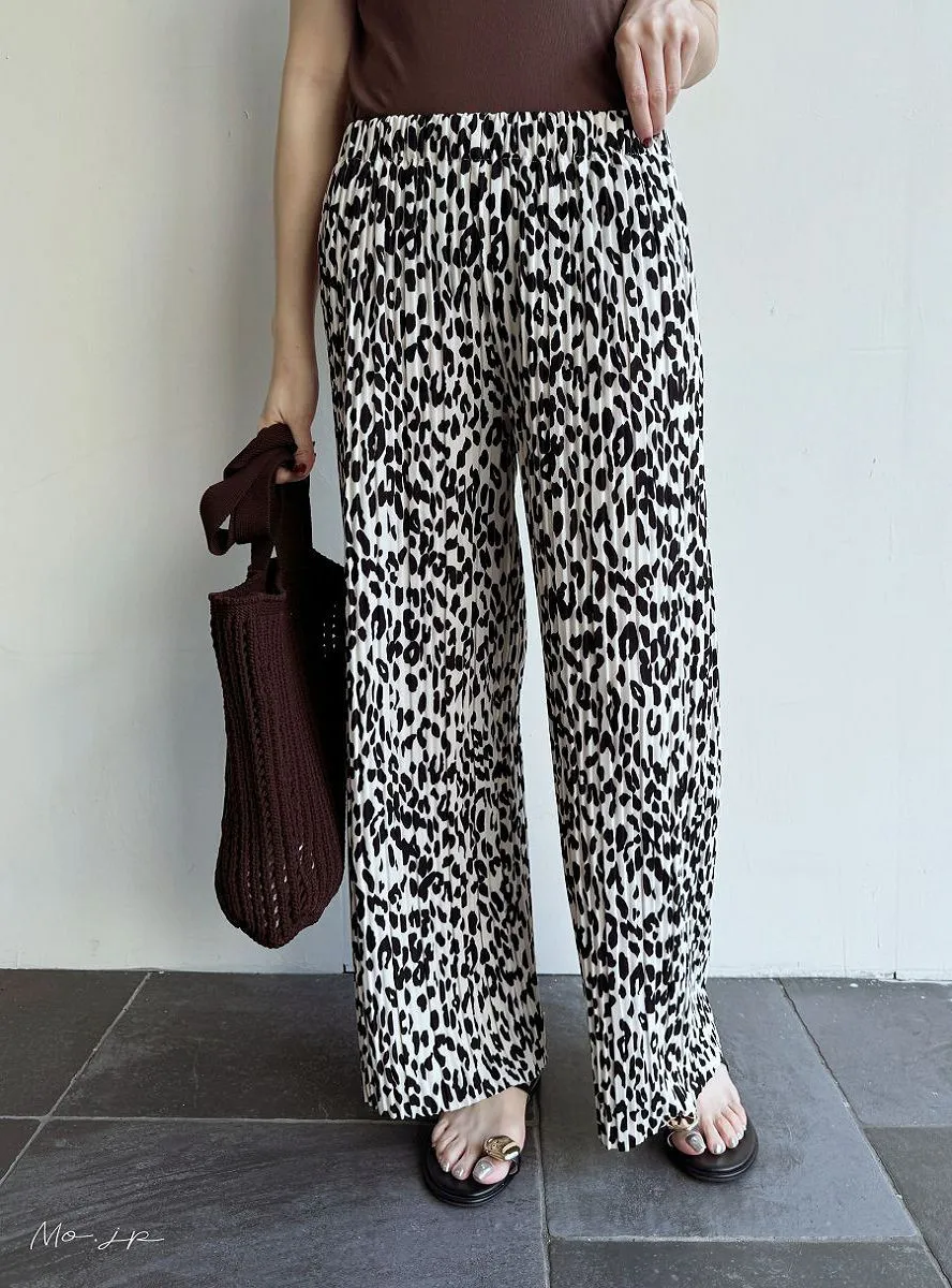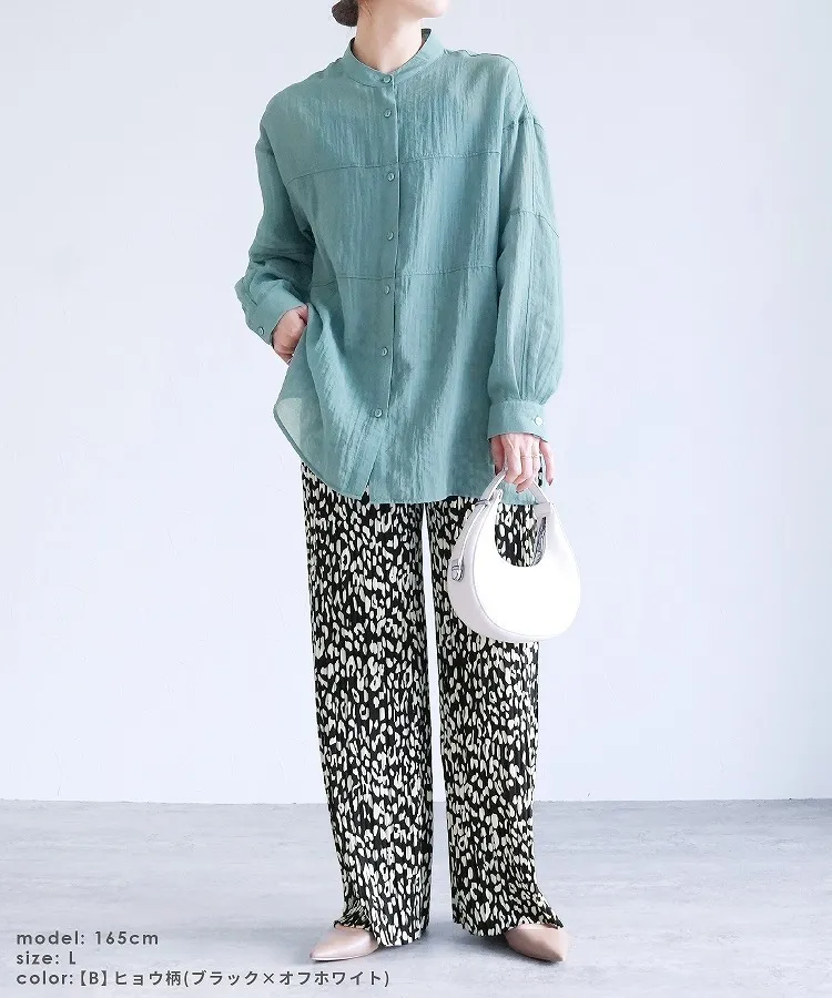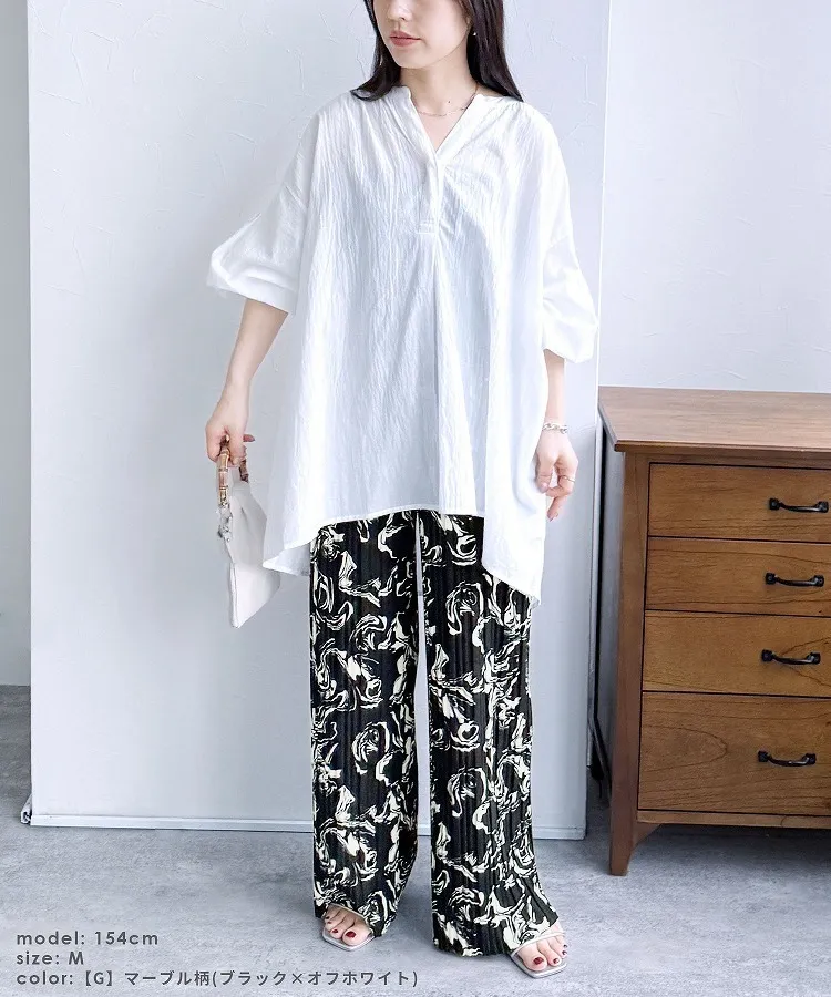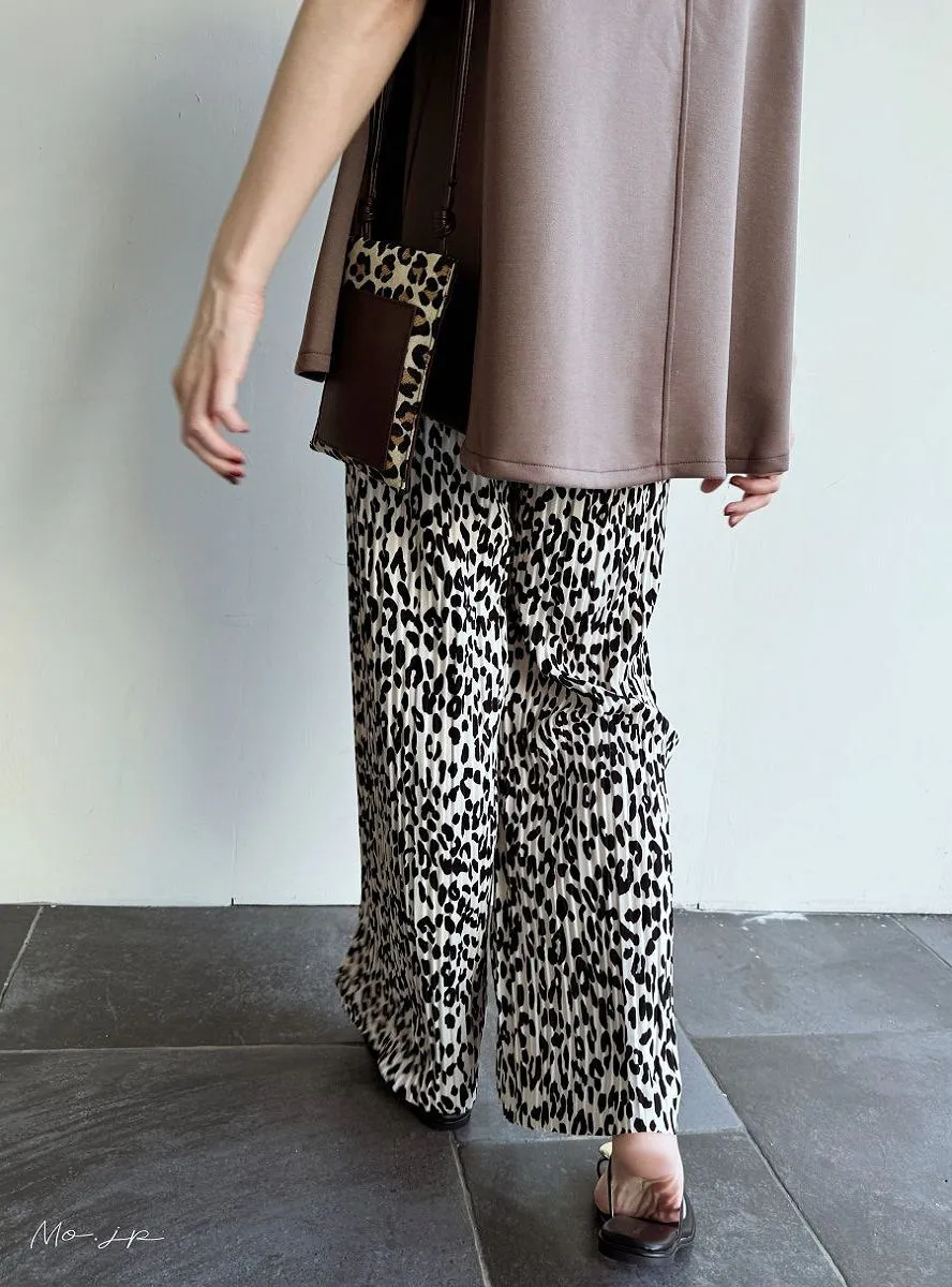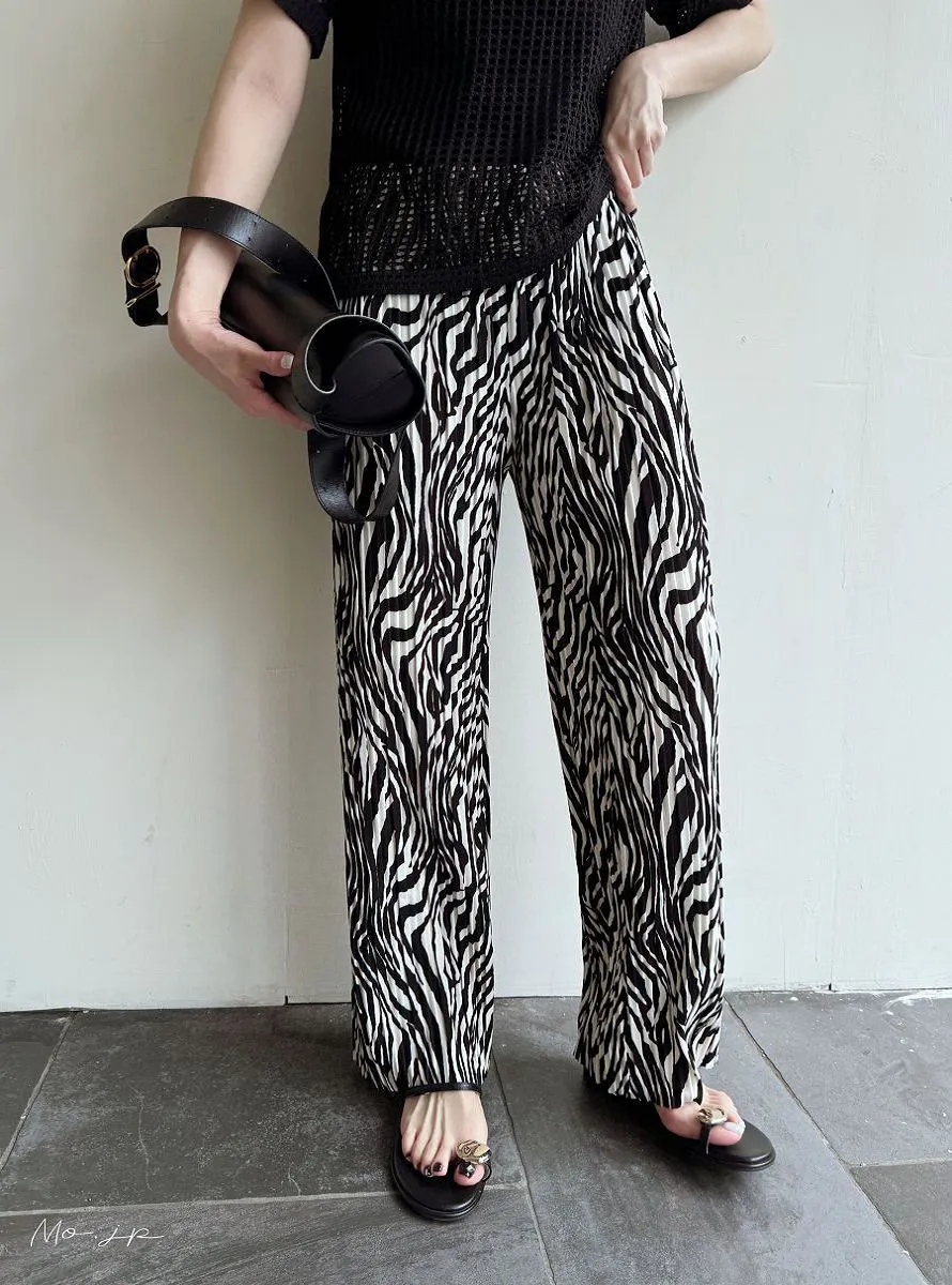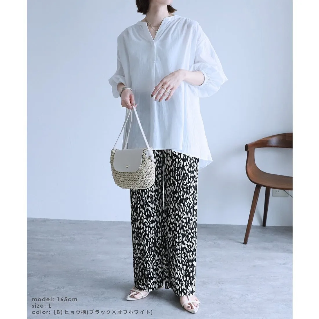 是很順身的寬褲喔~這款的面料很神奇~不會貼在腿上喔