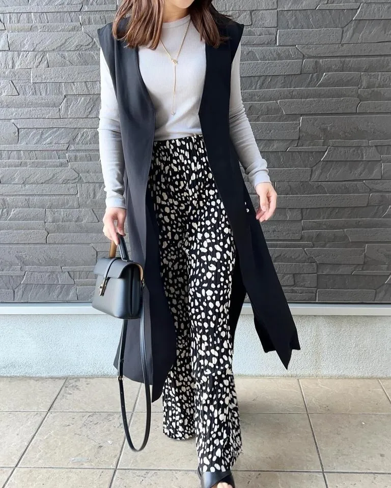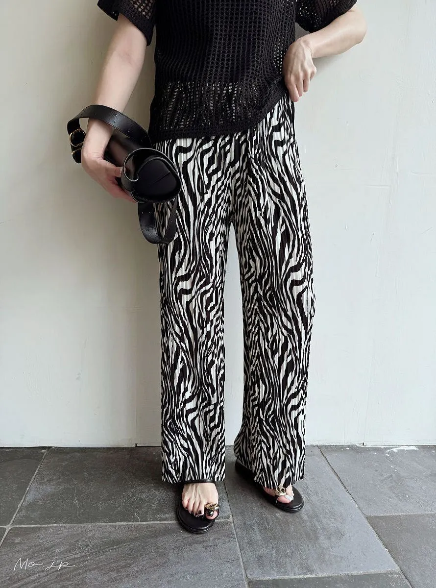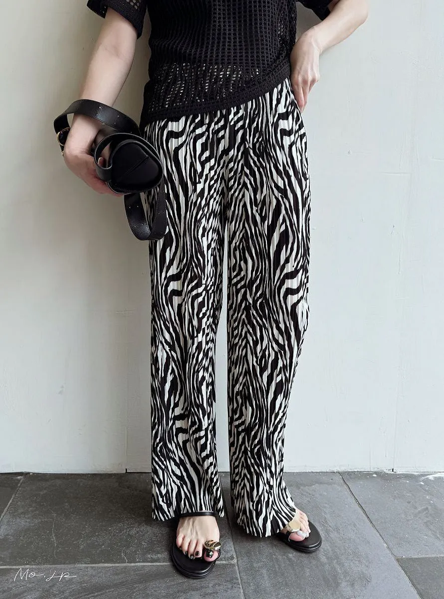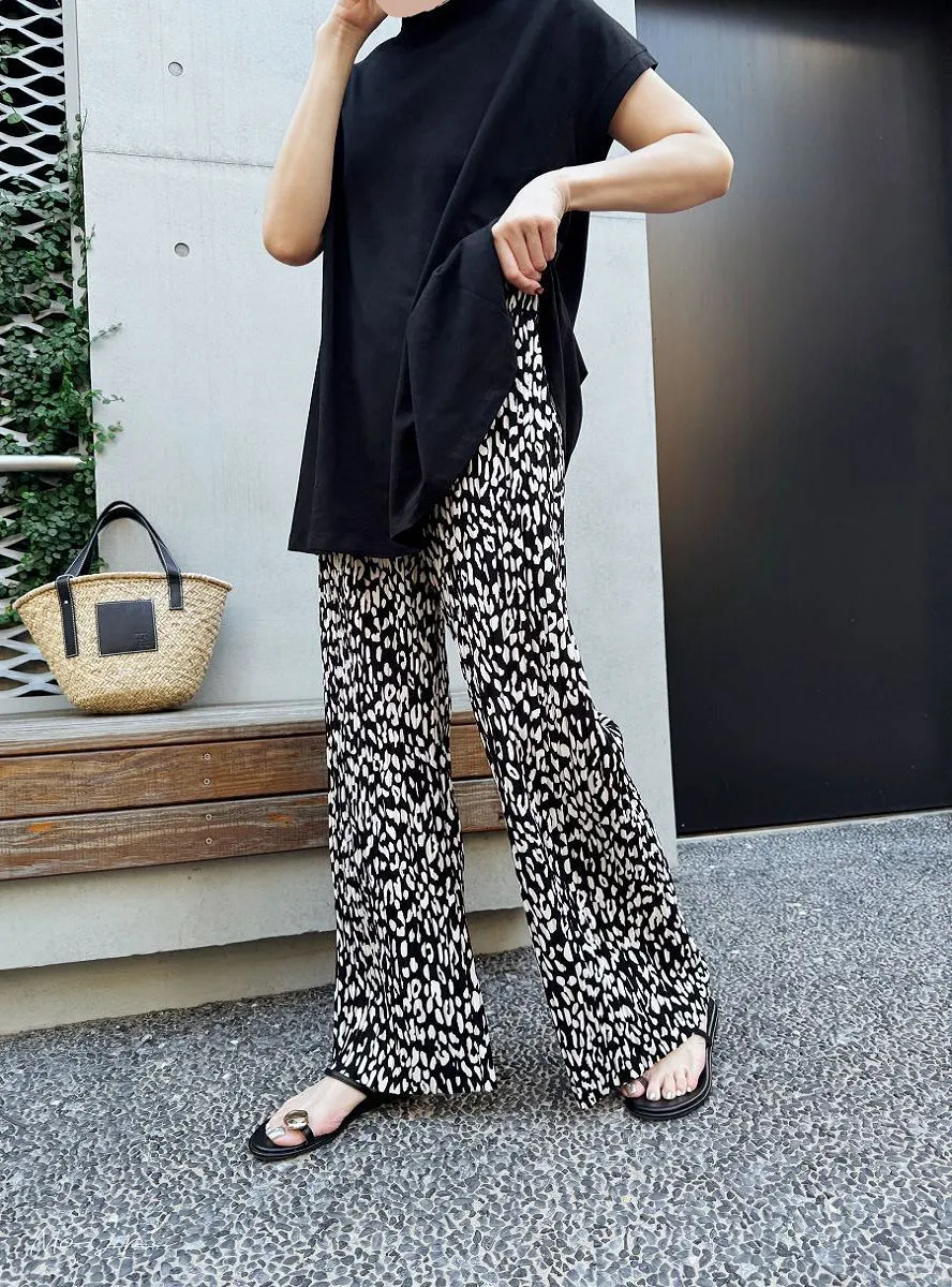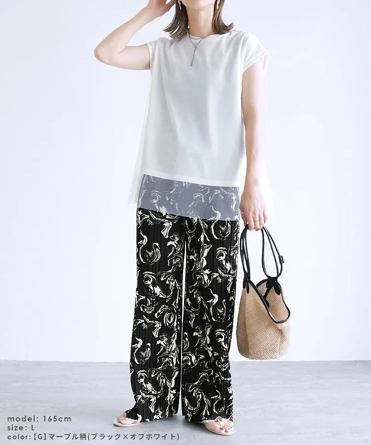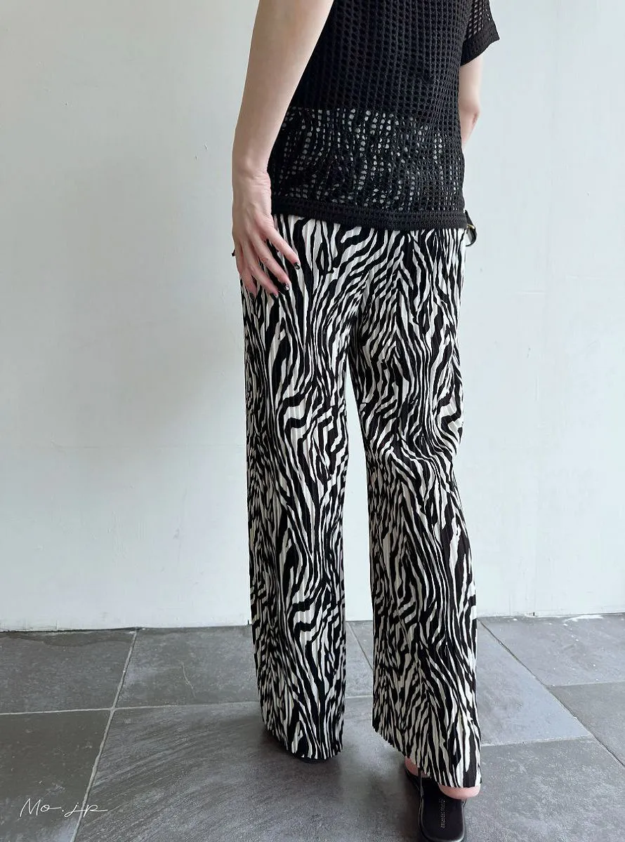 是很順身的寬褲喔~這款的面料很神奇~不會貼在腿上喔