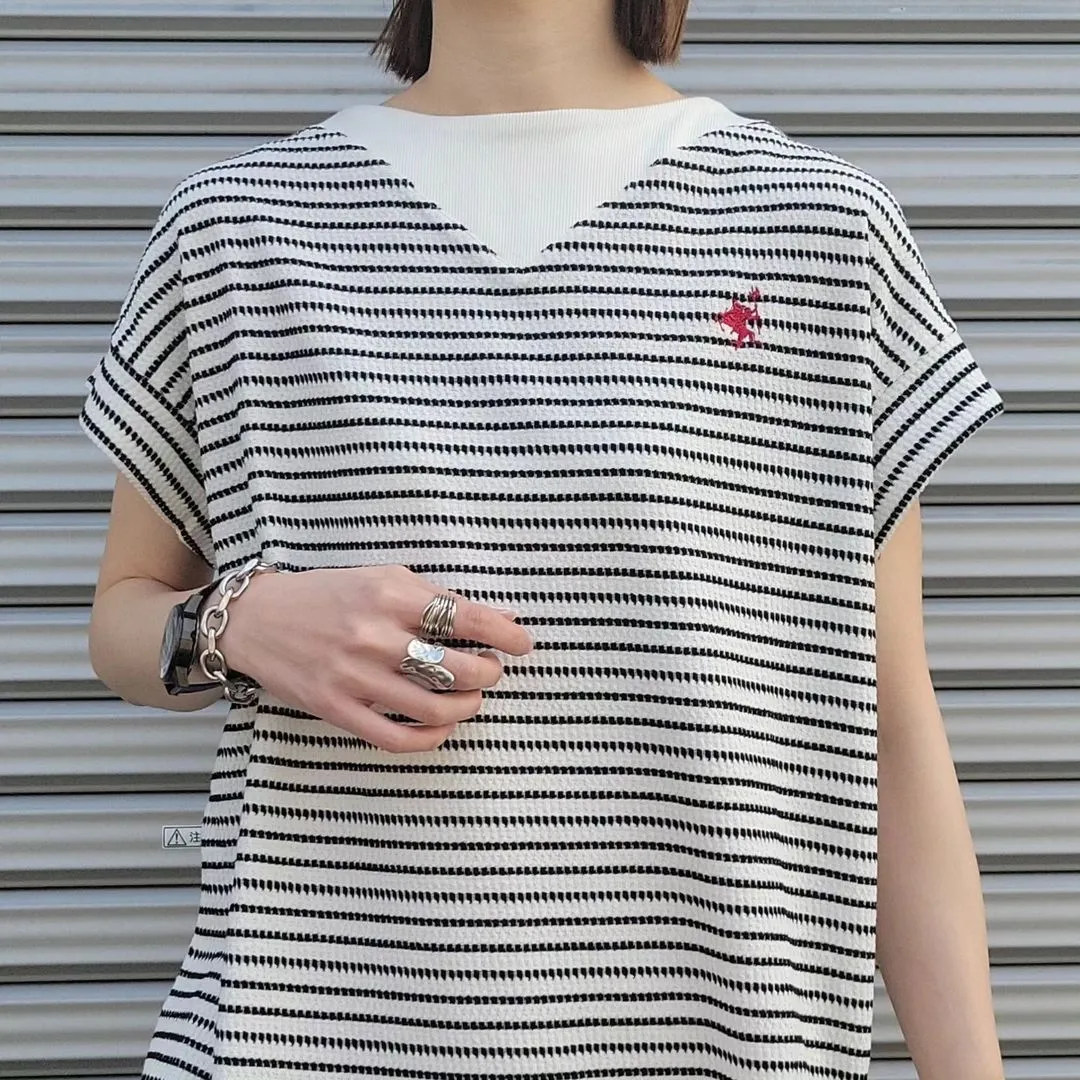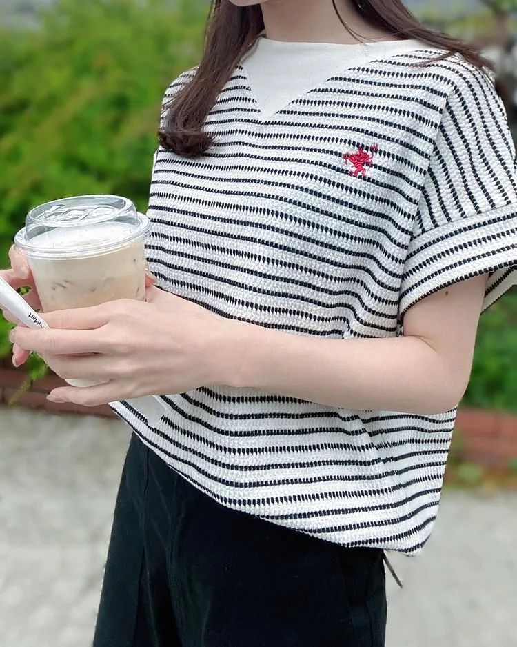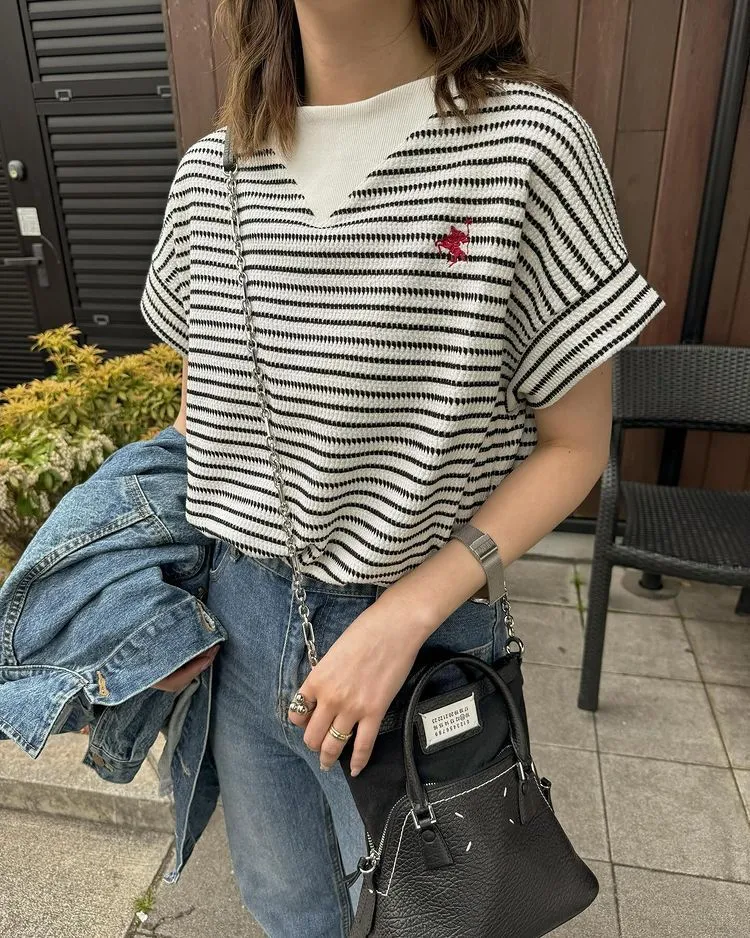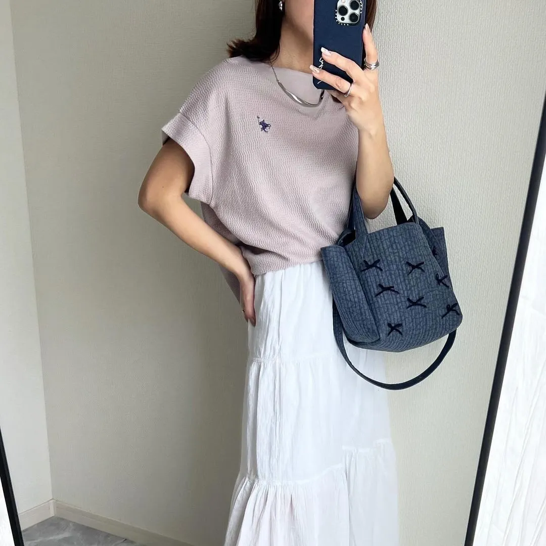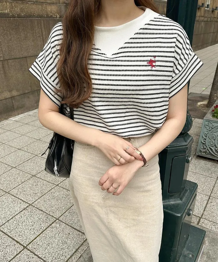 胸前的一點刺繡增添了成熟俐落的感覺。