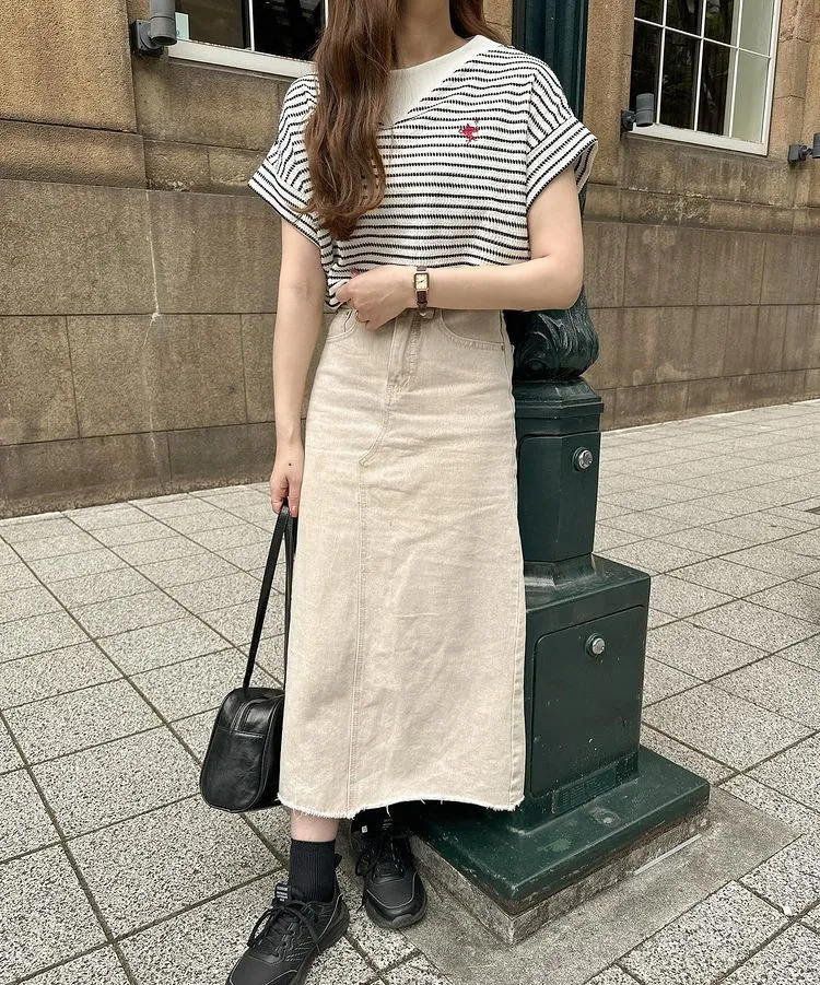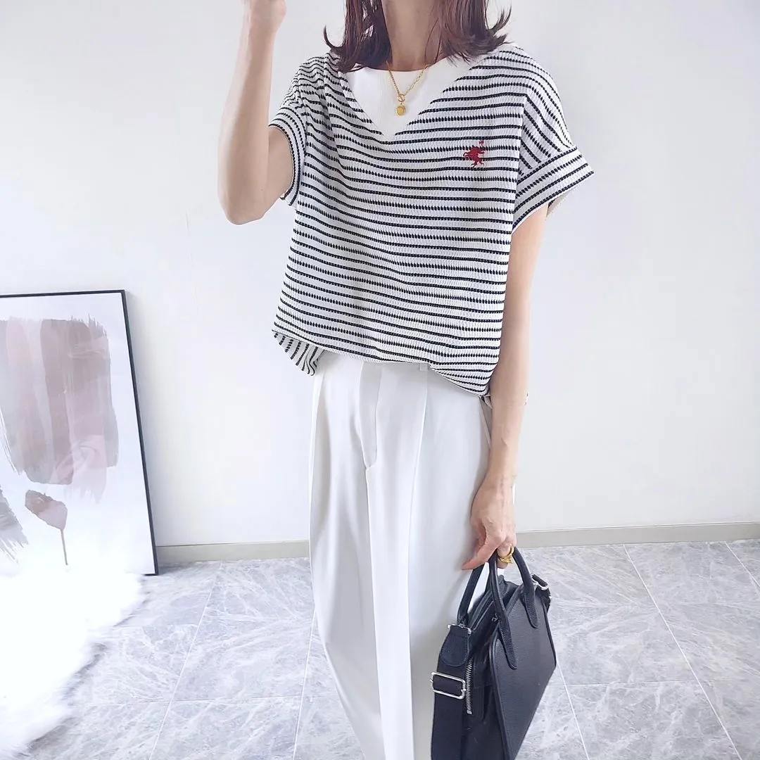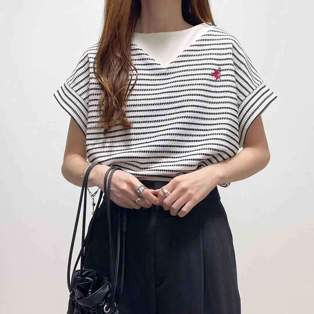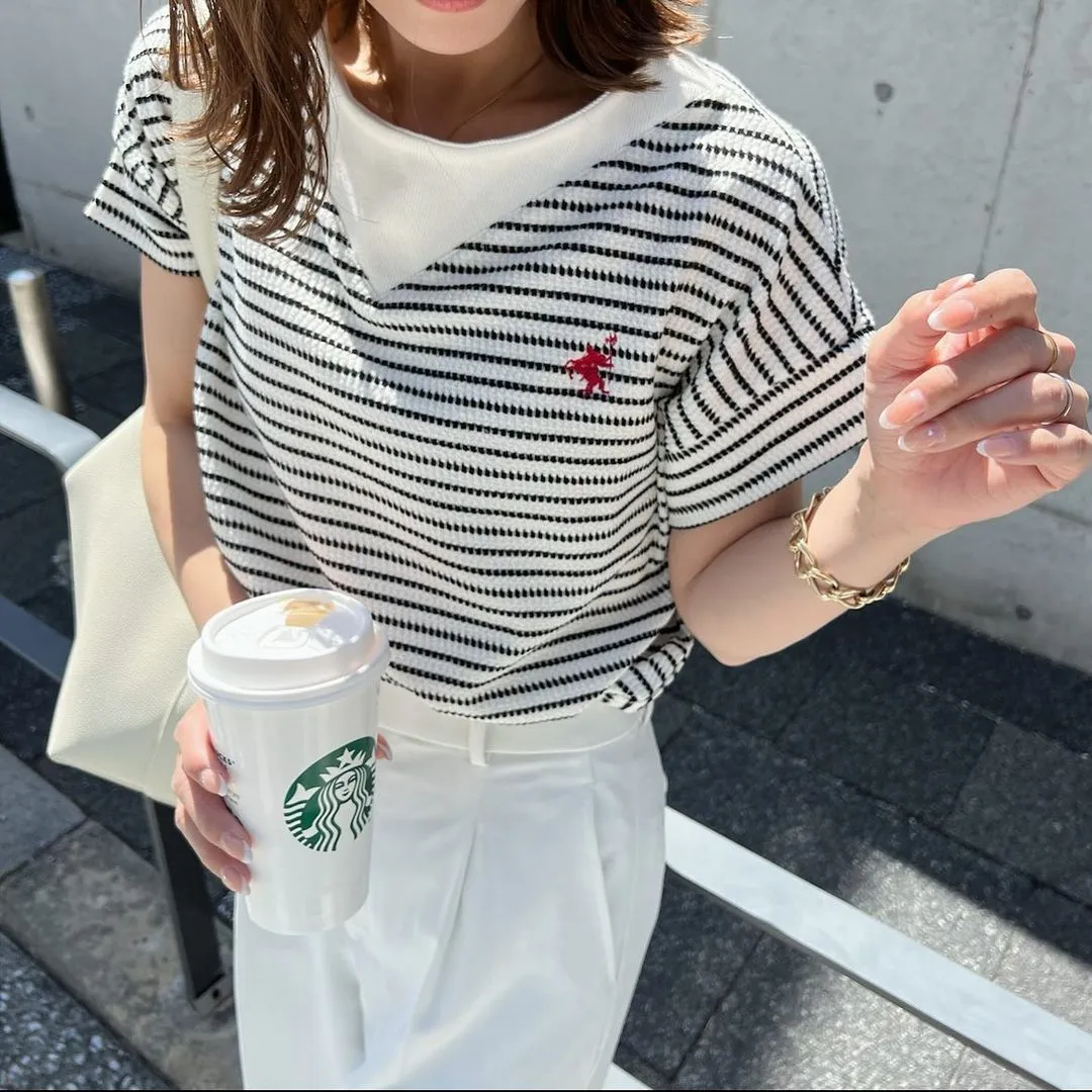 胸前的一點刺繡增添了成熟俐落的感覺。