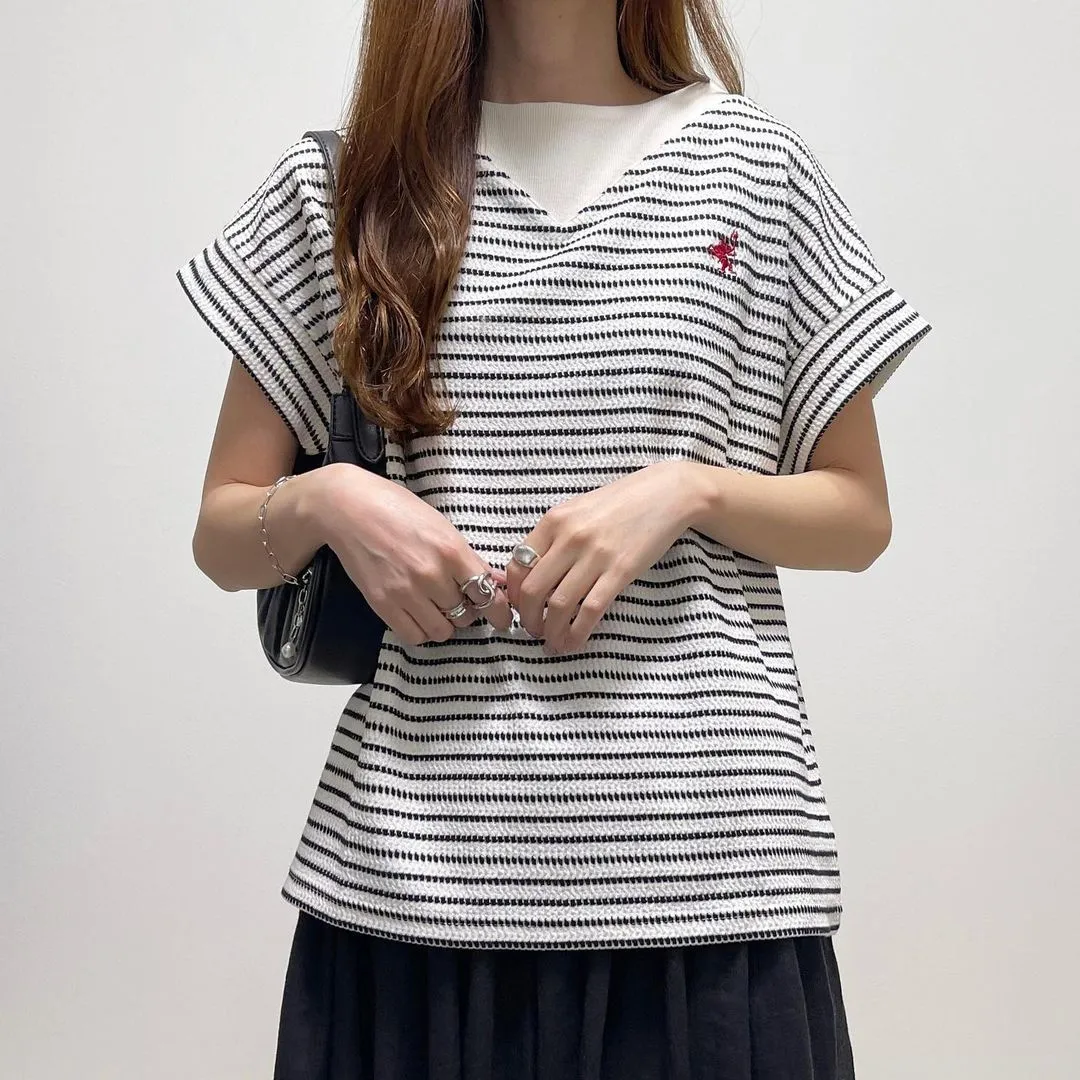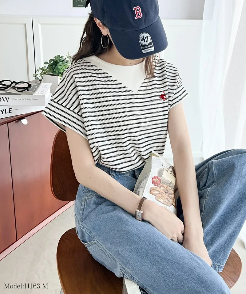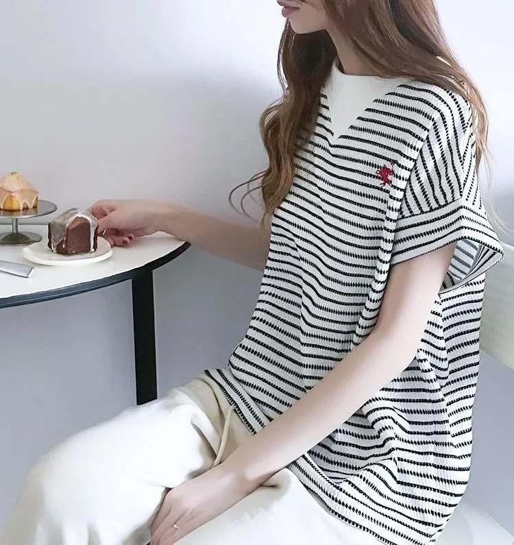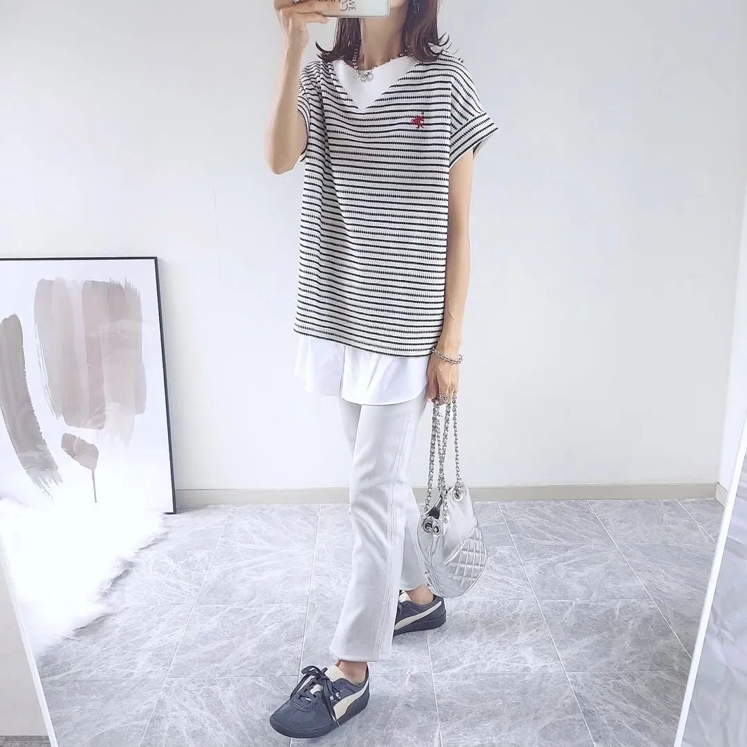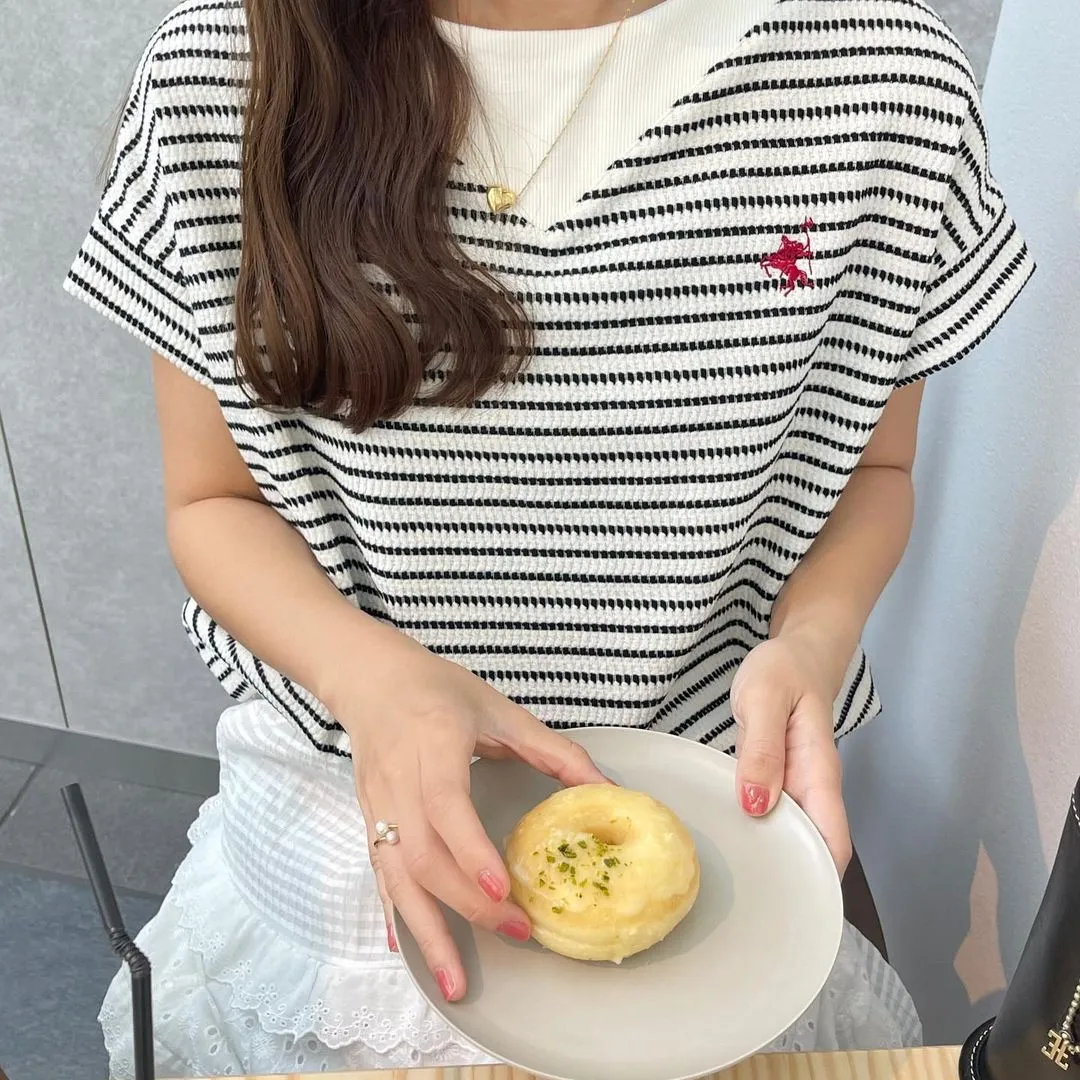 胸前的一點刺繡增添了成熟俐落的感覺。