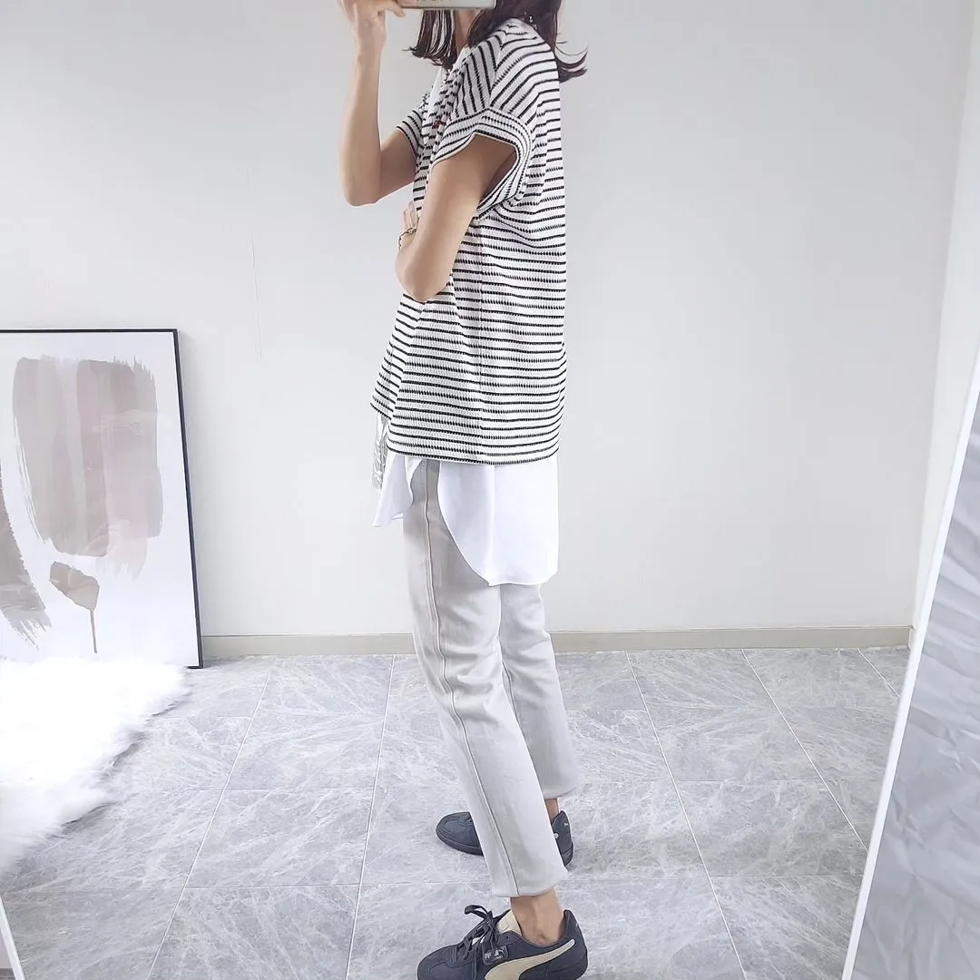 法式袖上衣,用寬鬆的布料裁剪提花材料,