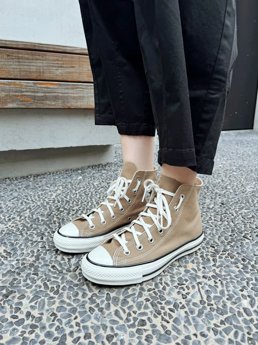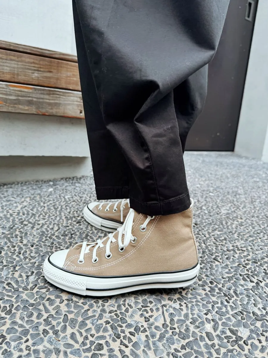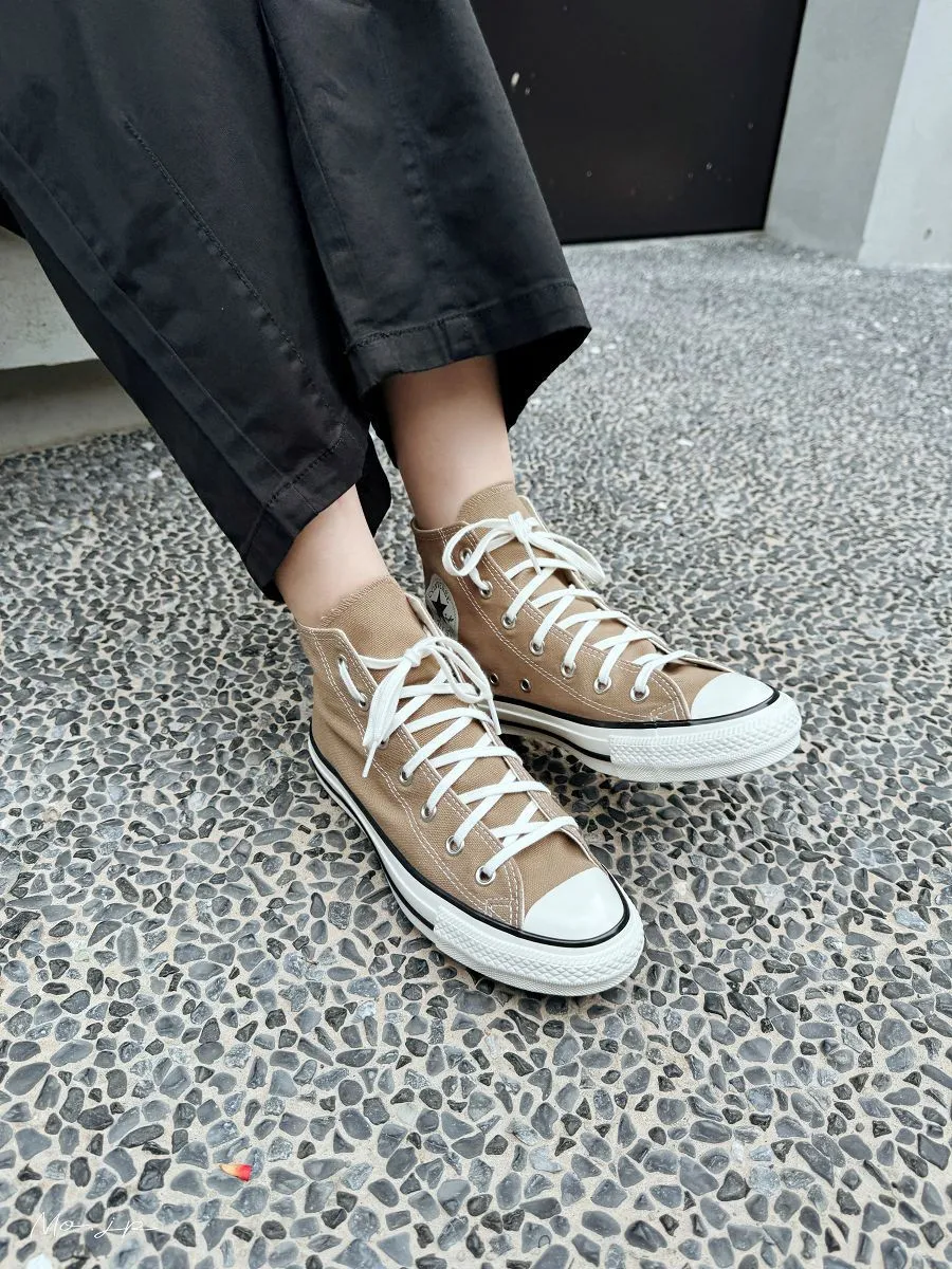 由水洗帆布材料、拋光未漂白橡膠帶和棉質鞋帶製成。
