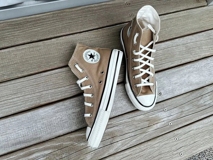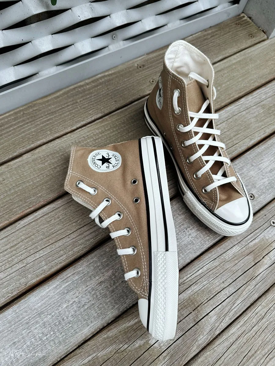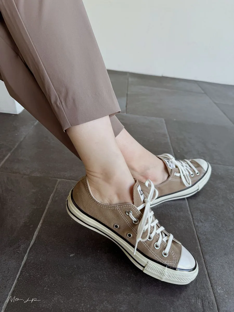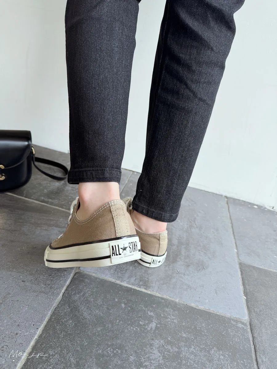 由水洗帆布材料、拋光未漂白橡膠帶和棉質鞋帶製成。