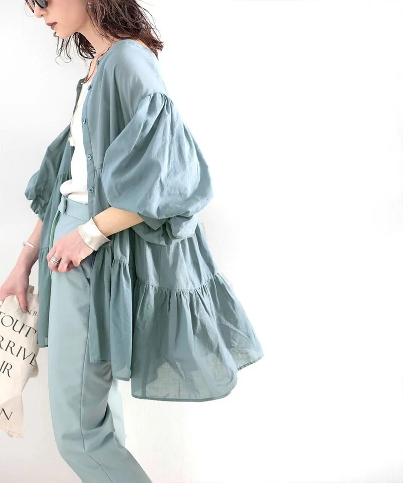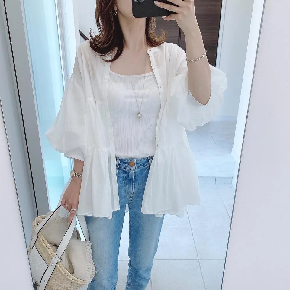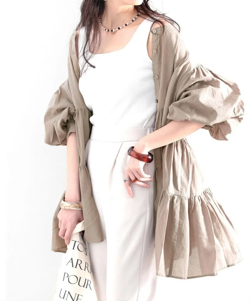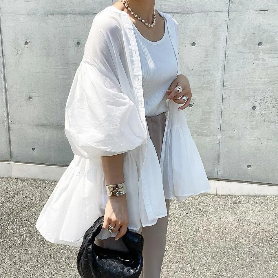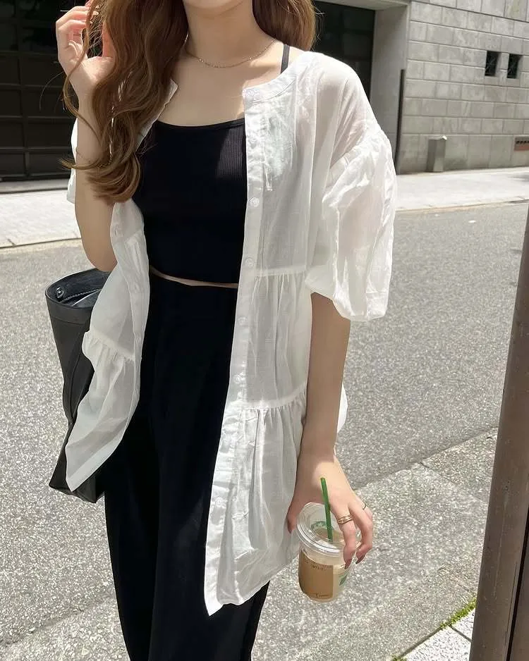 搶先預購價格~超級超級划算小幫記得去年販售好像要1400左右這波先買~等夏天穿唯美3WAY專櫃下折扣單品喔可以當襯衫~釦釦前~釦釦後~當外套面料是純棉舒適的襯衫棉砰袖好可愛墜度也很美4色~分SIZE 新增S