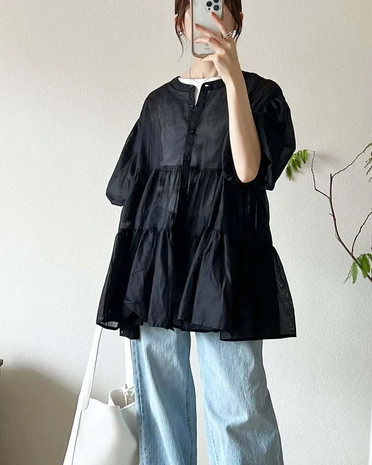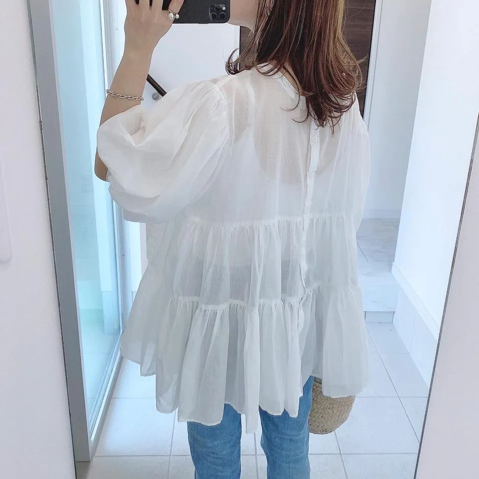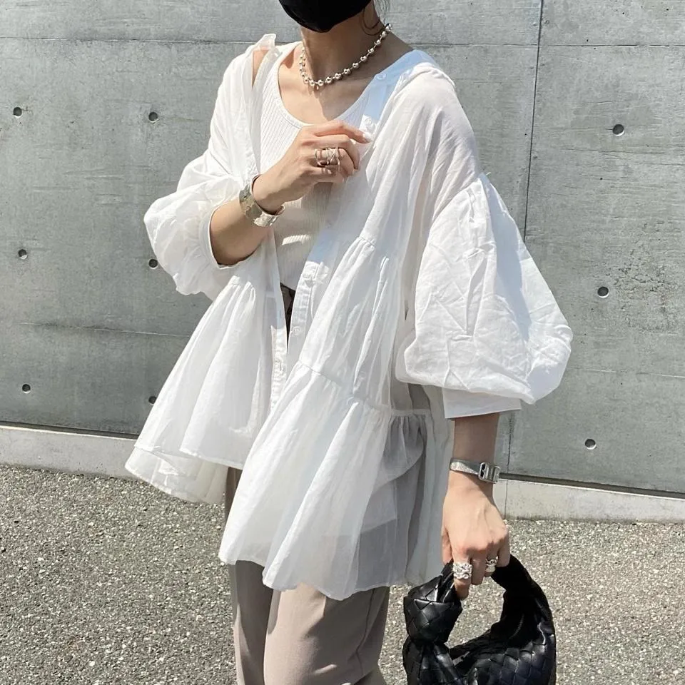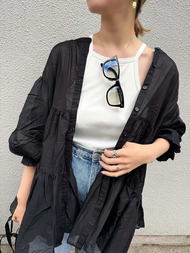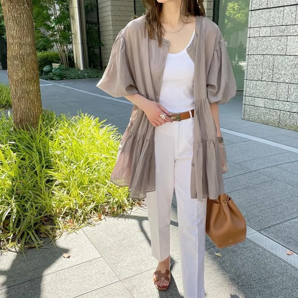 搶先預購價格~超級超級划算小幫記得去年販售好像要1400左右這波先買~等夏天穿唯美3WAY專櫃下折扣單品喔可以當襯衫~釦釦前~釦釦後~當外套面料是純棉舒適的襯衫棉砰袖好可愛墜度也很美4色~分SIZE 新增S
