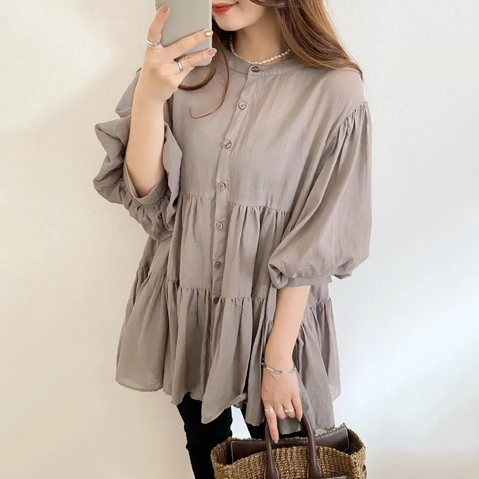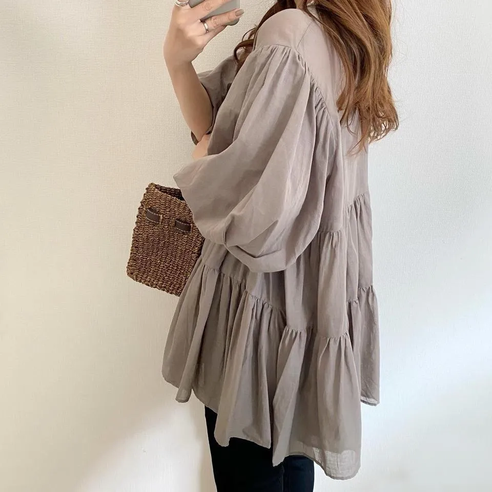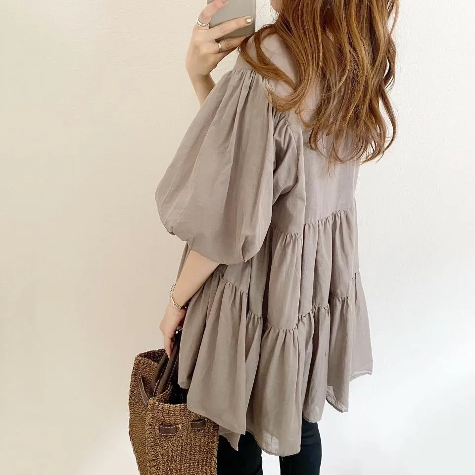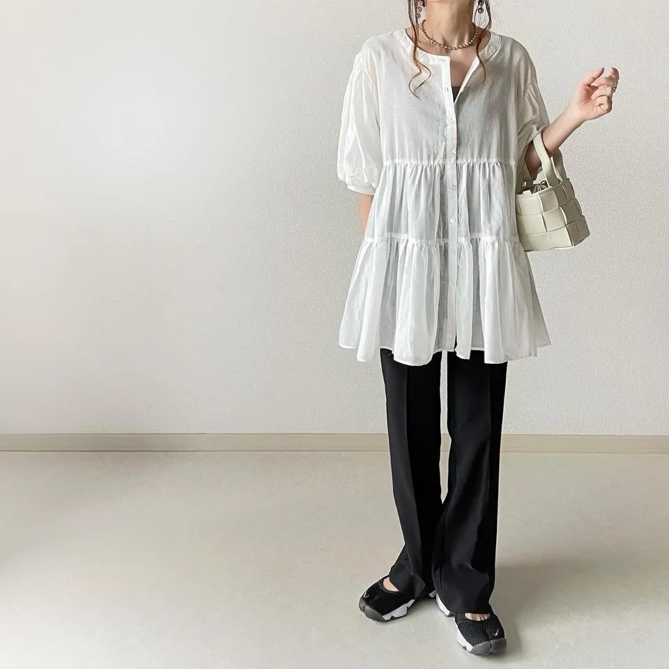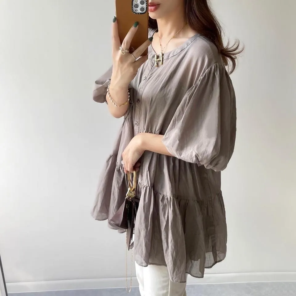 搶先預購價格~超級超級划算小幫記得去年販售好像要1400左右這波先買~等夏天穿唯美3WAY專櫃下折扣單品喔可以當襯衫~釦釦前~釦釦後~當外套面料是純棉舒適的襯衫棉砰袖好可愛墜度也很美4色~分SIZE 新增S