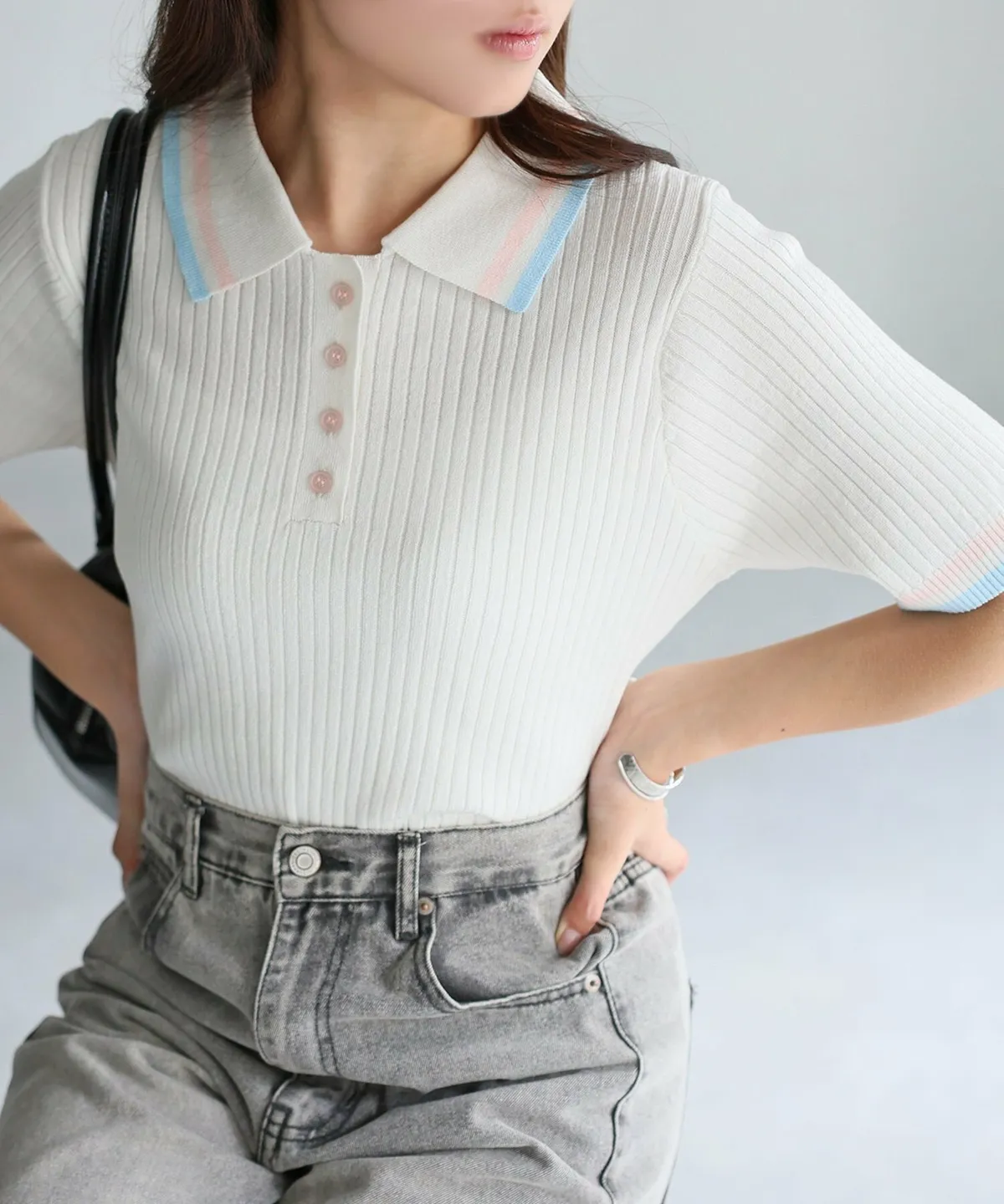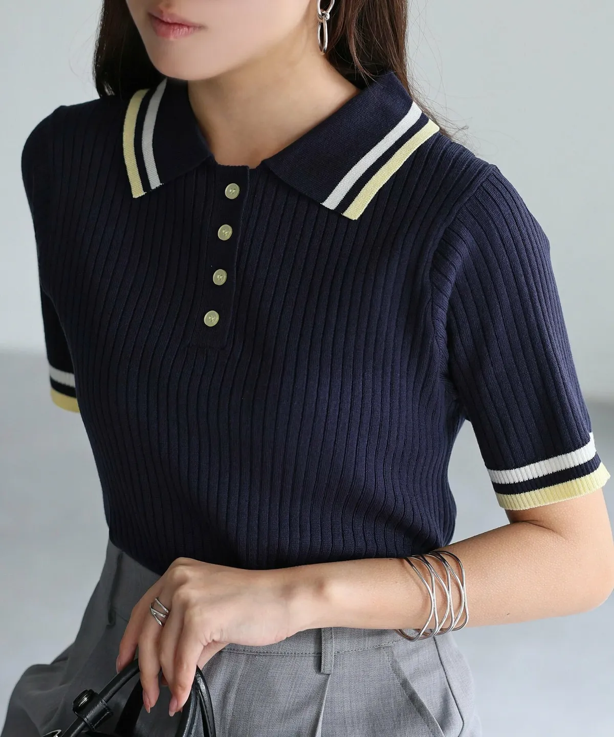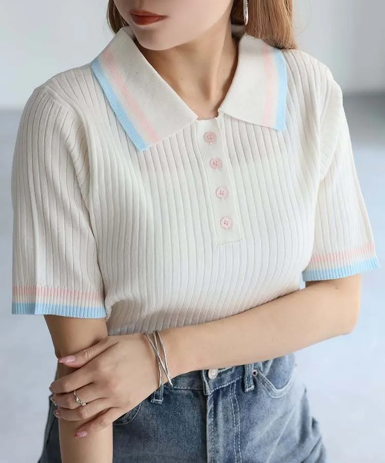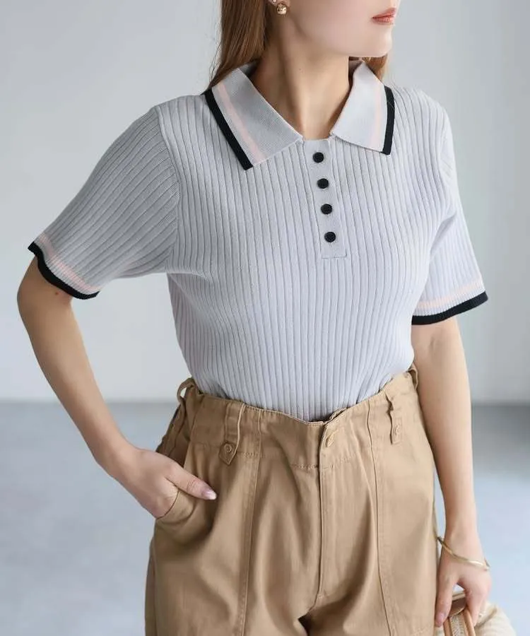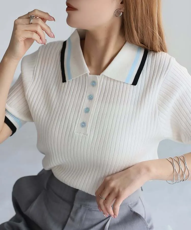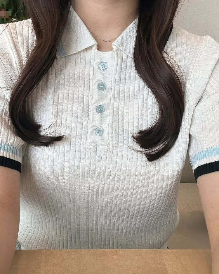 專櫃火紅款喔!!小幫到手~手感貞的很棒喔!!整件面料彈性非常好搭配立體的壓紋+小釦釦~很精緻~領口跟袖口的配色滾邊搭配的很好~很可愛喔長度49~不會過短也不會過長如果搭配寬褲或單寧~這件很剛好~比例搭起來很棒面料整件彈性也很棒搭配裙款會更優雅一點點喔淺色也不會過透喔~搭配淺色內衣完全沒問題