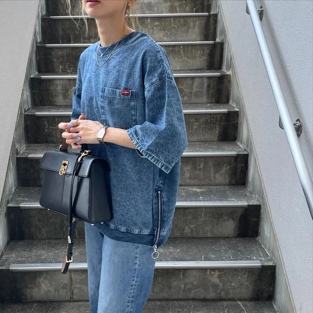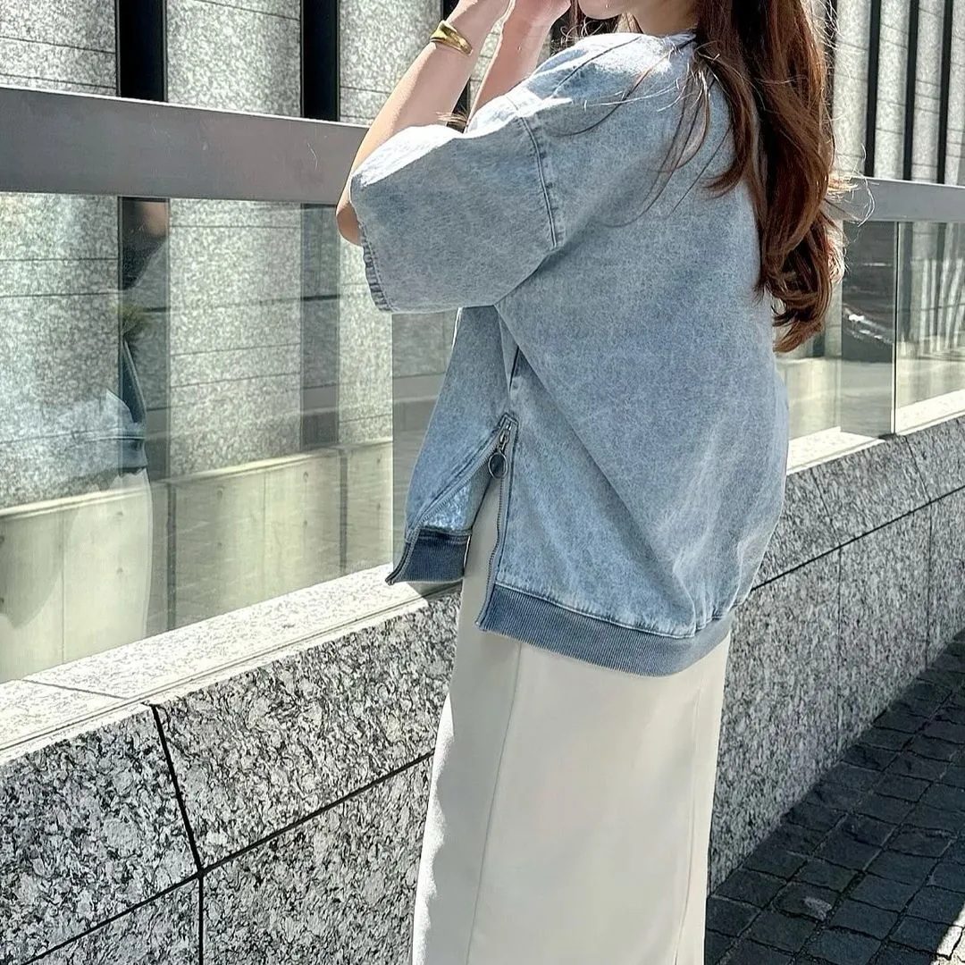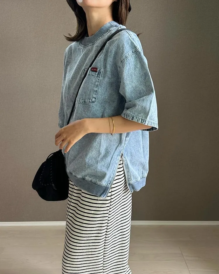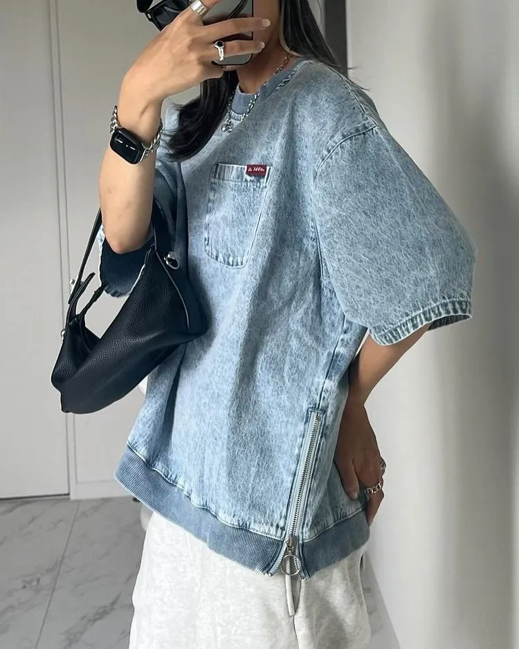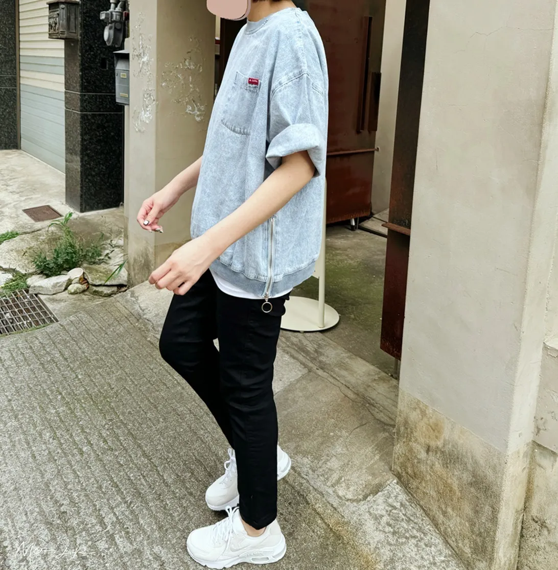 整體的帥氣運動感~但是是單寧面料~好喜歡這個設計耶
