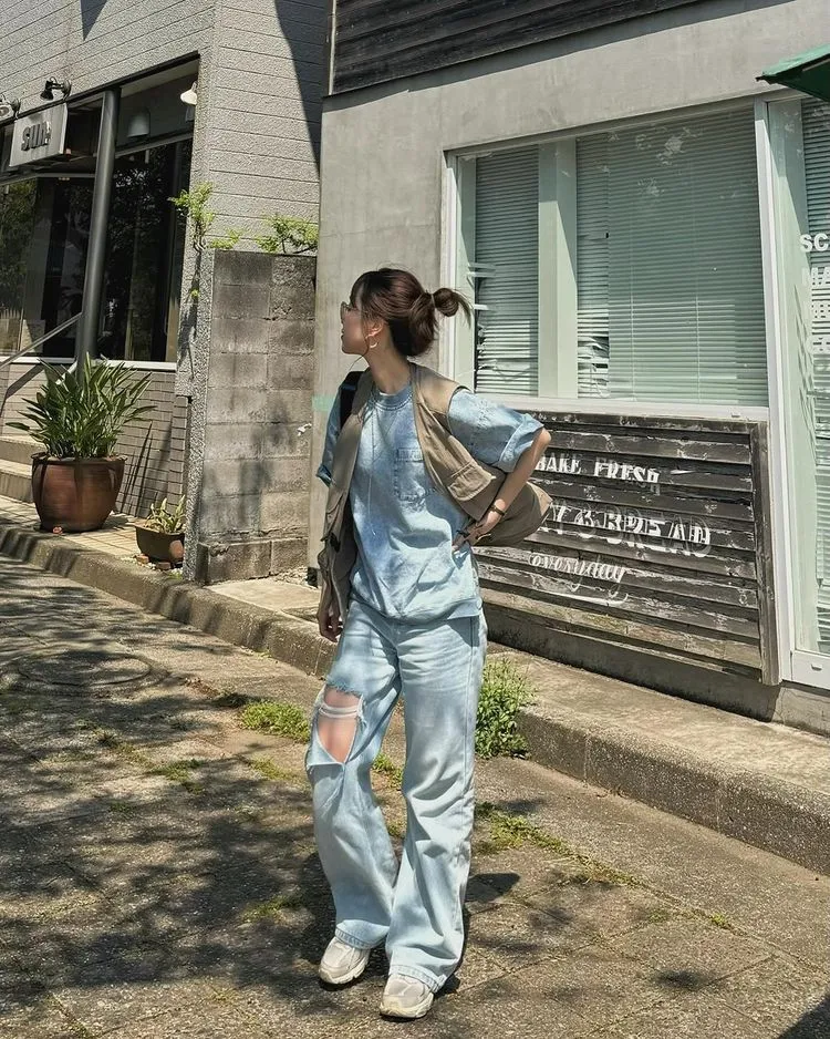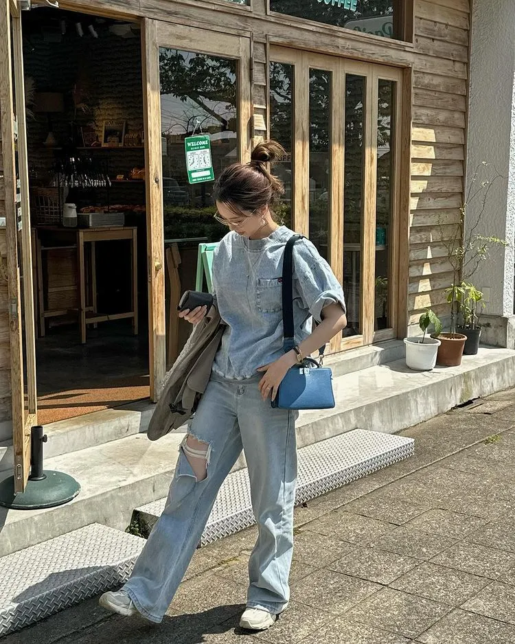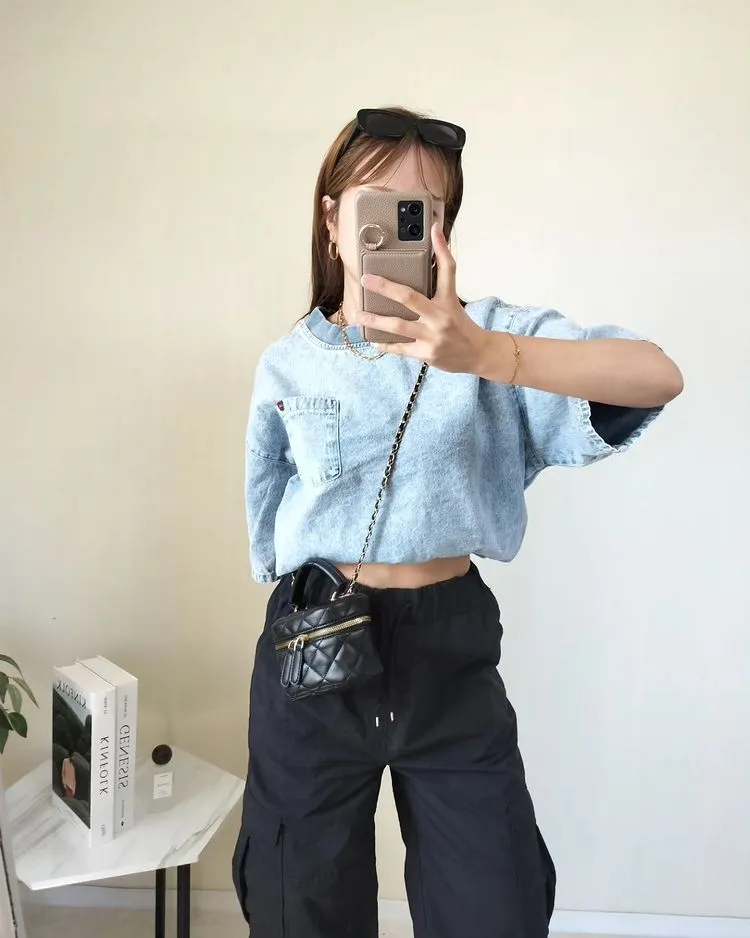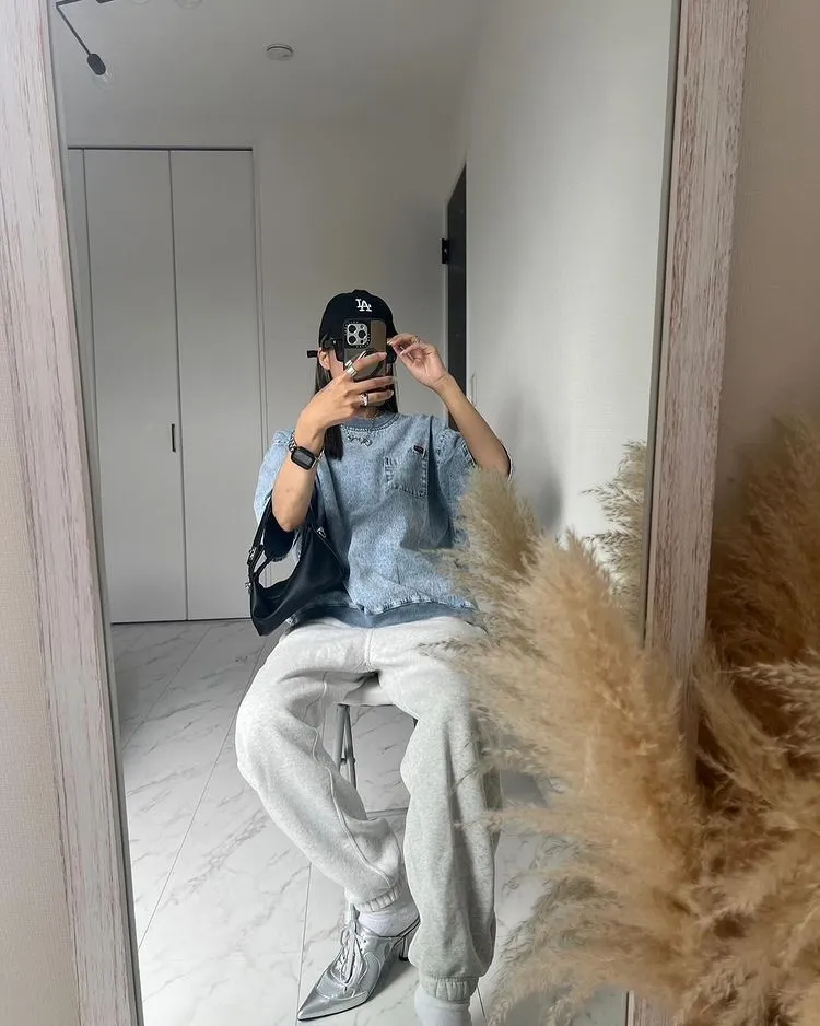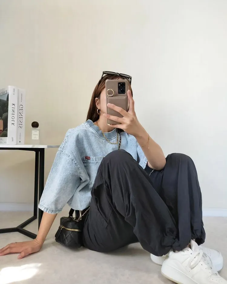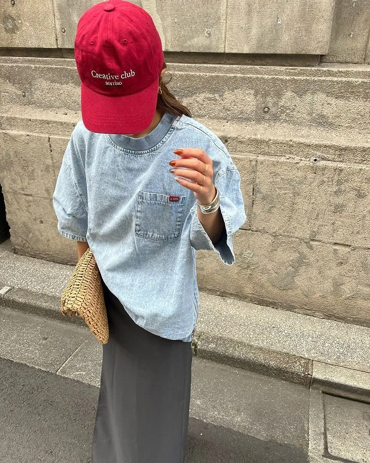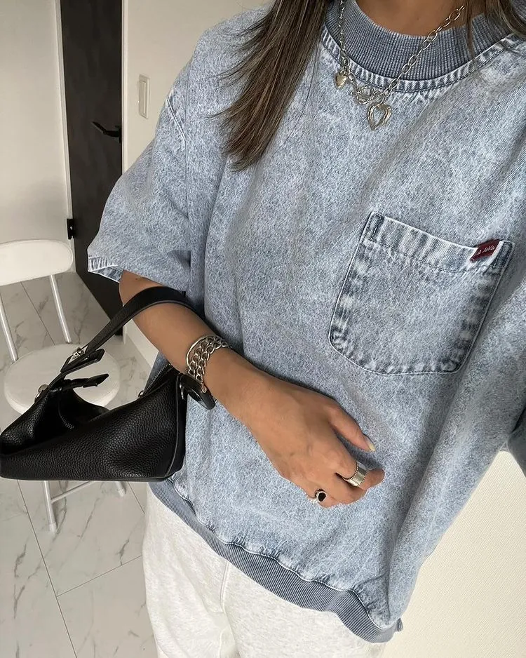 整體的帥氣運動感~但是是單寧面料~好喜歡這個設計耶