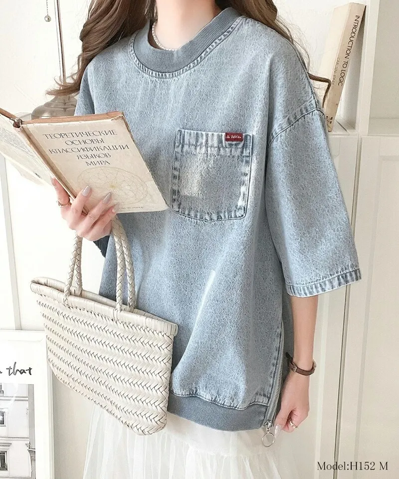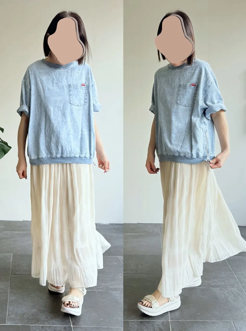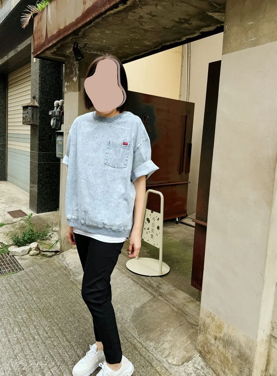 尺寸寬鬆~小幫圖中是穿L~M號也可以穿~L長度更喜歡喔~可以蓋到臀部下緣一點點喔!