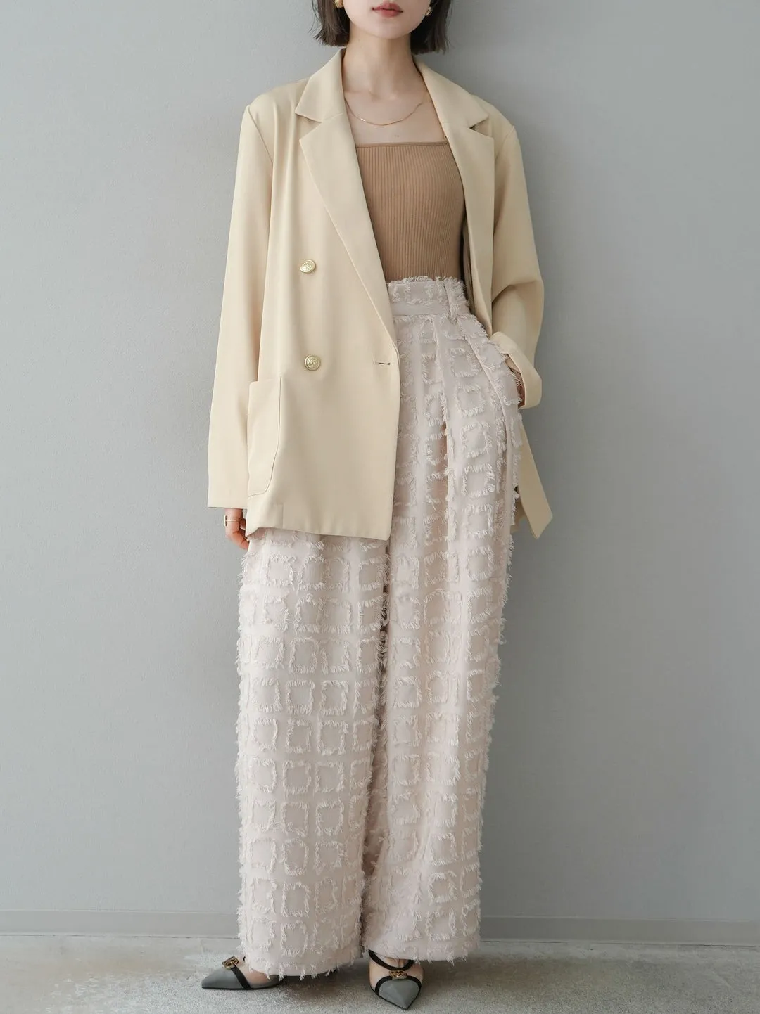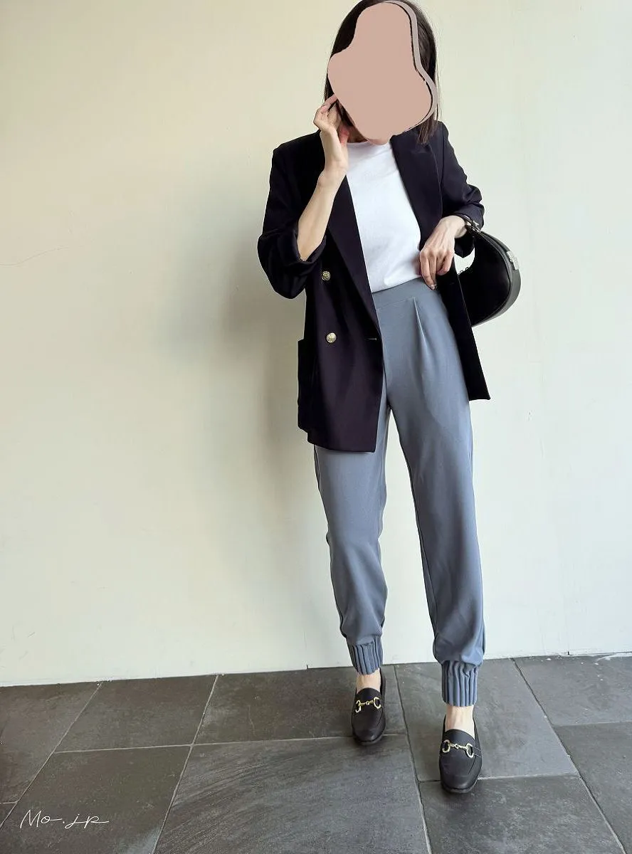 優雅風:內搭米白色背心+西褲,輕鬆打造極簡時尚感。