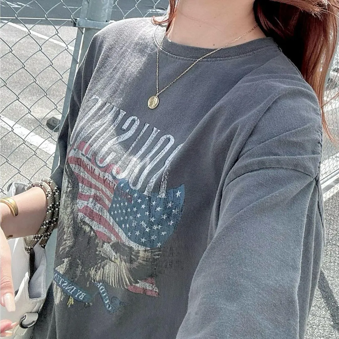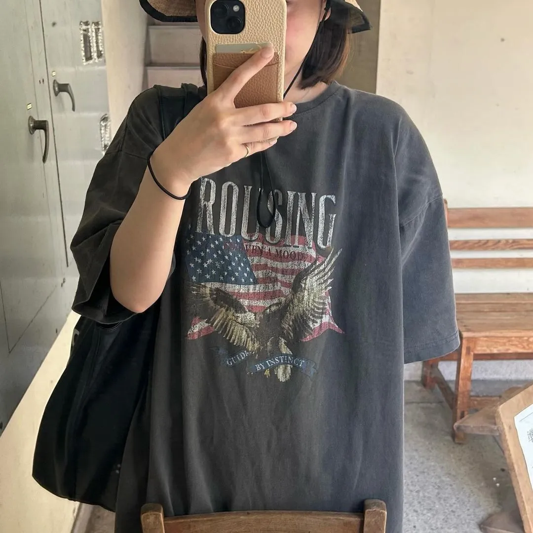 必買必買~再販!春夏款微微復古水洗色調三個圖騰都好好看JAVA聯名款!!顏色都是那種復古色好好看重點3色花色都好喜歡~很難選~小幫就是被日妞燒到~選了老鷹圖騰另外2款也都好看簡約後面圖案的野蠻喜歡的耶!!水洗黑色搭起來非常有個性~<寬鬆版型~一般女孩選S或M就好囉>
