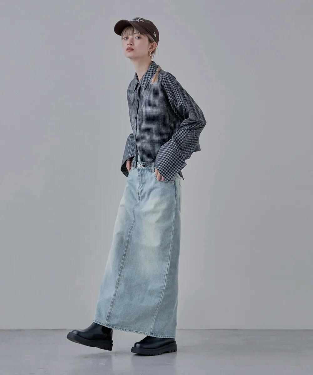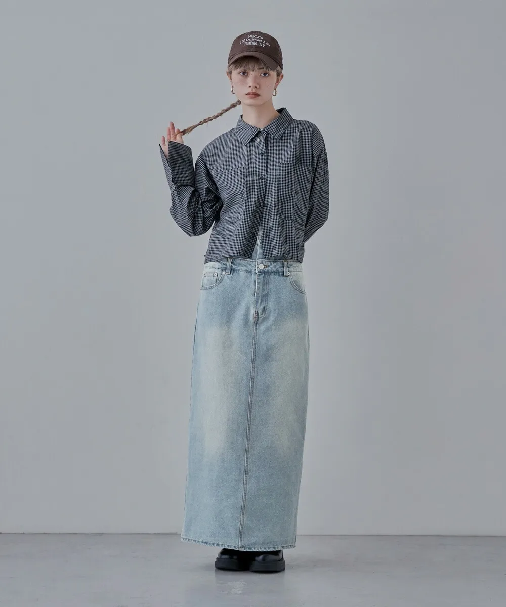 可以整件穿起來高腰款~搭配短版襯衫/TEE