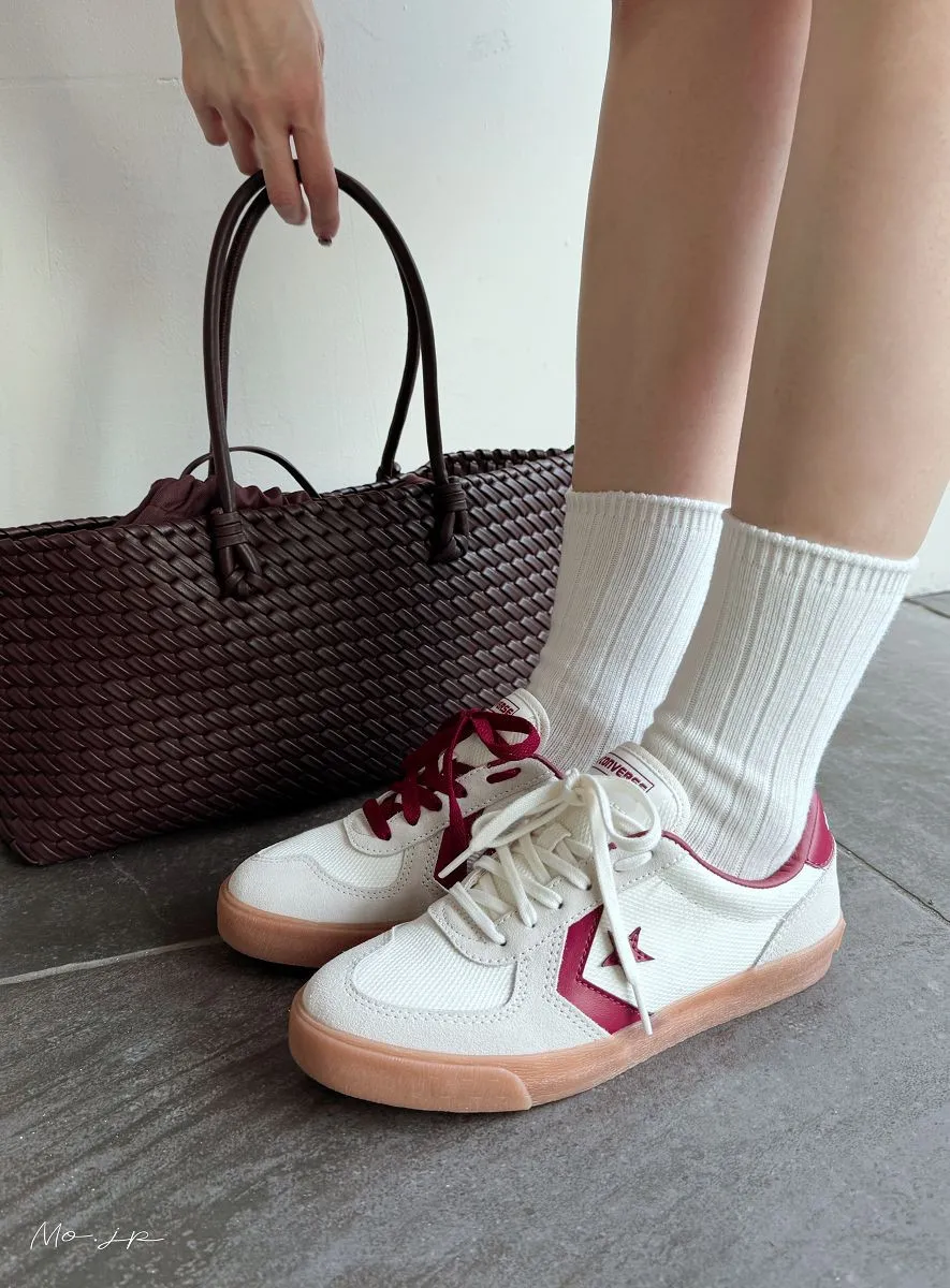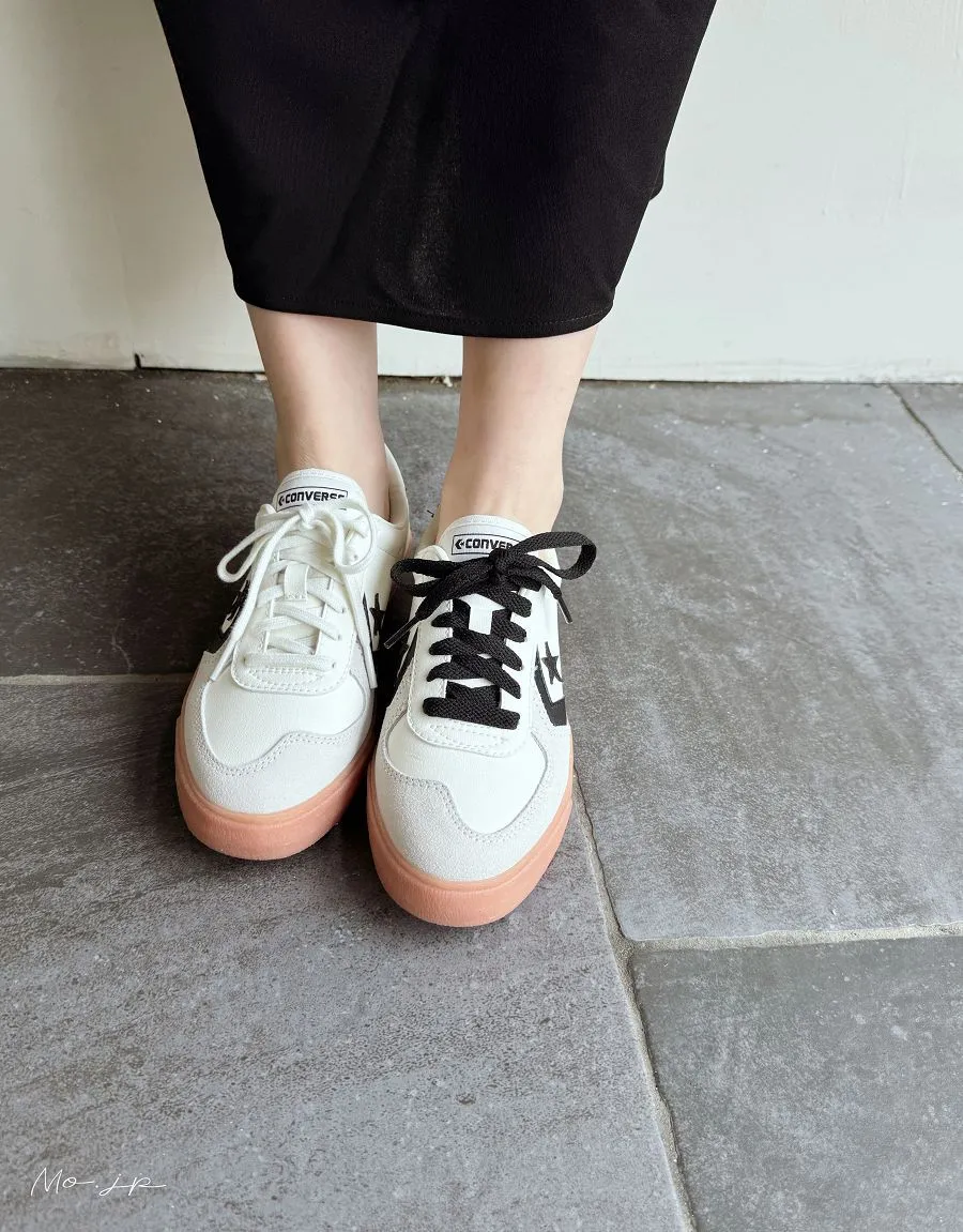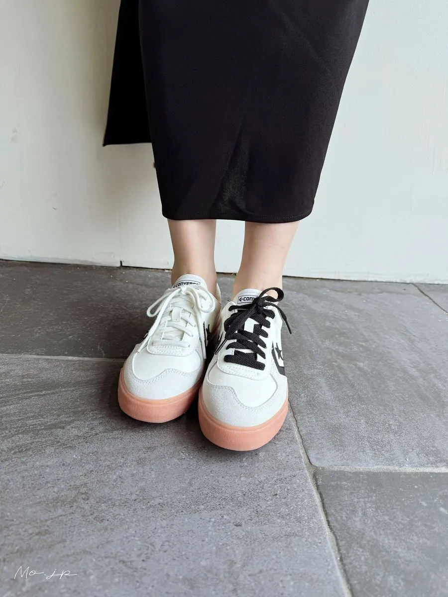 皮革款-皮革拼接麂皮-付黑白雙色鞋帶
