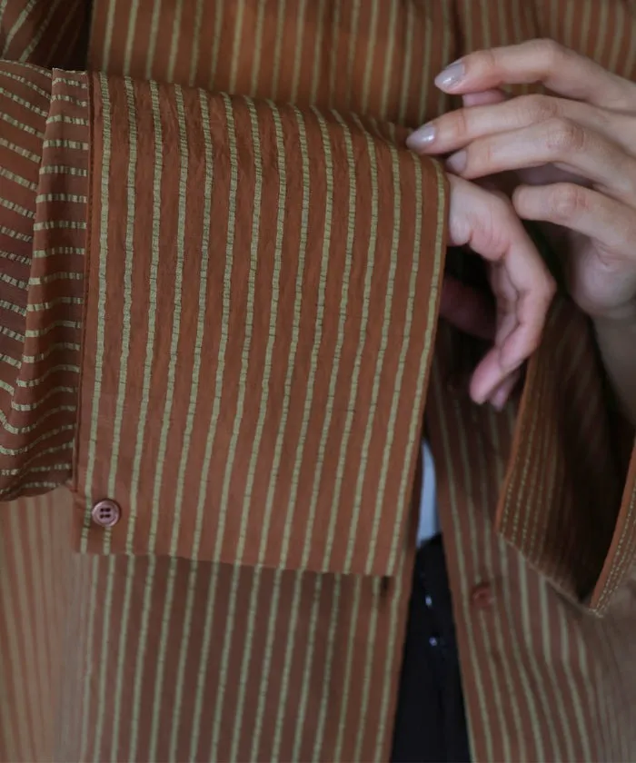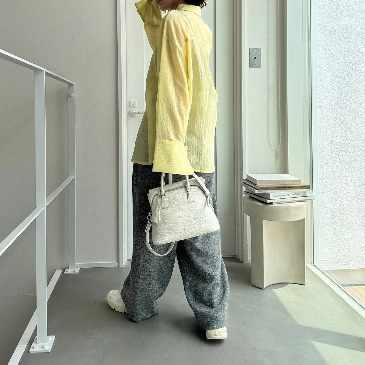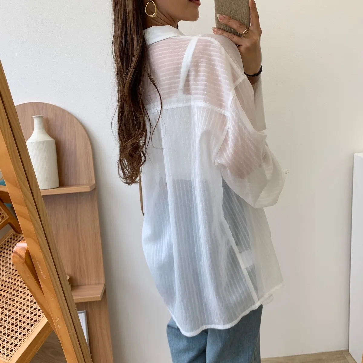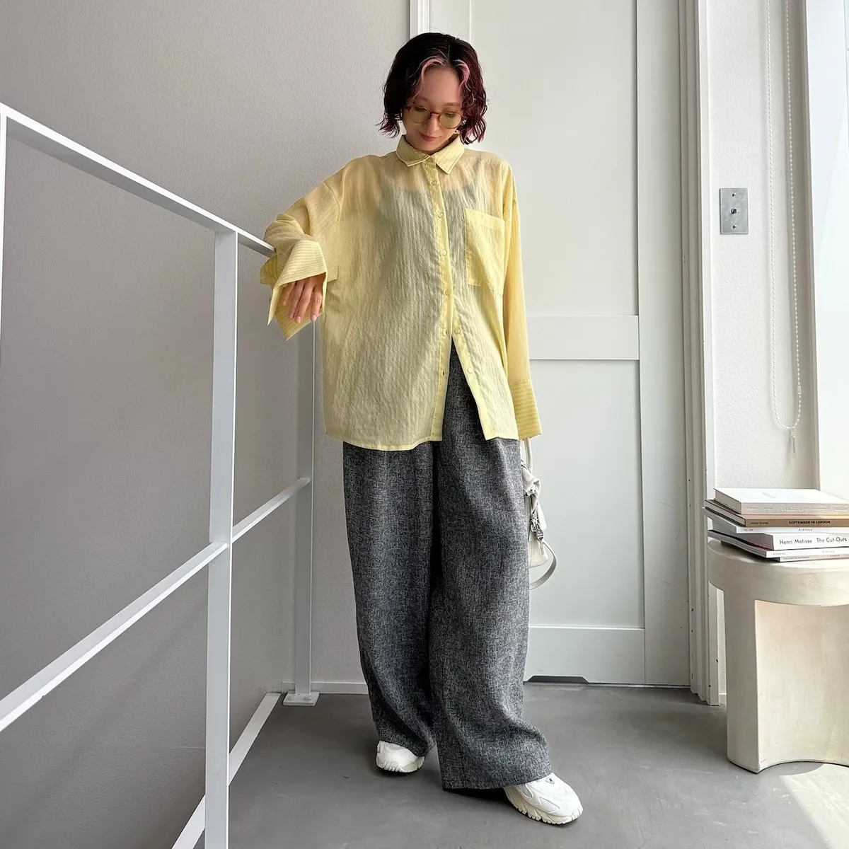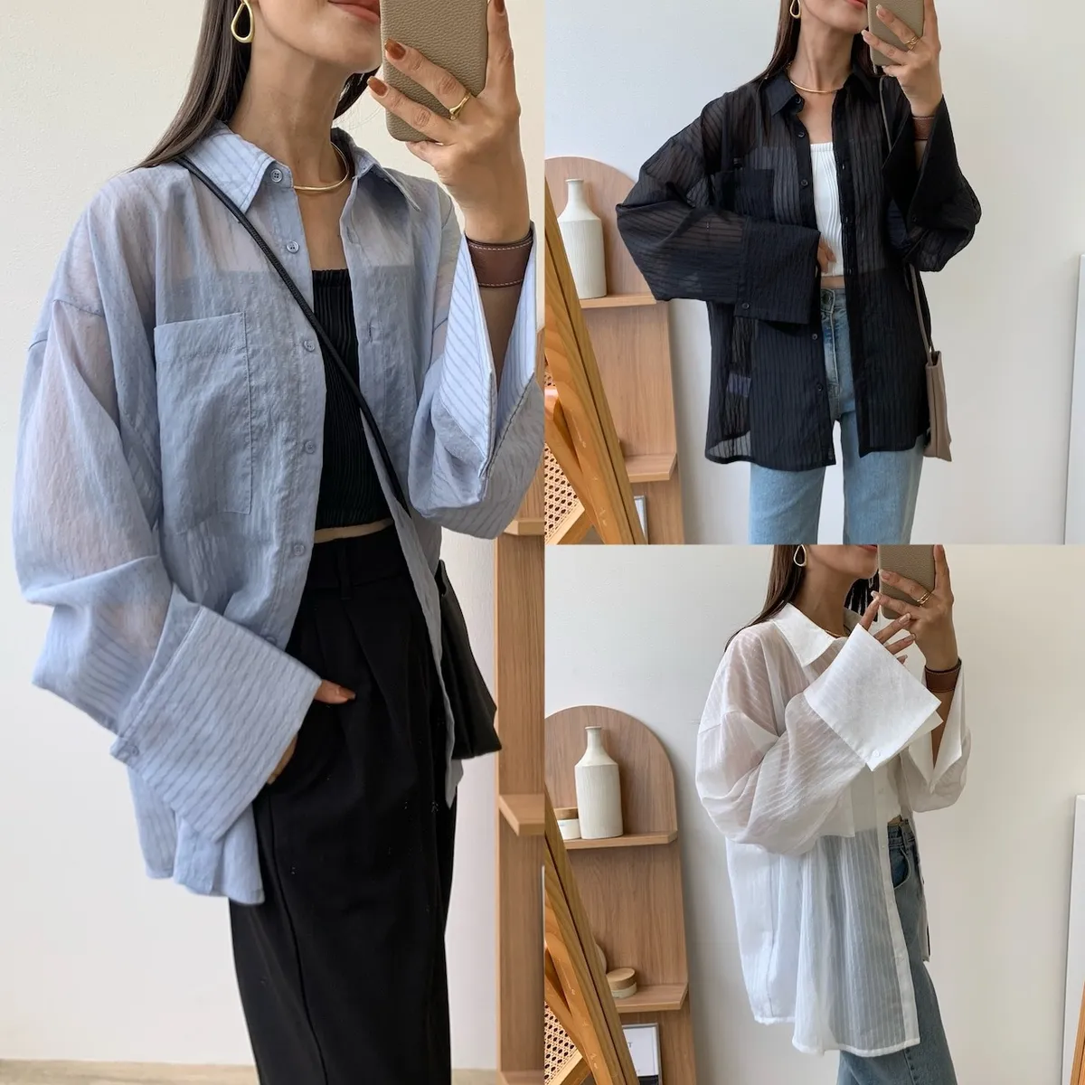 面料後度剛剛好~沒有那種硬挺感~有挺度但舒適休閒+透感~更柔美一點點