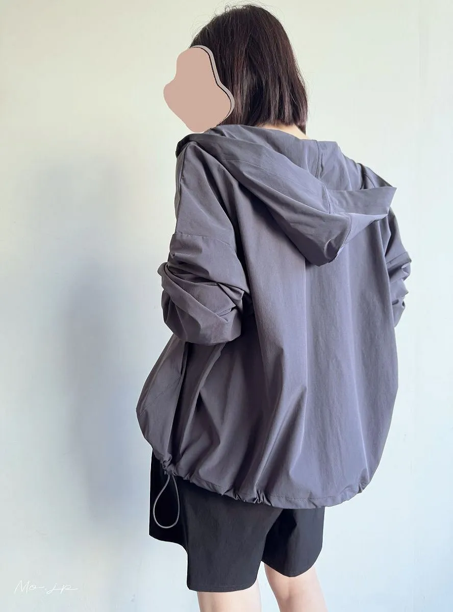● 連帽抽繩設計,即使在刮風的日子也能安心穿著♪