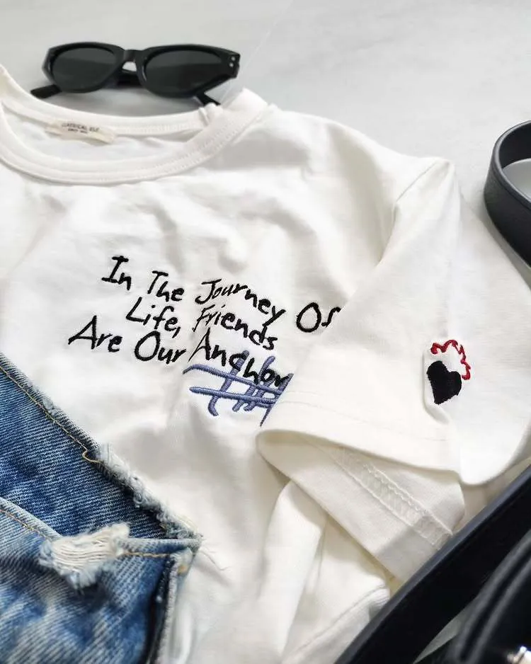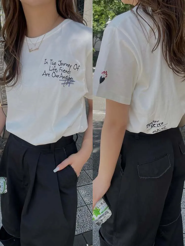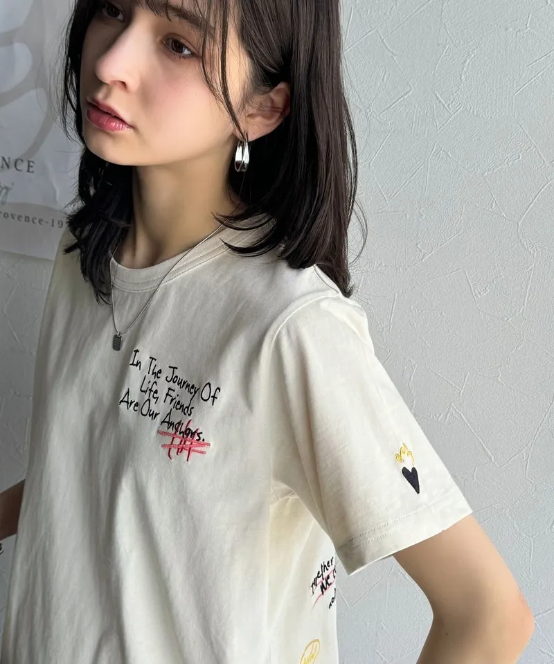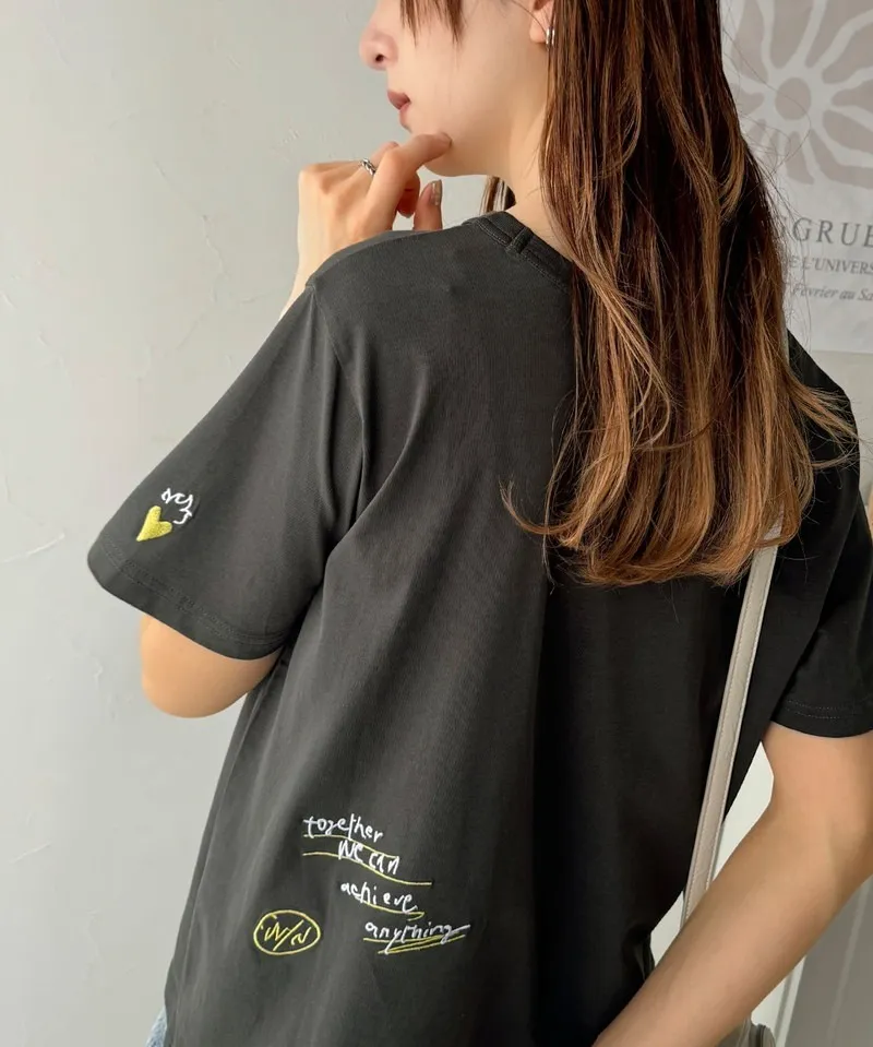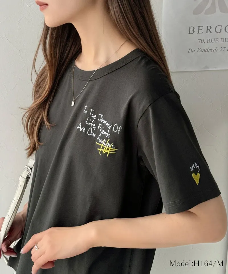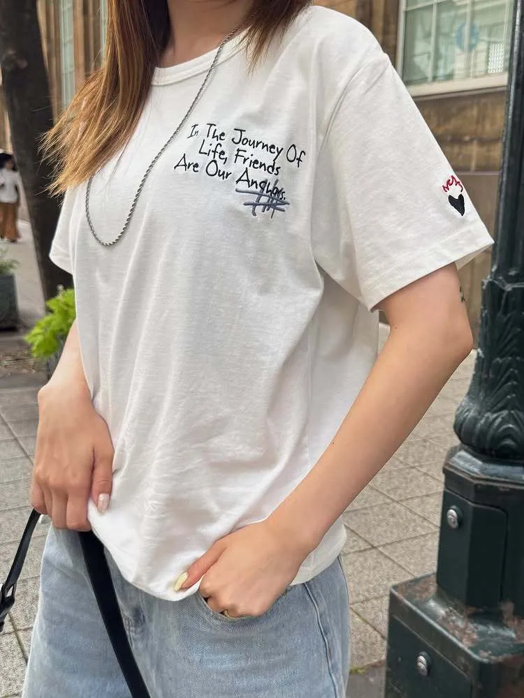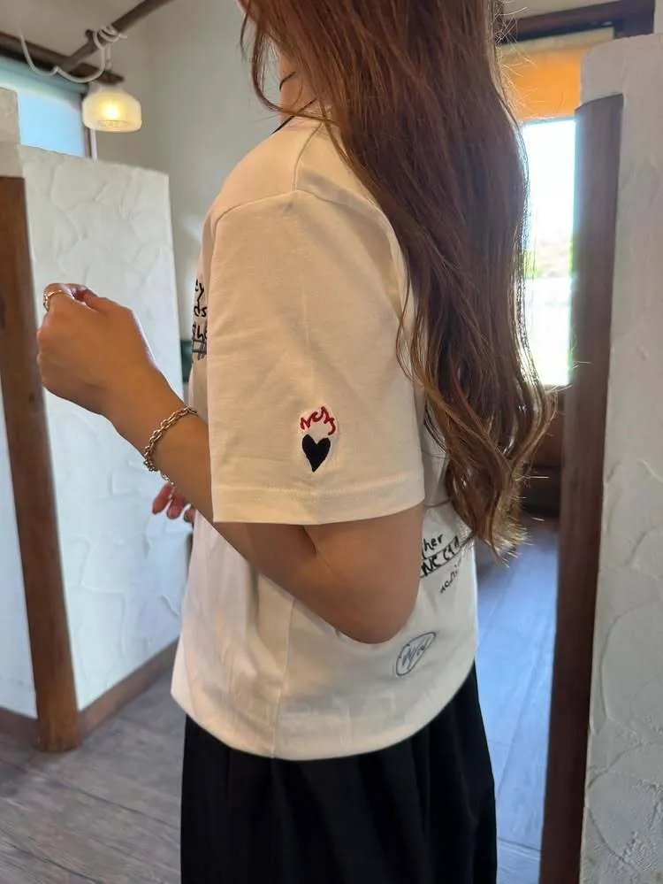 先推薦好可愛的草寫字母愛心刺繡休閒TEE