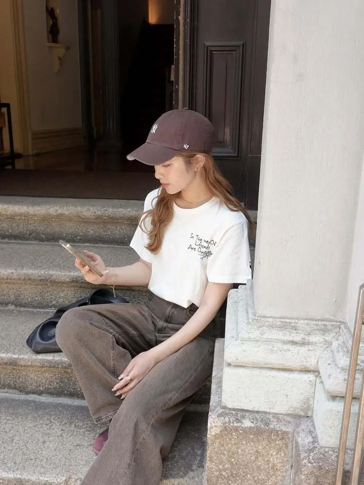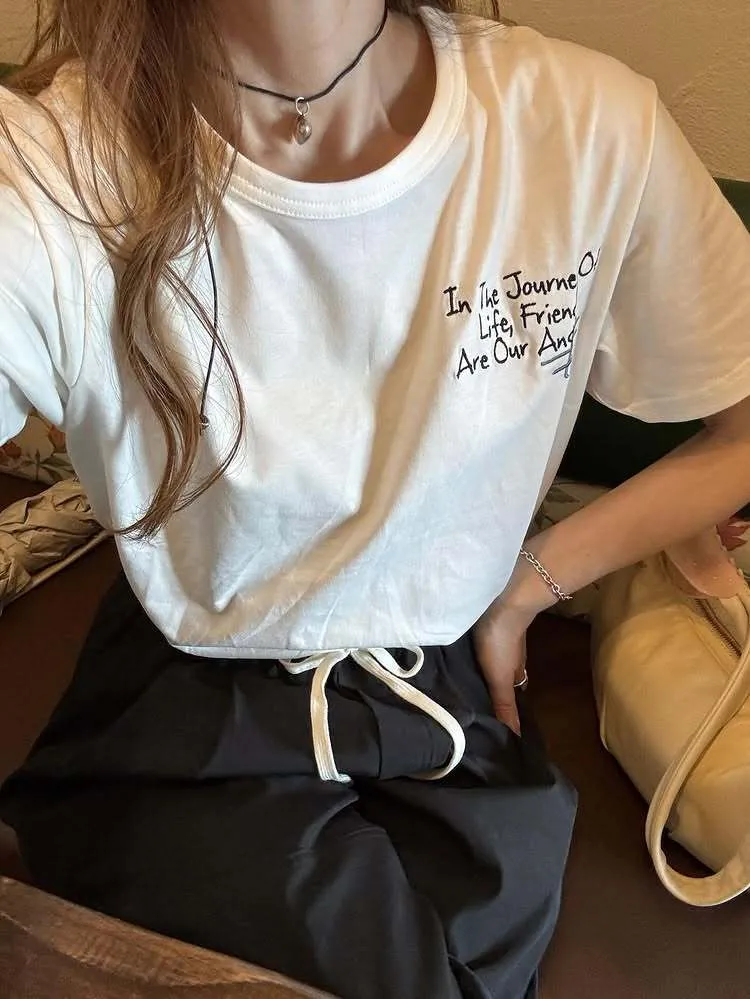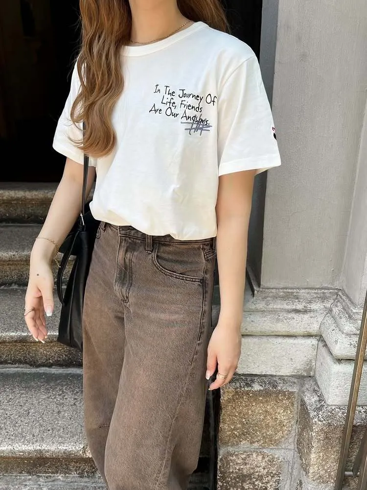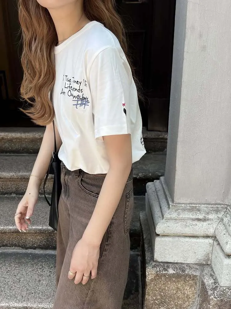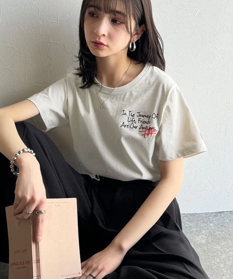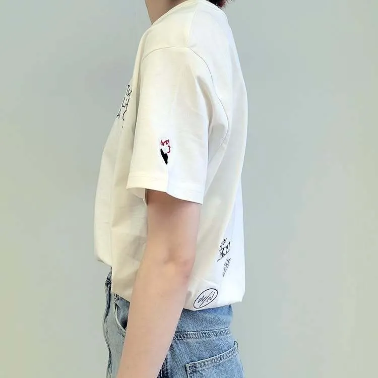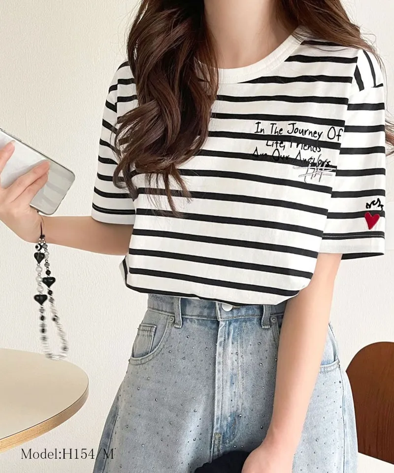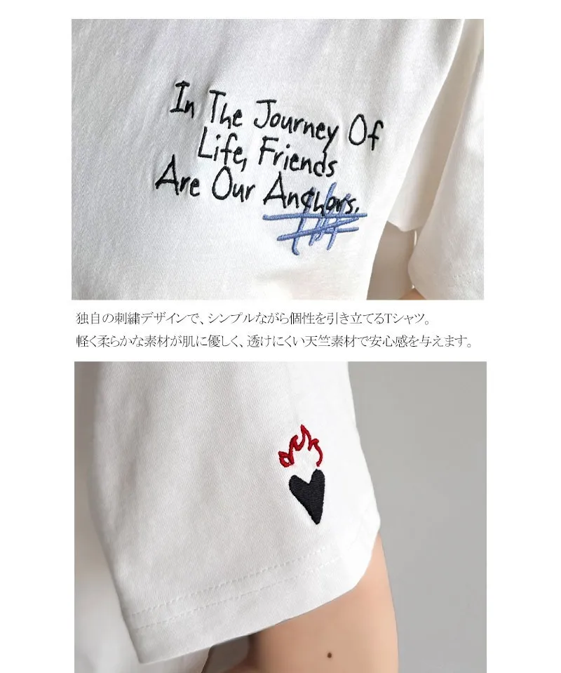 先推薦好可愛的草寫字母愛心刺繡休閒TEE
