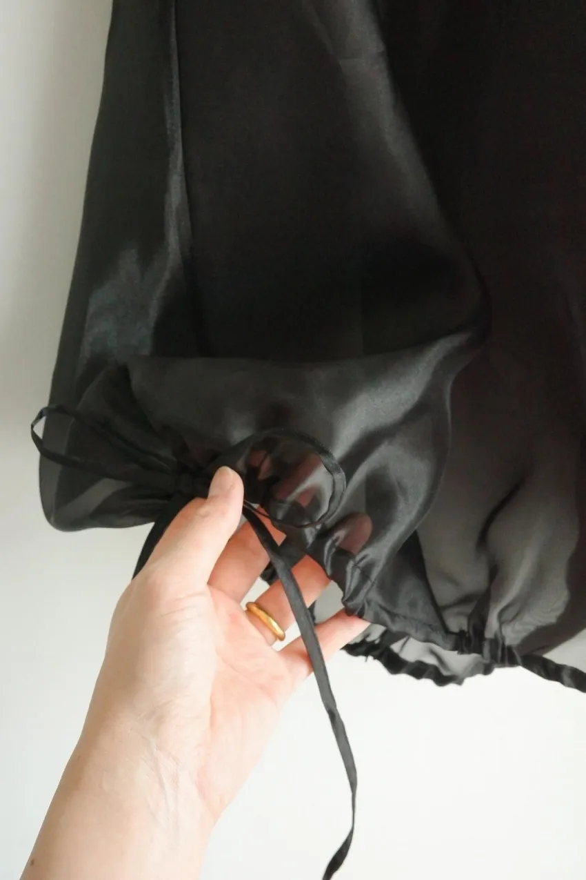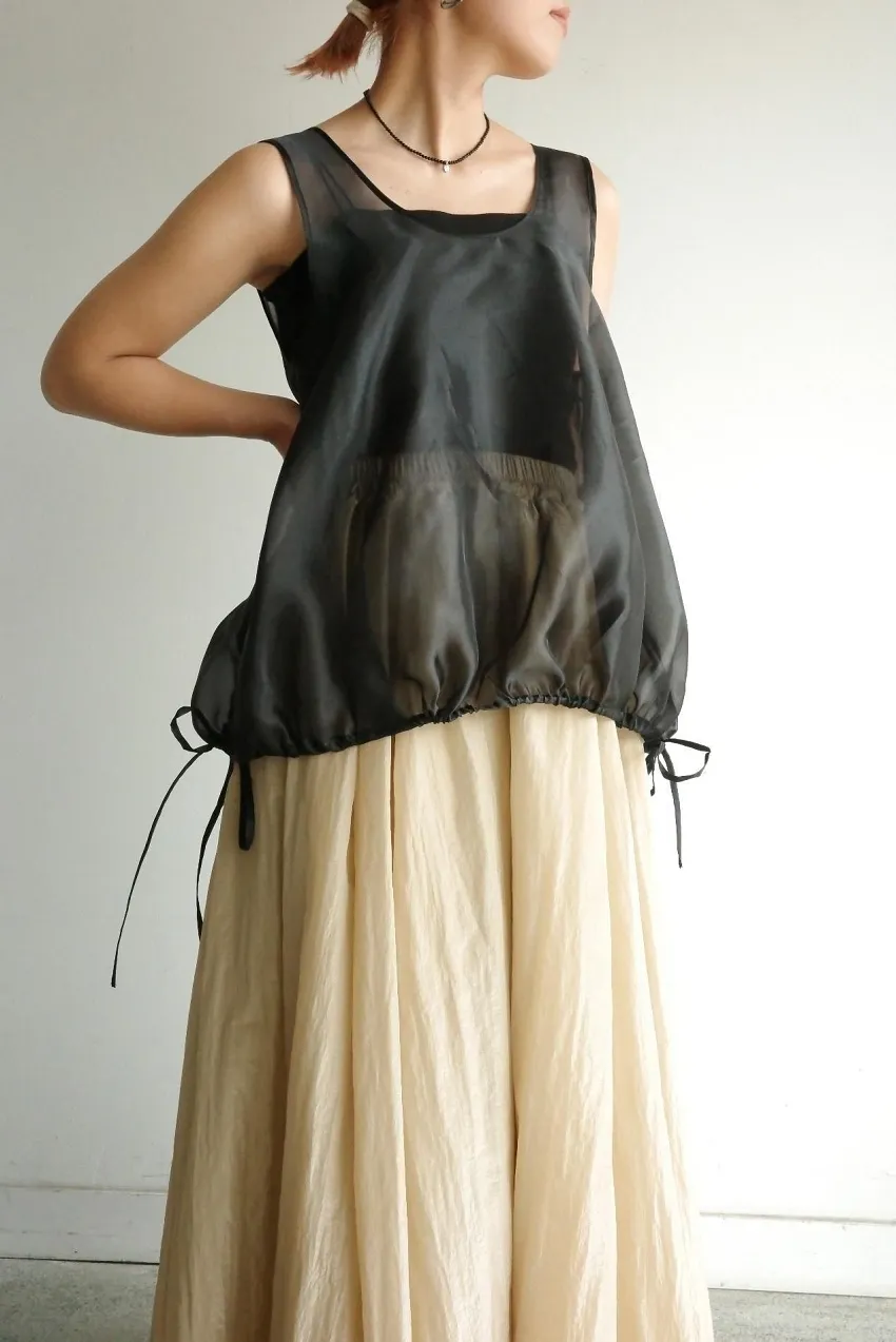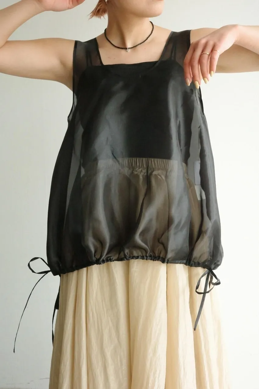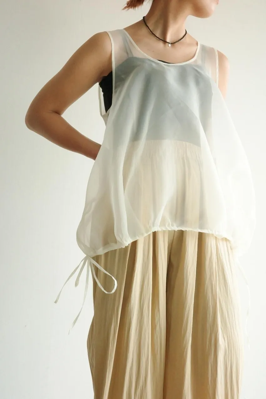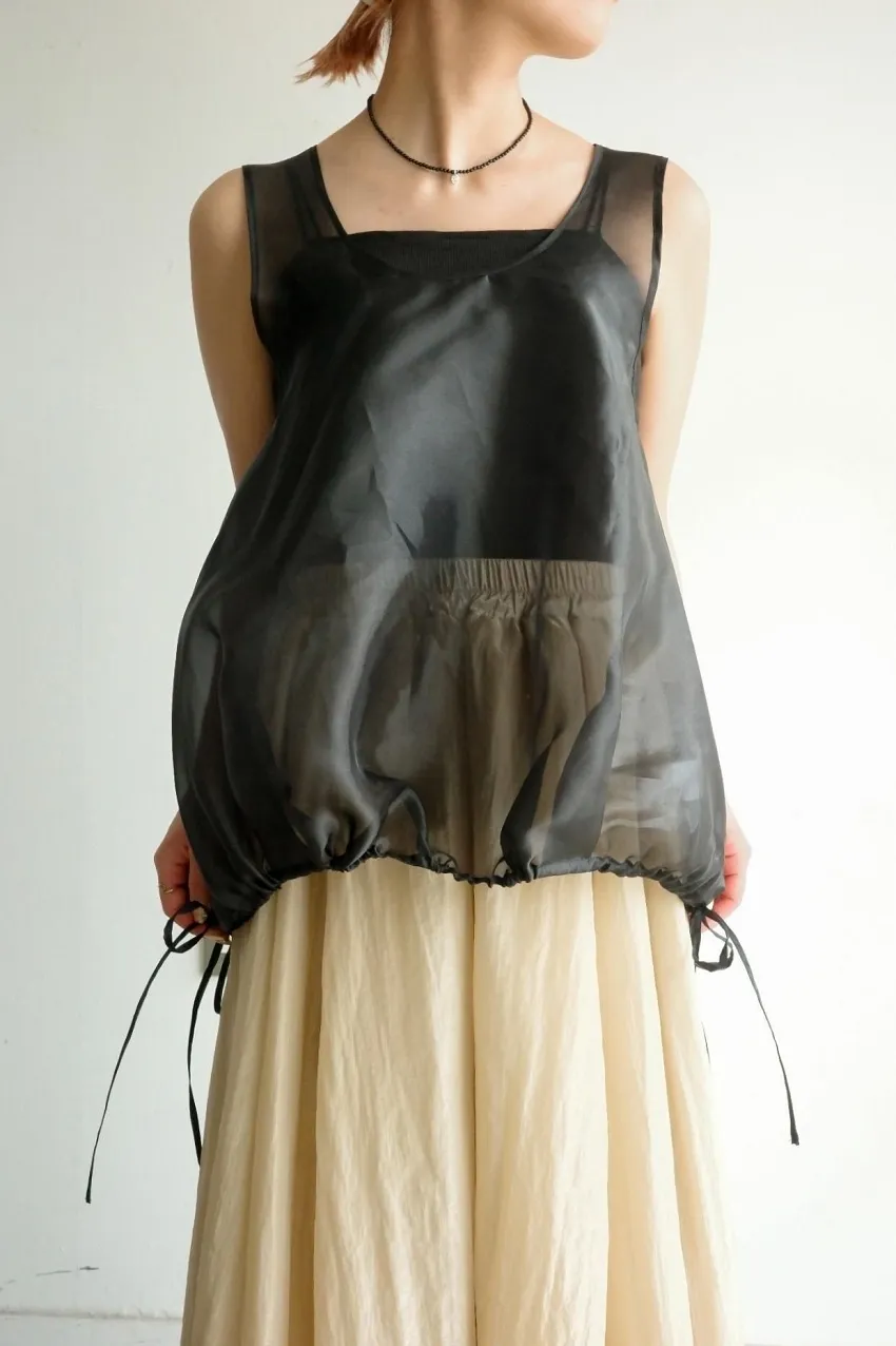 <秋季特惠>造特色透視立體烏干紗綁帶花苞造型背心