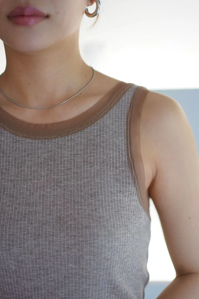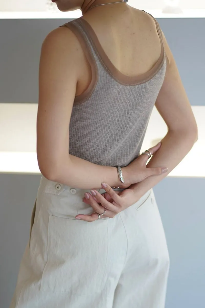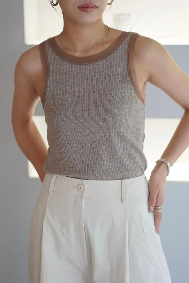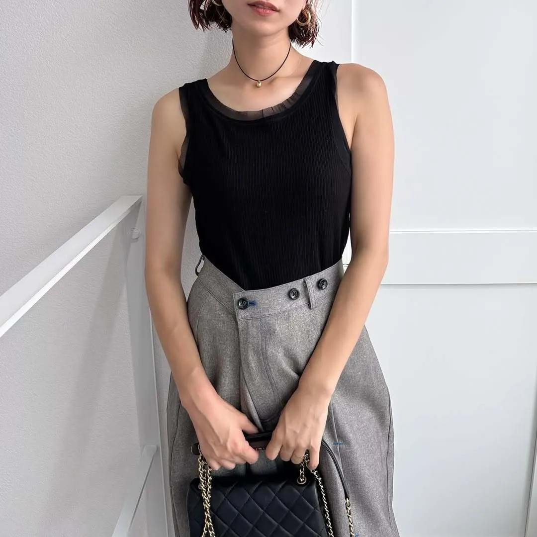 品牌精緻蕾絲紗滾邊彈性螺紋背心