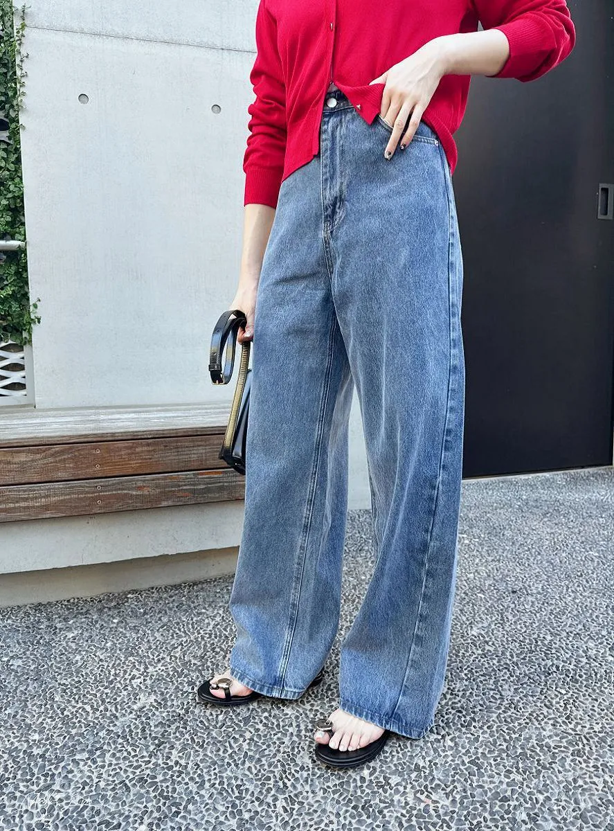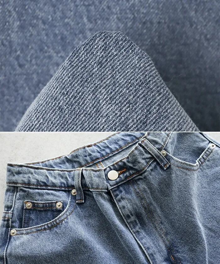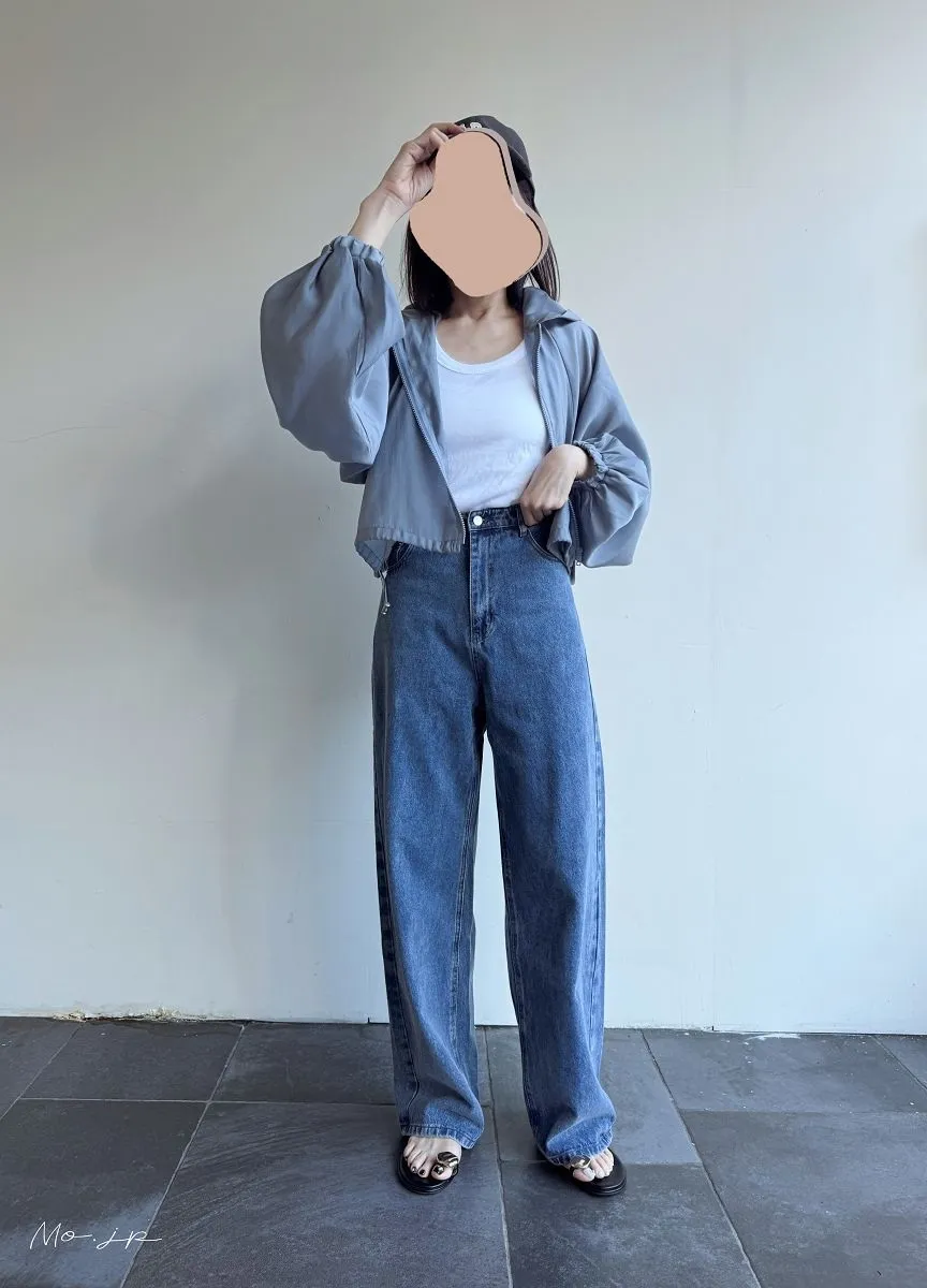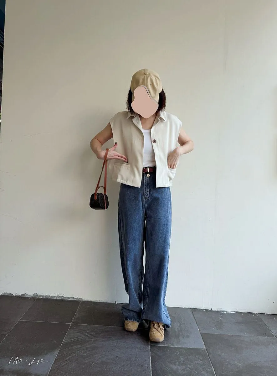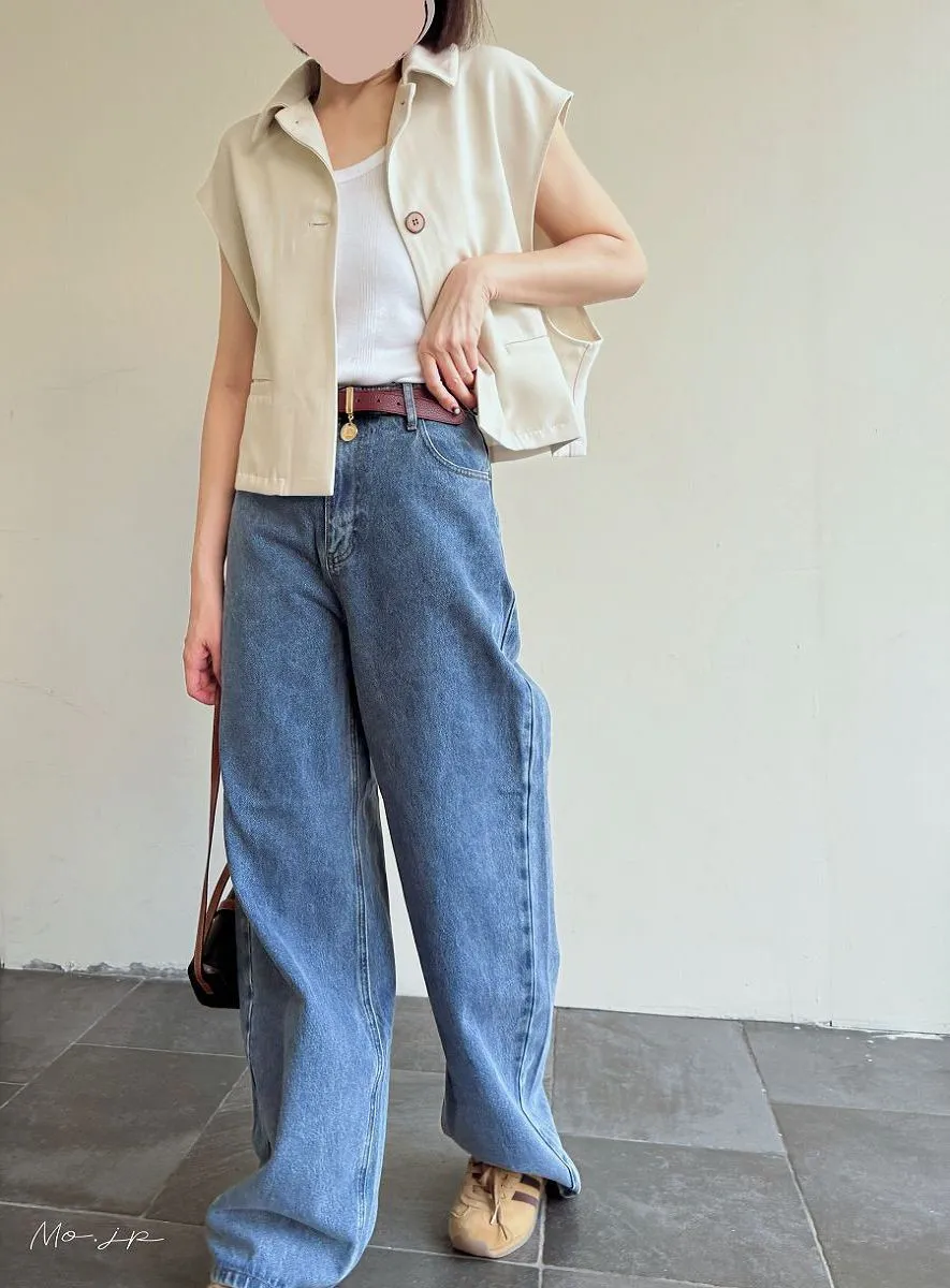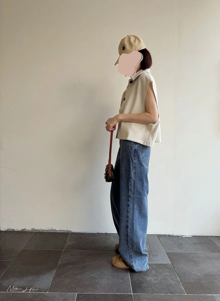 褲腳處寬鬆收腰,打造寬鬆不顯胖的牛仔褲!